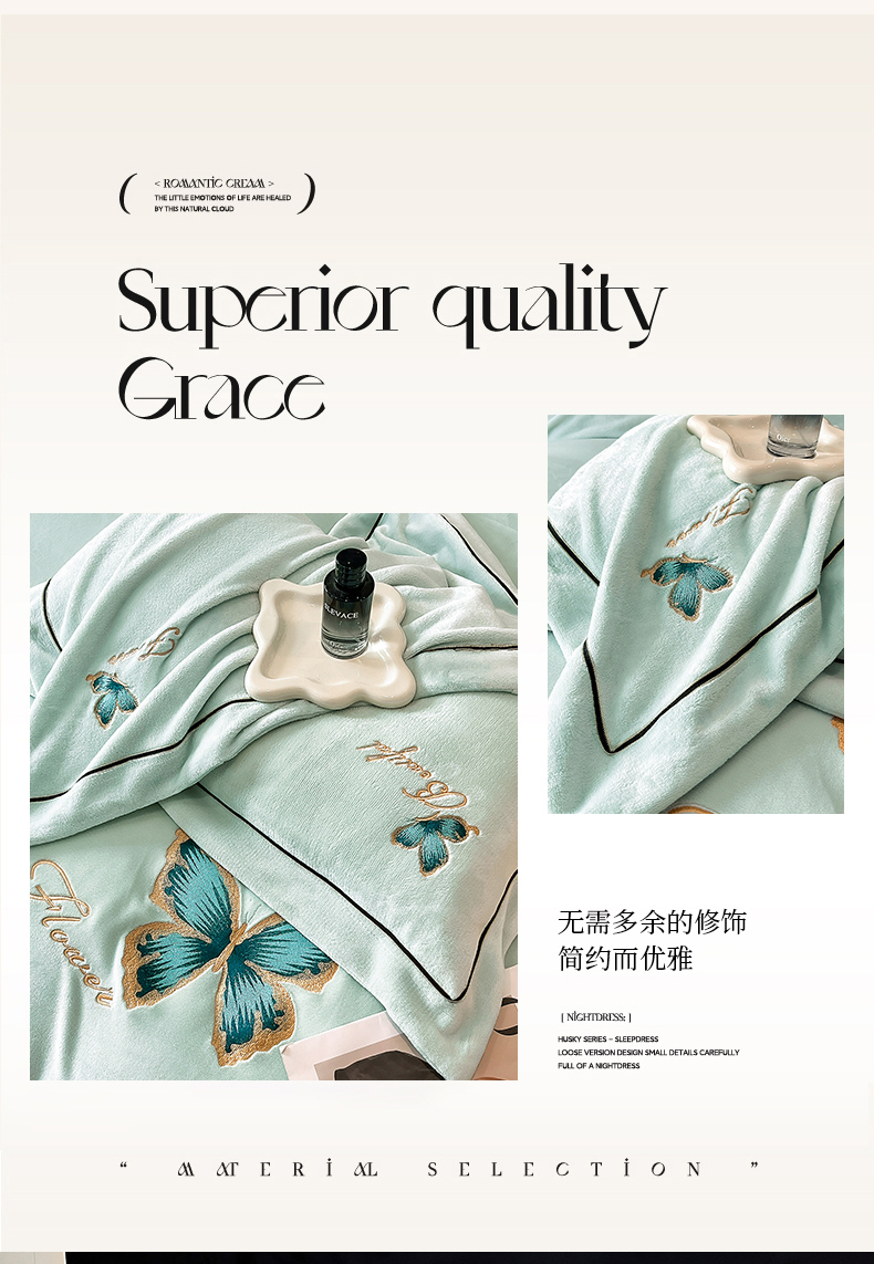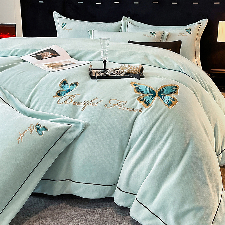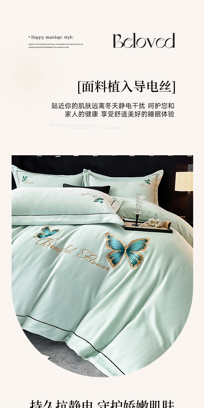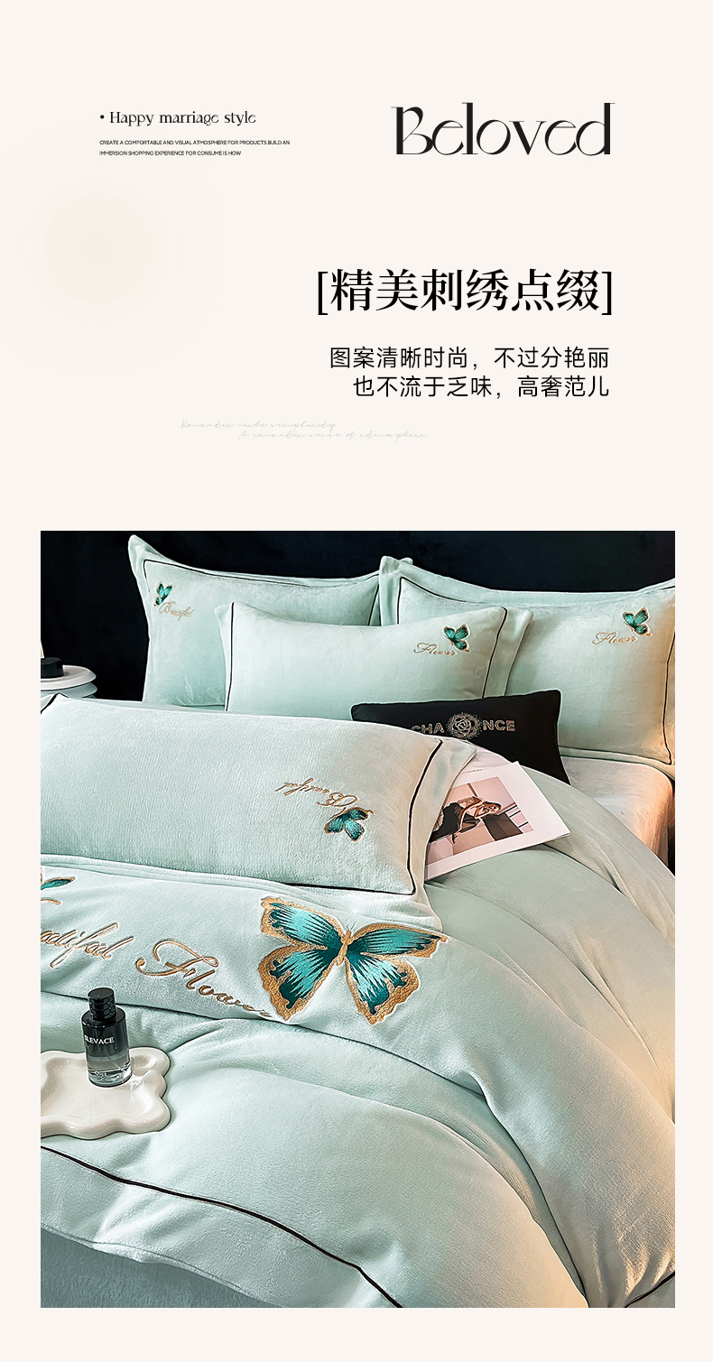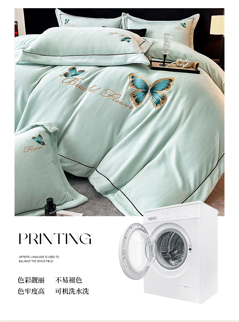 妮恒美家纺 2025新款牛奶绒刺绣四件套唯美蝴蝶结系列 唯美-元气绿