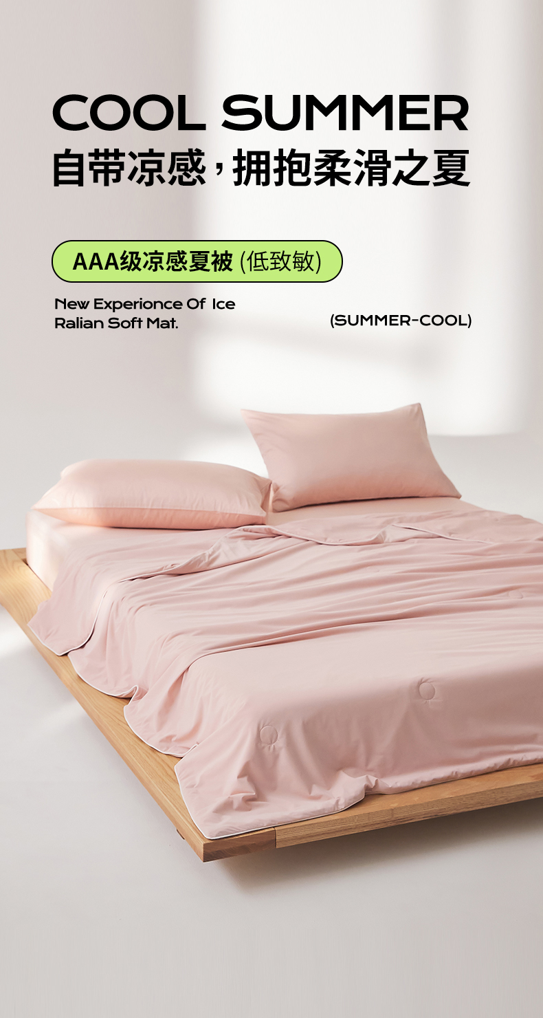 红淳家纺 2025新款冰激凌系列-90锦纶-A类凉感冰敷夏被 雾霾粉