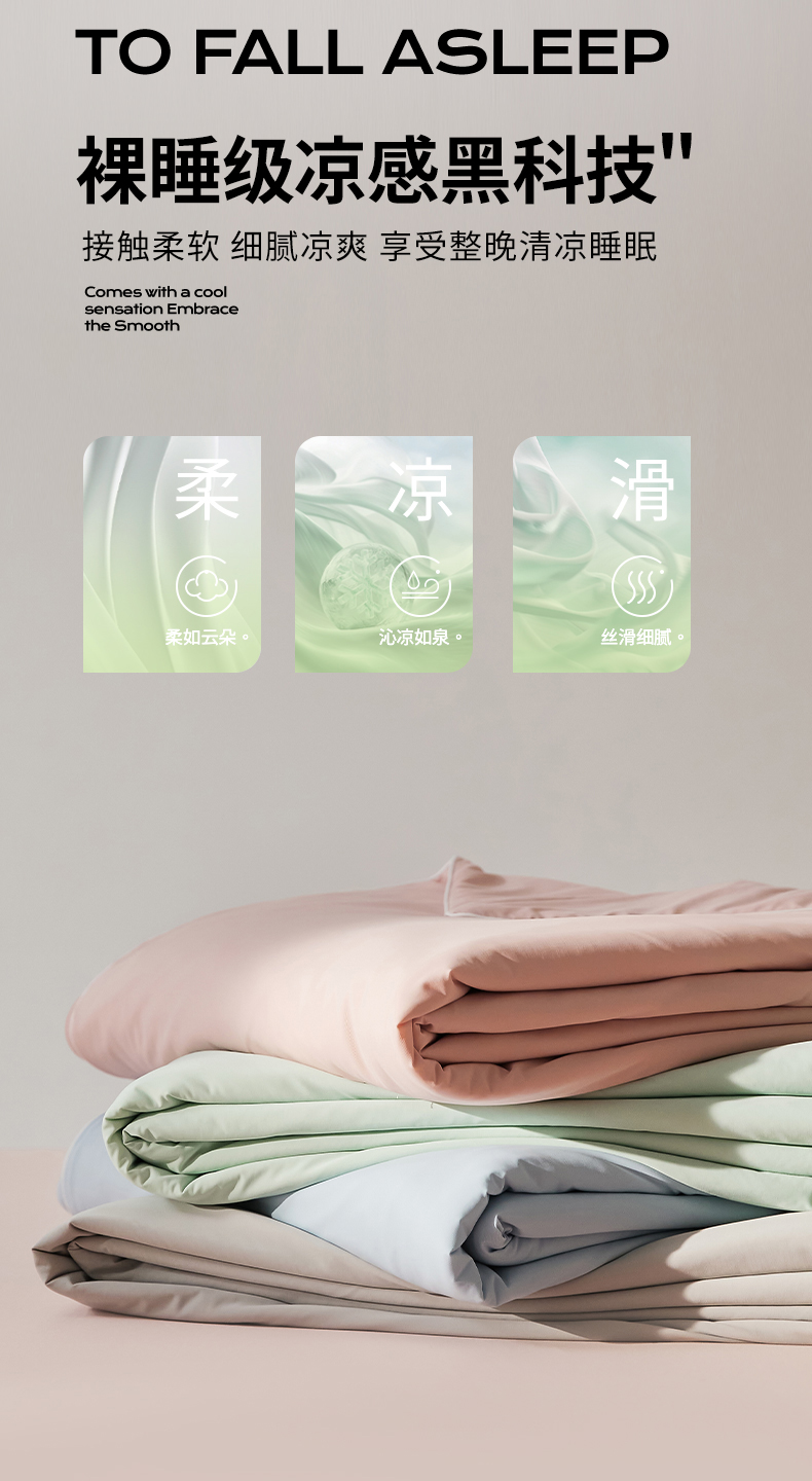 商品名称:红淳家纺 2025新款冰激凌系列-90锦纶-A类凉感冰敷夏被 雾霾粉
