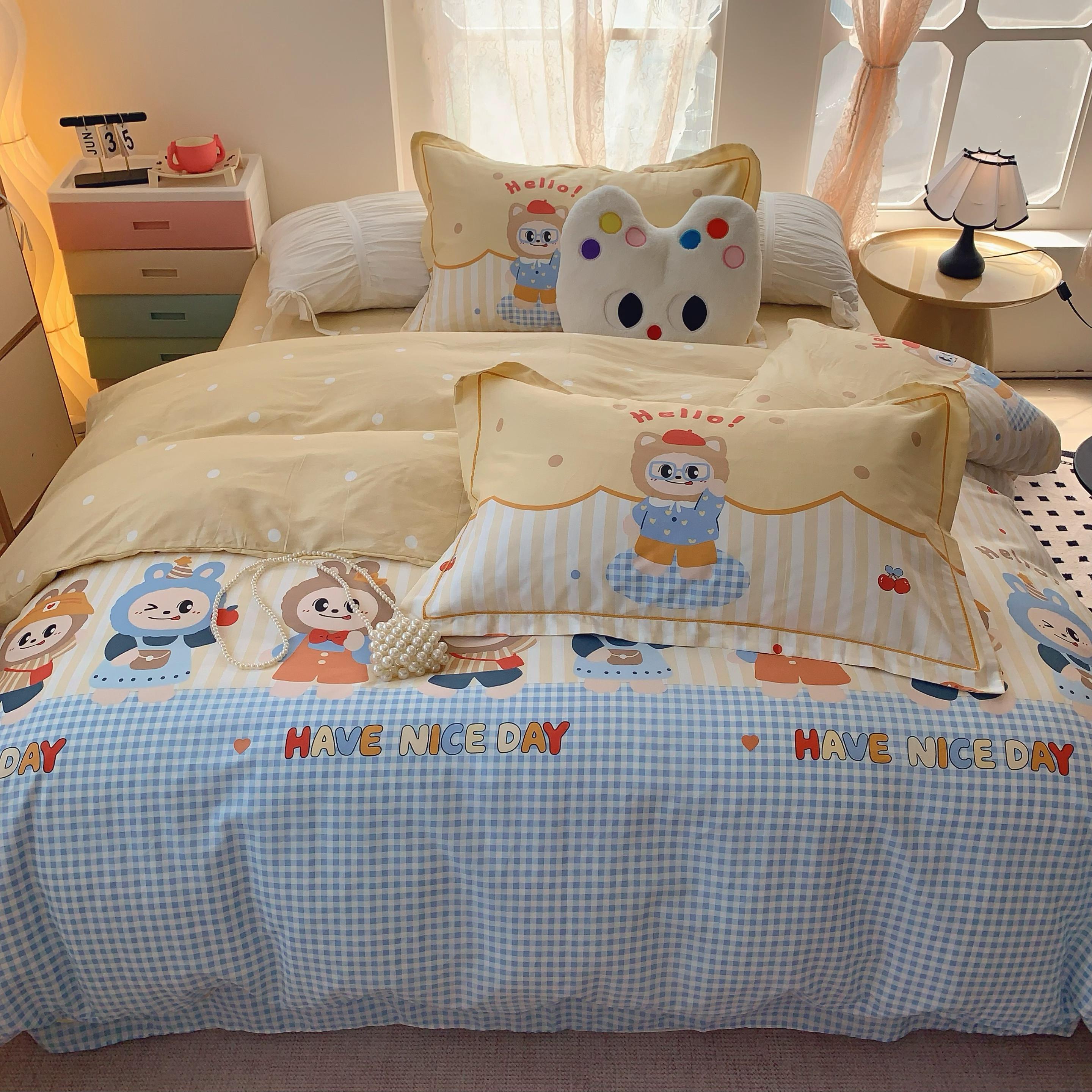 (总)莱豫家纺 2025新款小清新全棉纯棉四件套,爱心豹纹,白薇,春黛,芳华,锦绣咖,锦绣米,可爱狗狗咖,太空超人,甜橘,童年,仙本娜,小飞马,小小花园,星星人黄,星星人蓝,雅蔓