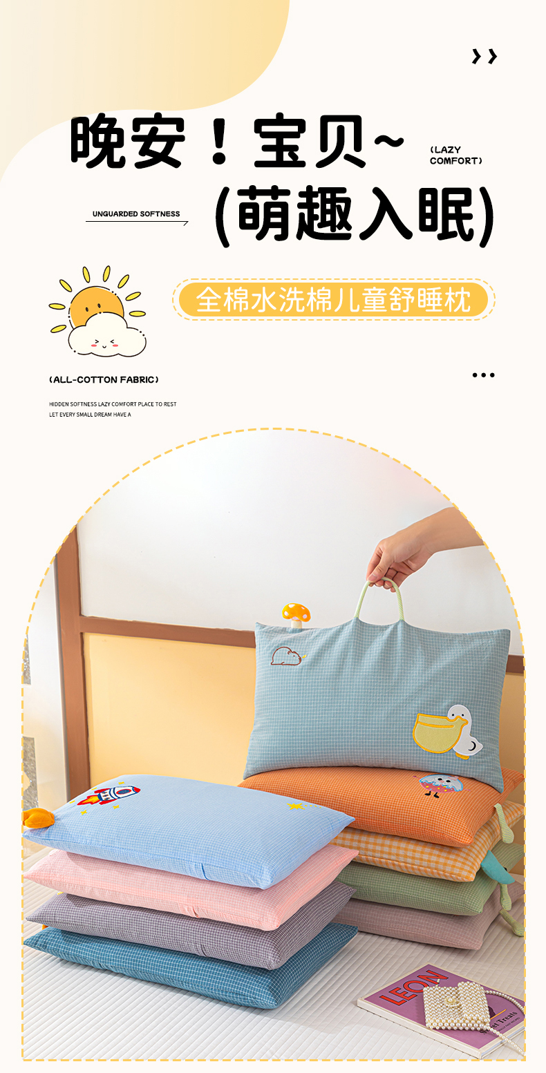 当前位置: 91家纺网 > 商品网购 > 枕头/枕芯/保健枕/颈椎枕 > 普通枕芯 > 织布人 2025新款枕芯全棉纯棉手提袋卡通婴幼儿童枕头学生枕开学季宿舍枕头枕芯 全棉卡通手提枕-你好呀 30x50cm/只