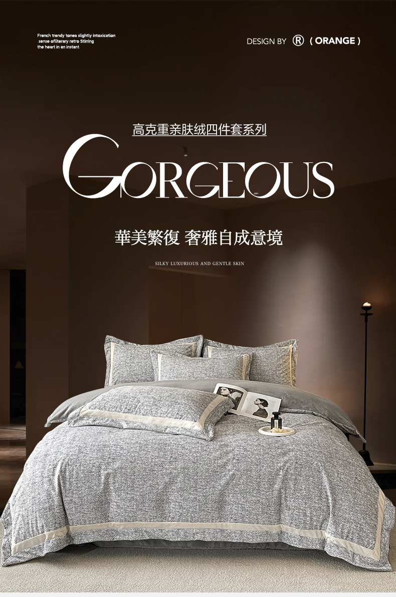 (总)羽梦家纺 2025新款260克加厚全消光皮草款阳光绒轻奢四件套,托斯卡纳-暗灰,托斯卡纳-暗粉,托斯卡纳-米黄