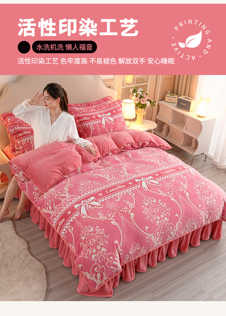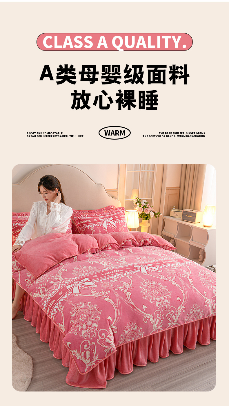 商品名称:羽梦2025新款8.5斤牛奶法莱绒金貂法兰绒四件套直播爆款爱丽丝