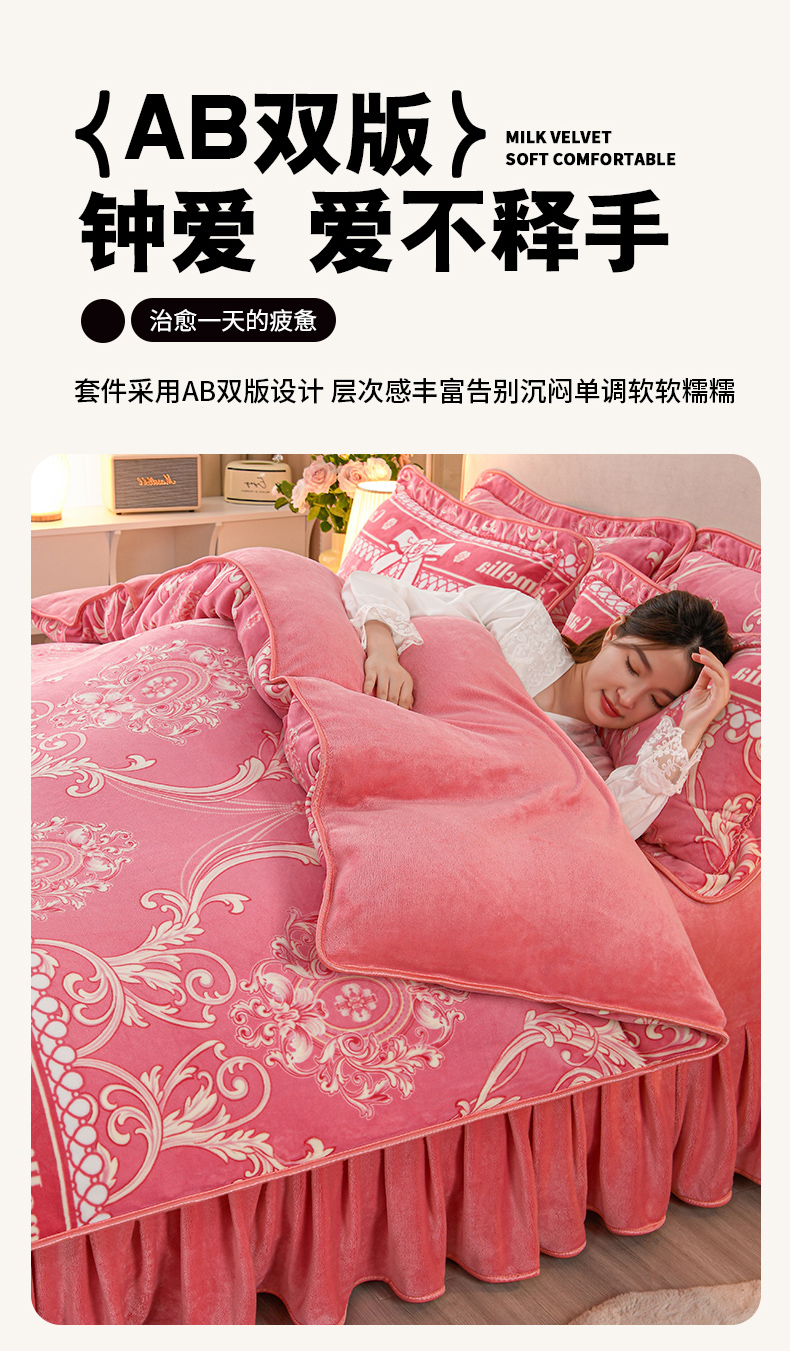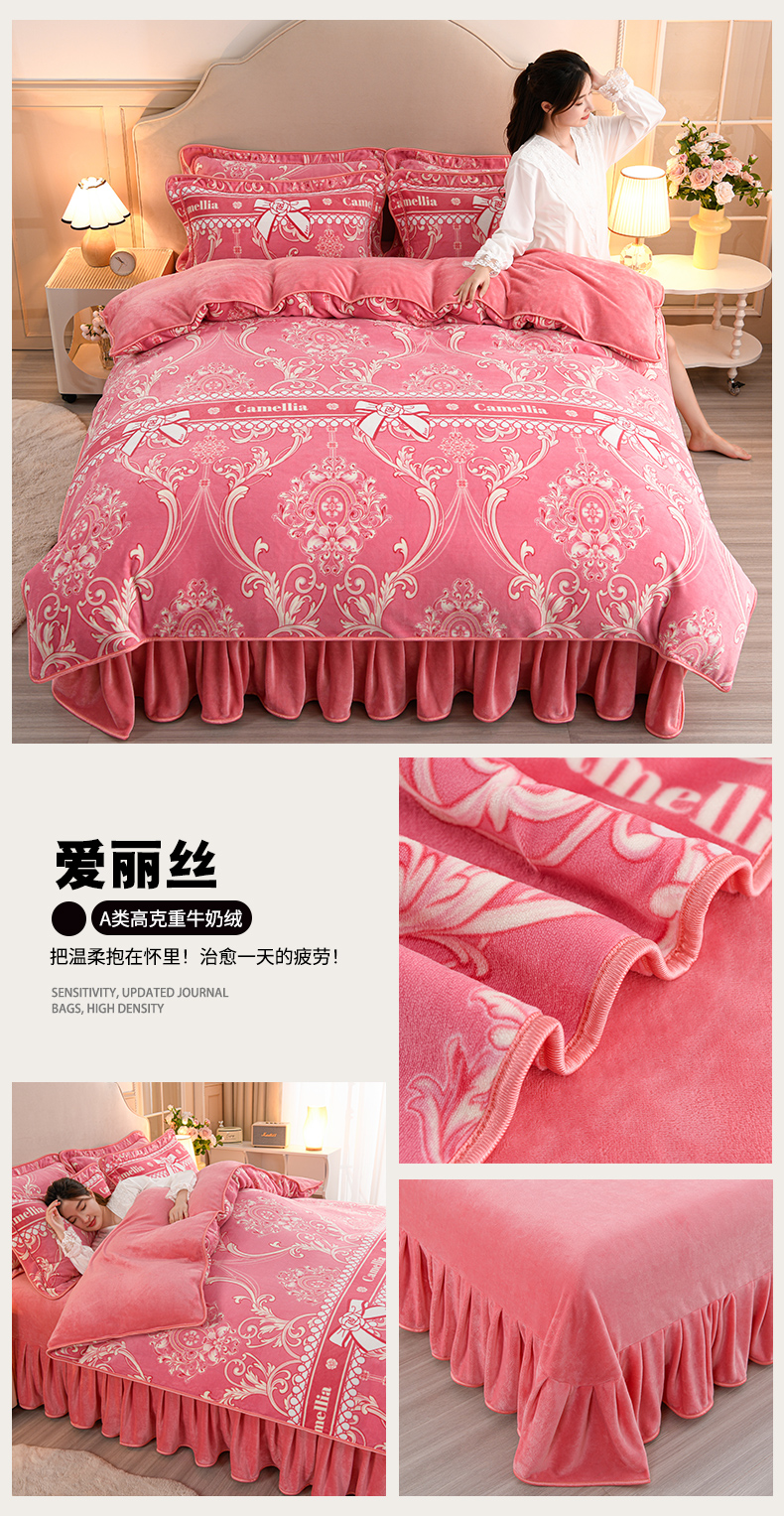 羽梦2025新款8.5斤牛奶法莱绒金貂法兰绒四件套直播爆款爱丽丝