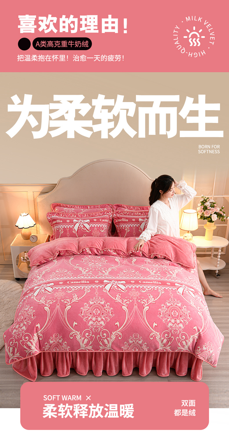 羽梦2025新款8.5斤牛奶法莱绒金貂法兰绒四件套直播爆款三生有杏,三生有杏