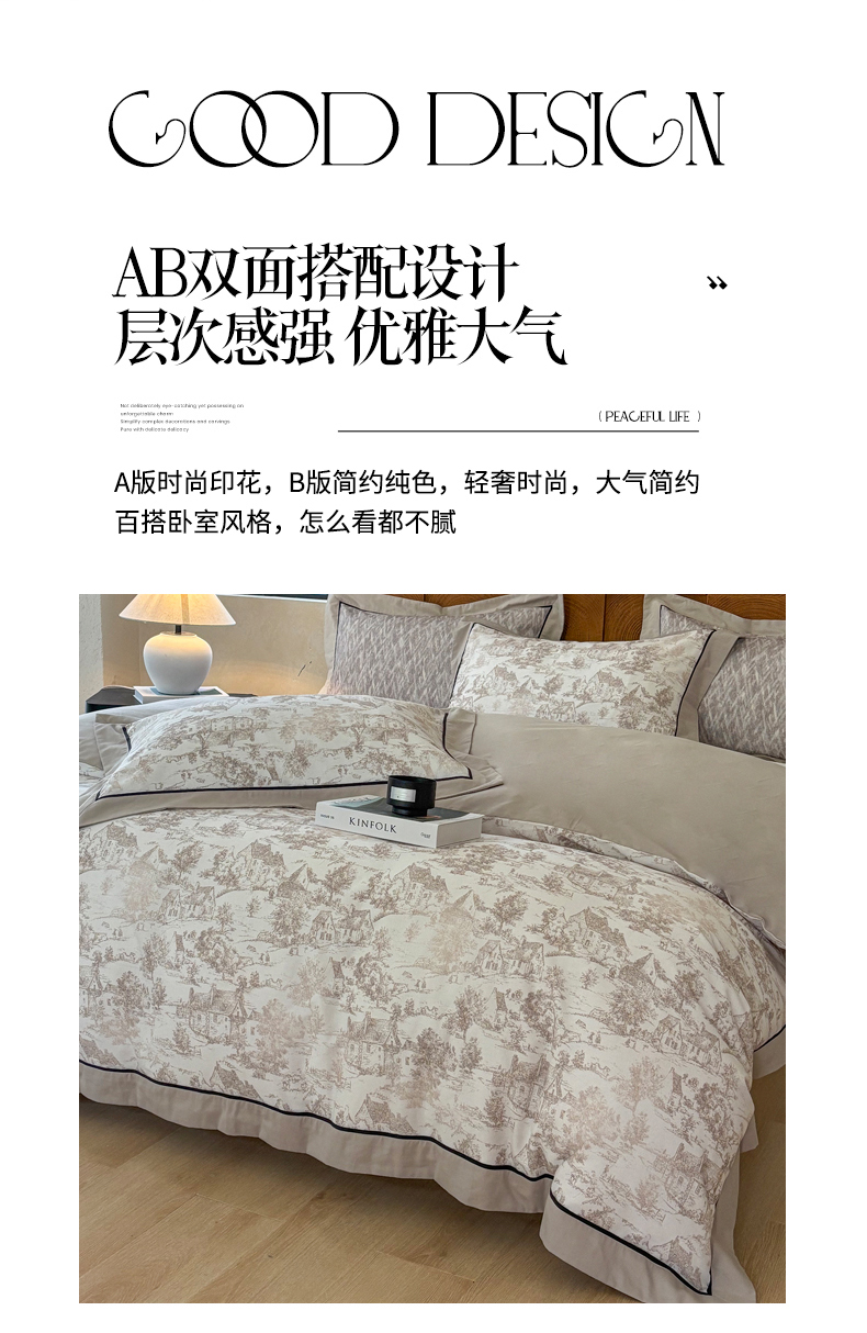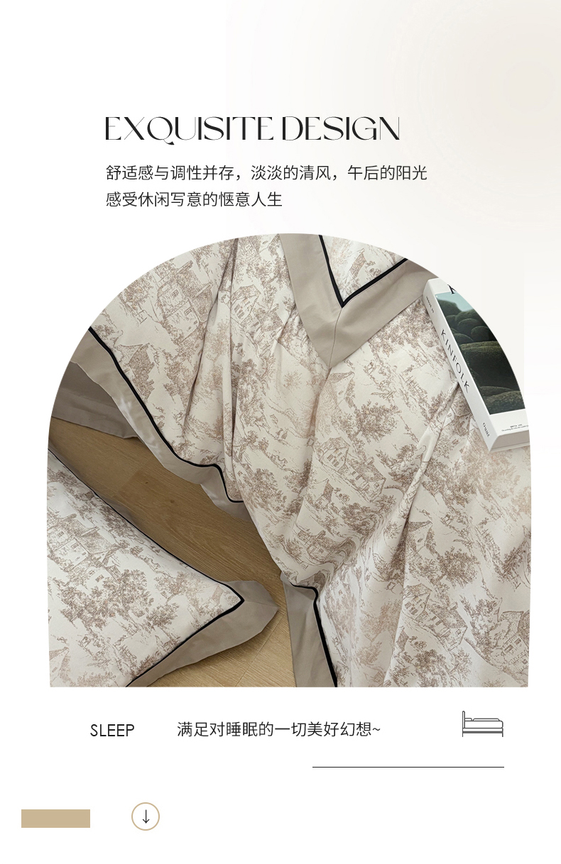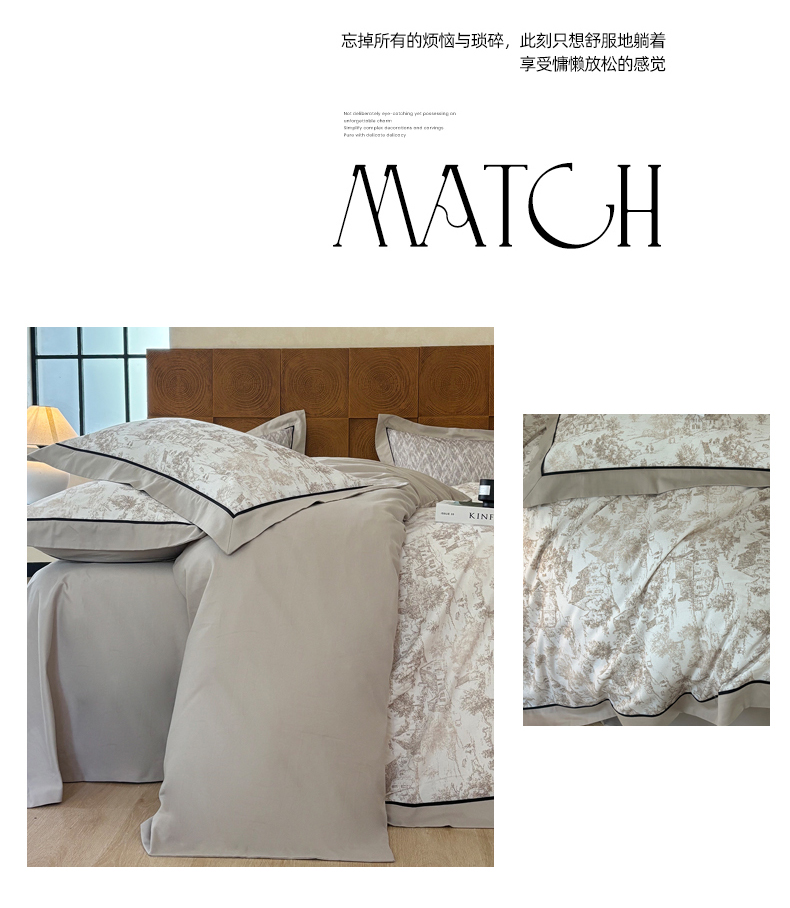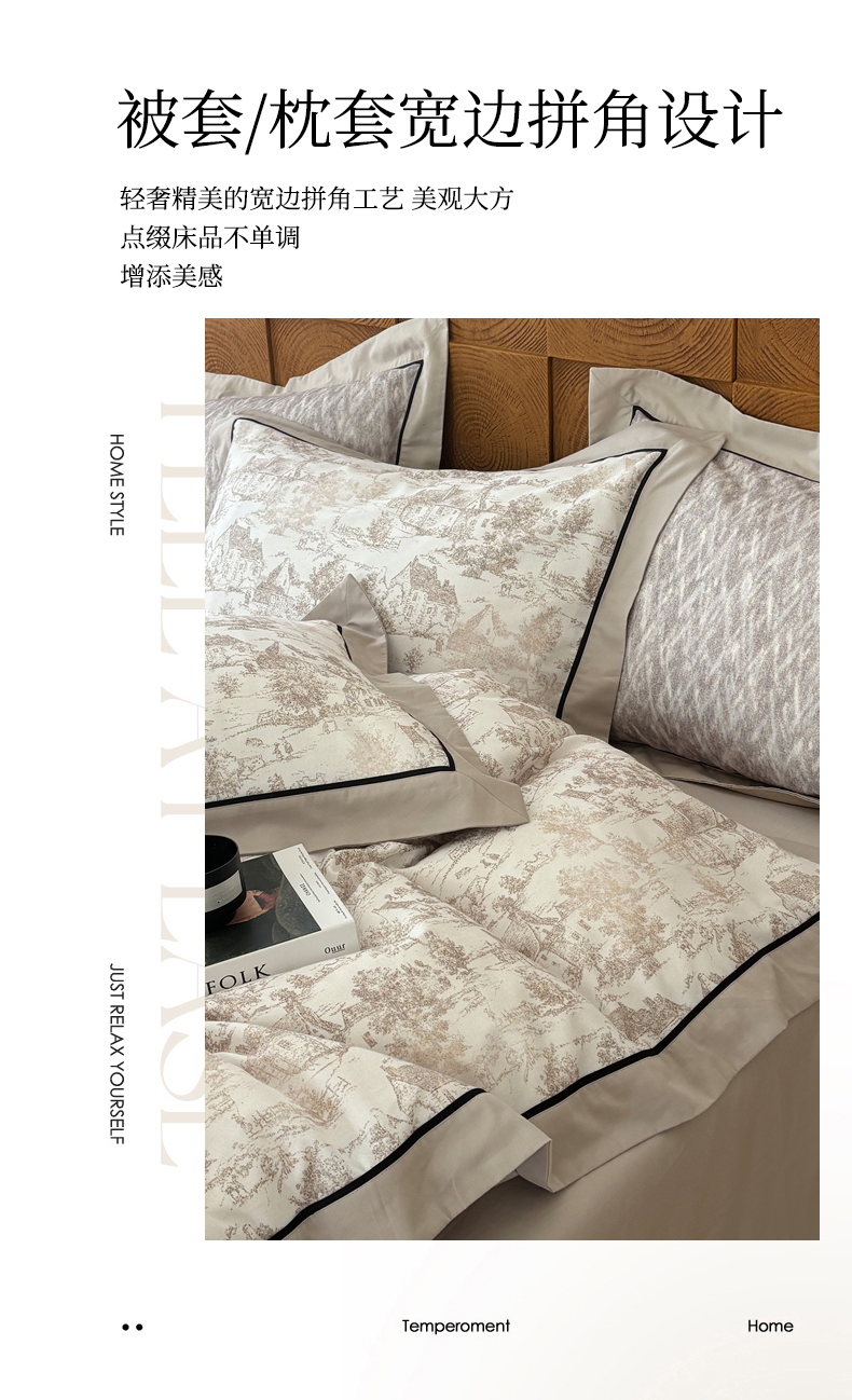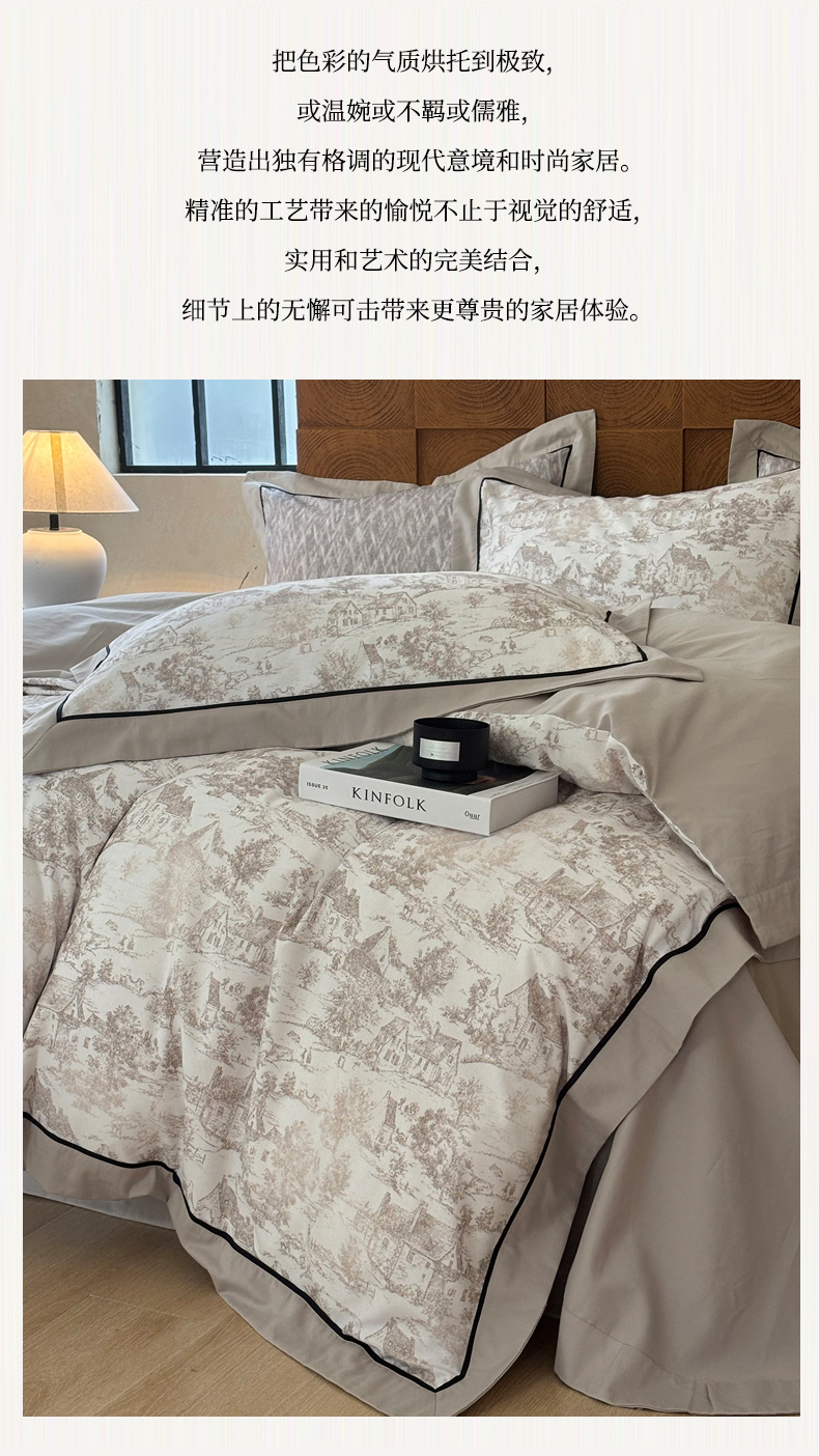商品名称:嘉汀兰2025新款全棉臻品磨毛轻奢时尚秋冬加厚四件套-拼角款 浮生若梦