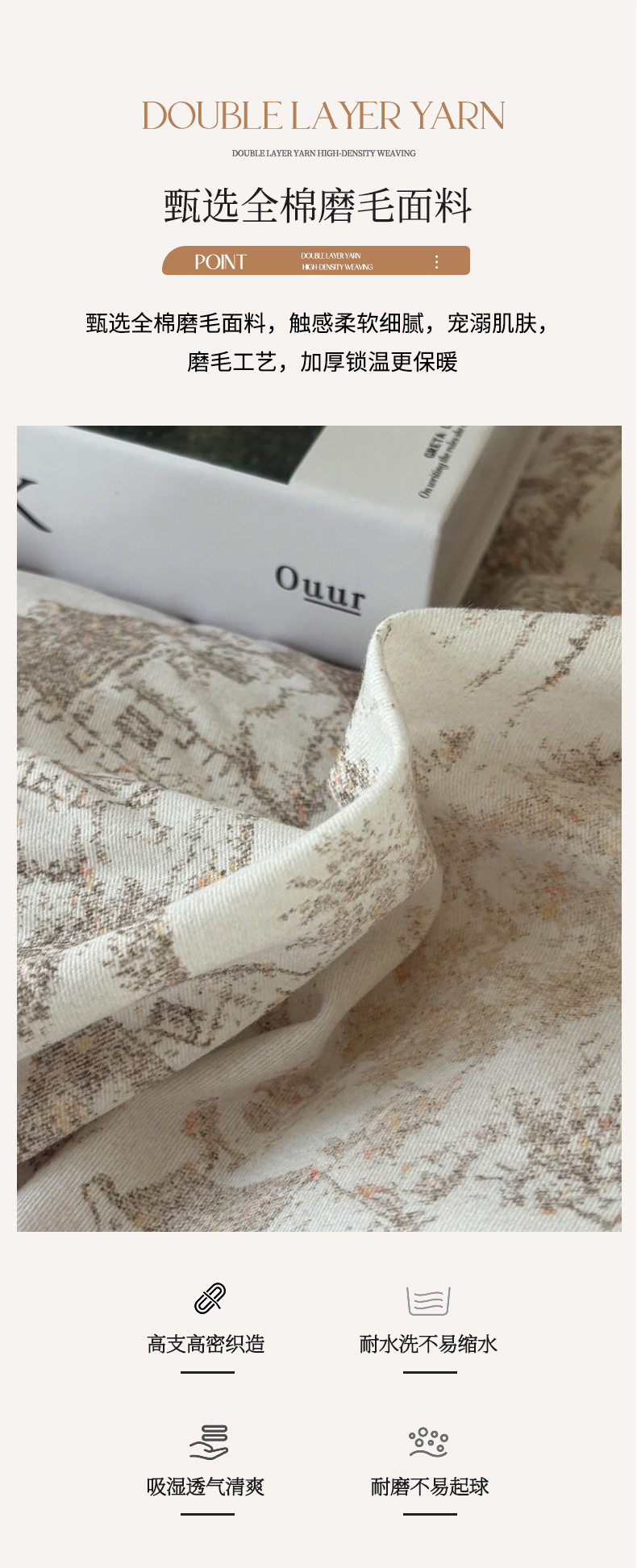 (总)嘉汀兰家居 2025新款长绒棉磨毛四件套—蔓莎,豆沙,灰色,桔色,绿色,香槟,紫色