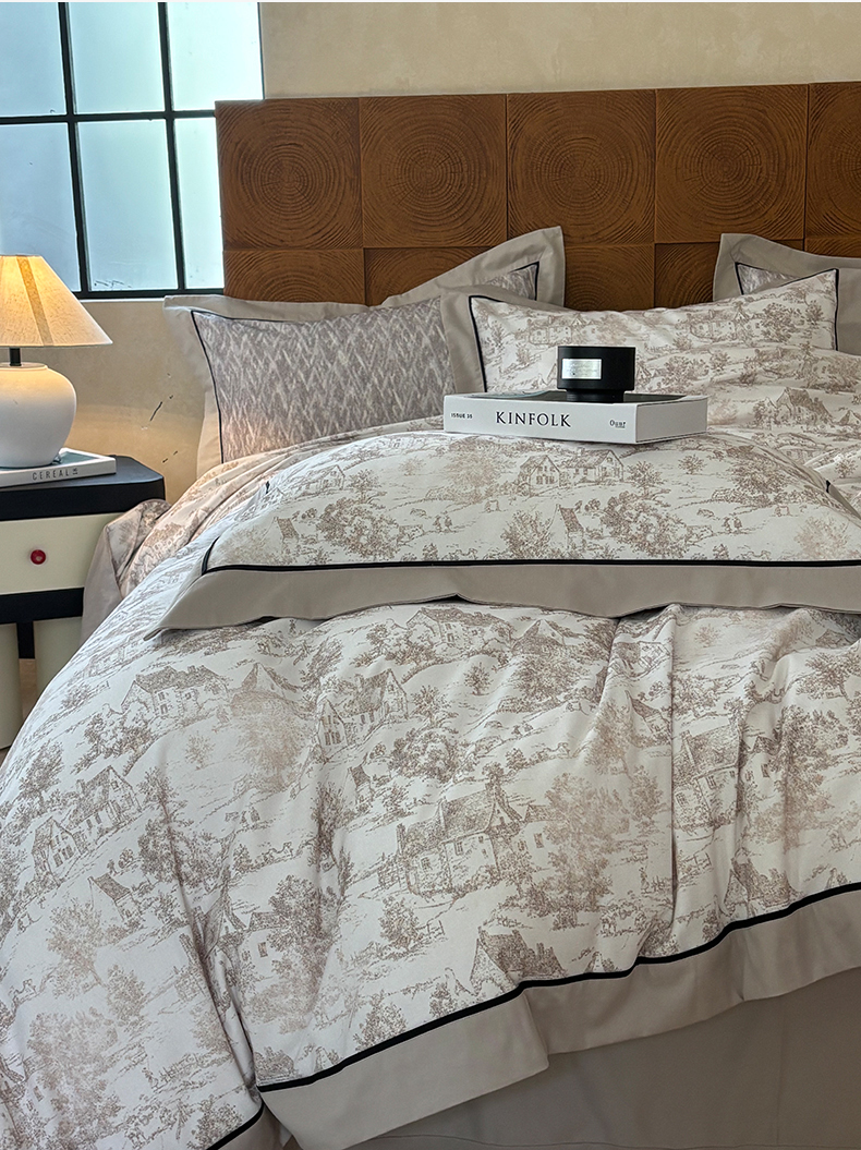 嘉汀兰2025新款全棉臻品磨毛轻奢时尚秋冬加厚四件套-拼角款 浮生若梦