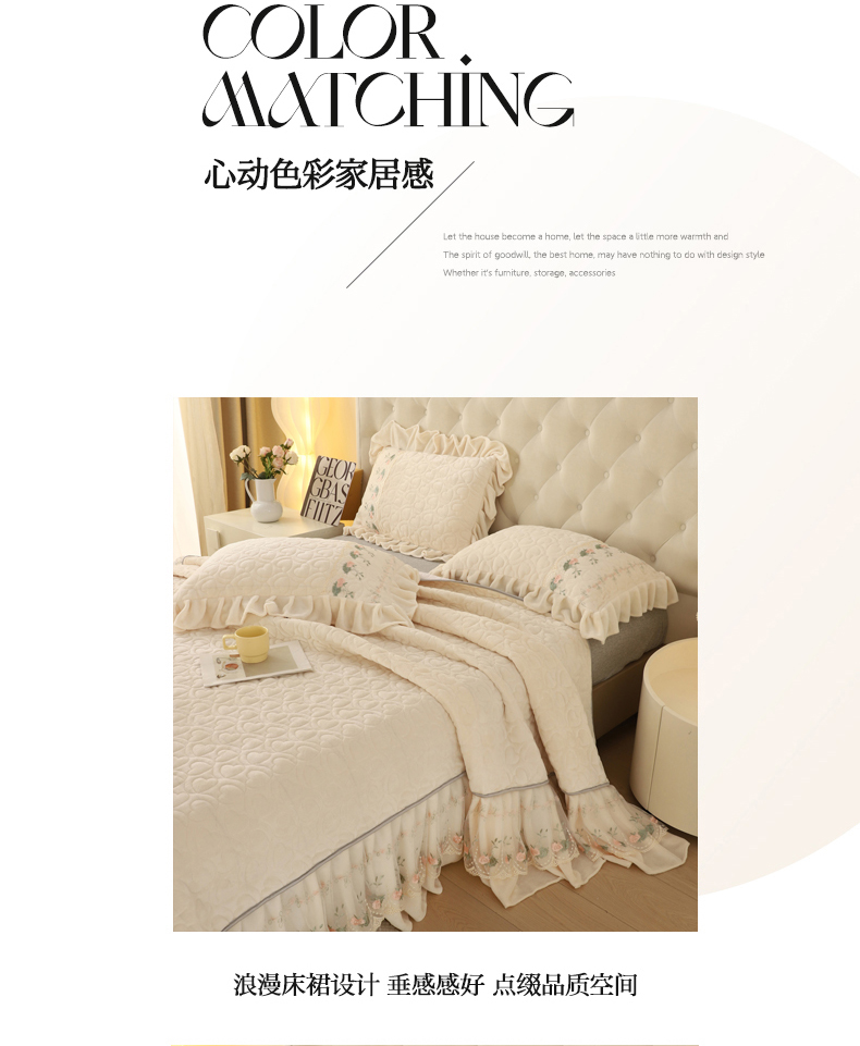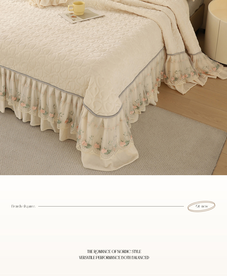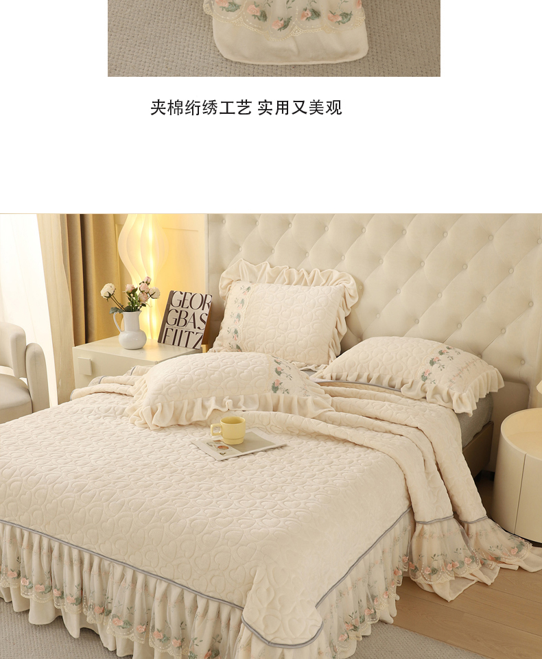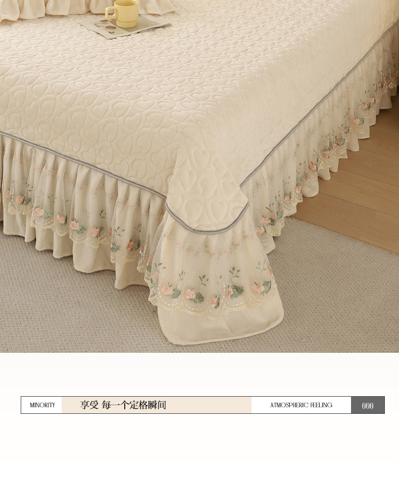 (总)能好家纺 2025新款蕾丝工艺水晶绒夹棉床裙,宝石兰,藏青,豆沙,粉玉,灰,酒红,墨绿,月光蓝