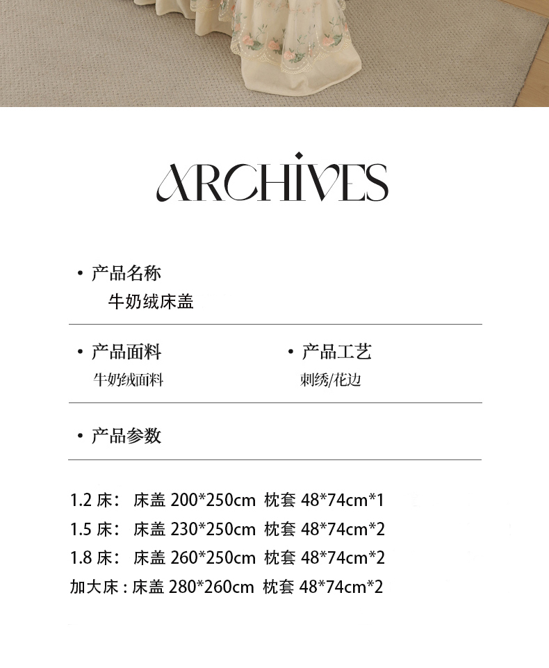• 91家纺网 家纺一手货源 找家纺 能好家纺 2025新款牛奶绒刺绣床盖单床盖床盖单件 米白 91家纺网 家纺一手货源 找家纺 能好家纺 2025新款牛奶绒刺绣床盖单床盖床盖单件 米白