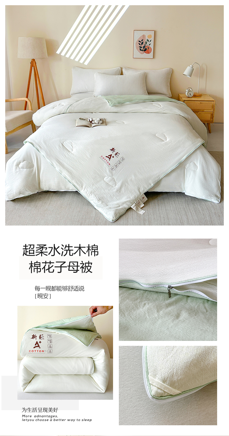 • 91家纺网 家纺一手货源 找家纺 (总)鸣创 2025新款木棉良品大豆被子母被冬被被子被芯,白拼粉,白拼绿,白色,粉色,灰色,绿色