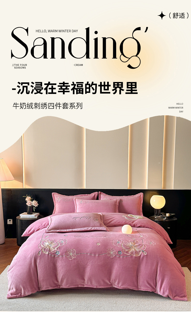(总)诺梵家纺 2025新款拼接雕花牛奶绒四件套,布朗棕,温妮莎-粉,温妮莎-黄,纤枝逸-红,纤枝逸-黄,邂逅-粉,邂逅-紫