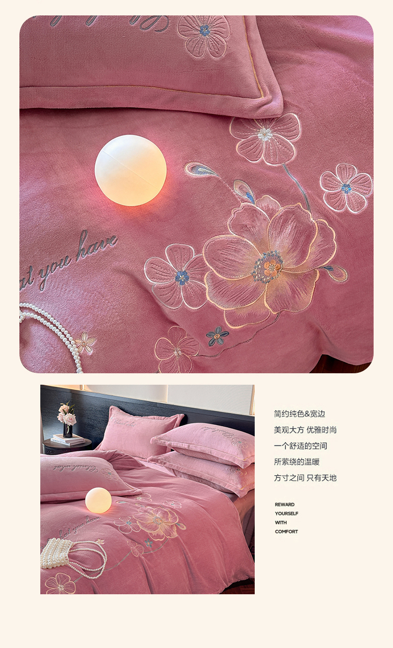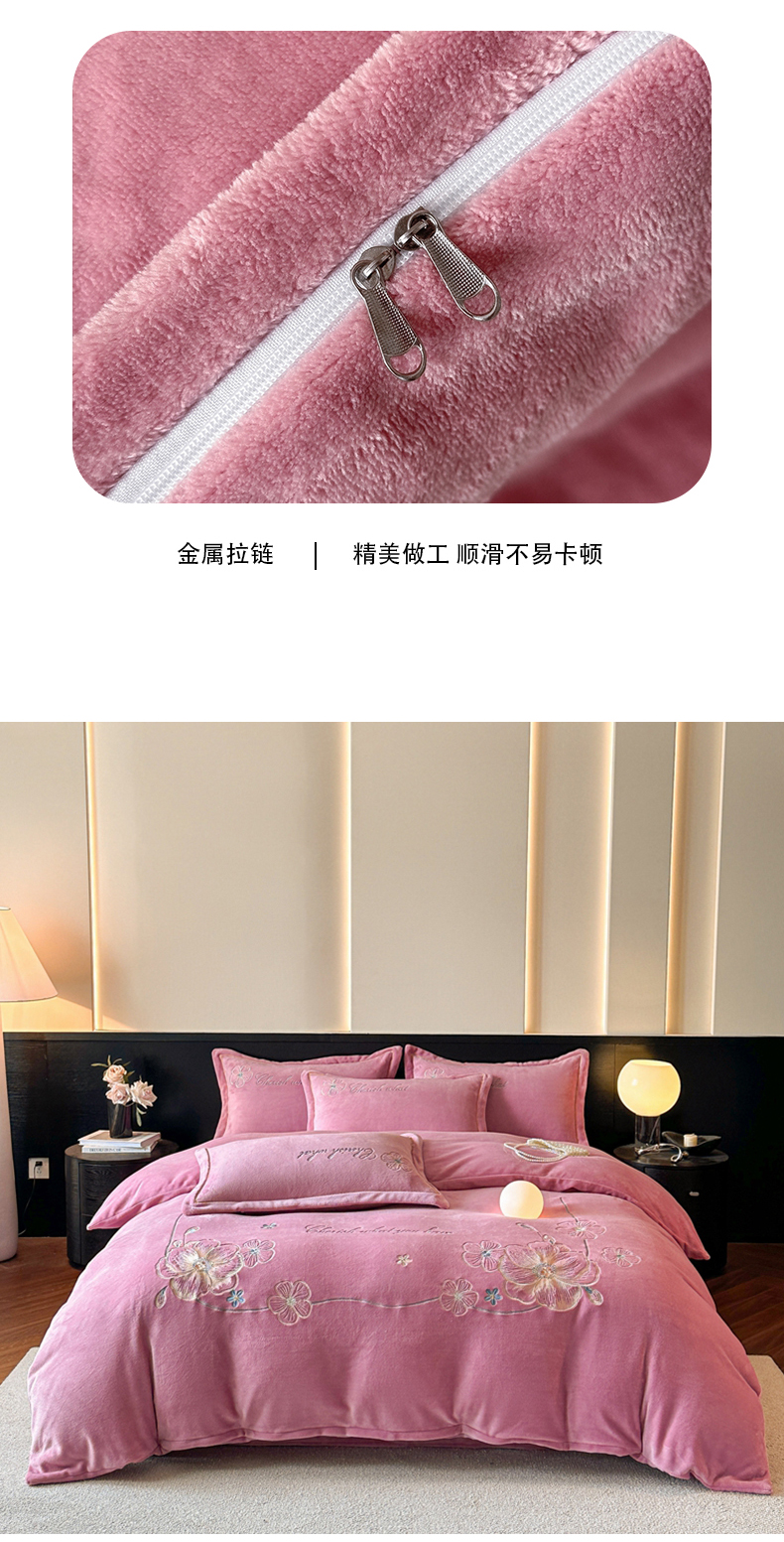 (总)诺梵家纺 2025新款牛奶绒绣花绒四件套,芳华-宝蓝,芳华-豆沙,芳华-湖兰,芳华-米白,芳华-抹茶绿,伊莉莎-米白,伊莉莎-抹茶绿