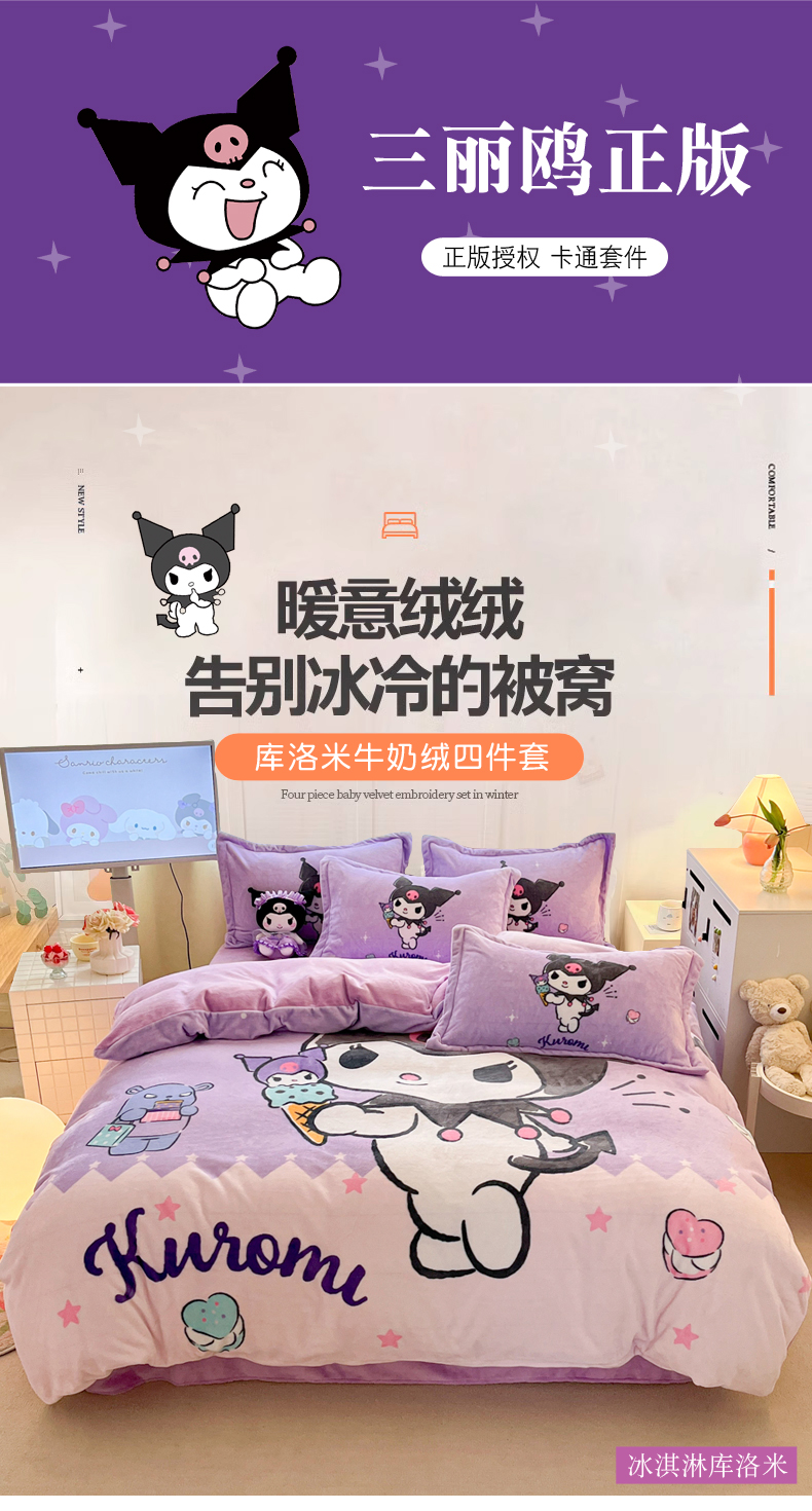 当前位置: 91家纺网 > 商品网购 > 床品套件 > 四件套 > 牛奶绒四件套 > 金爱家 2025新款正版三丽鸥授权大版卡通平网数码印花加厚高克重牛奶绒系列四件套-第二批 冰淇淋库洛米