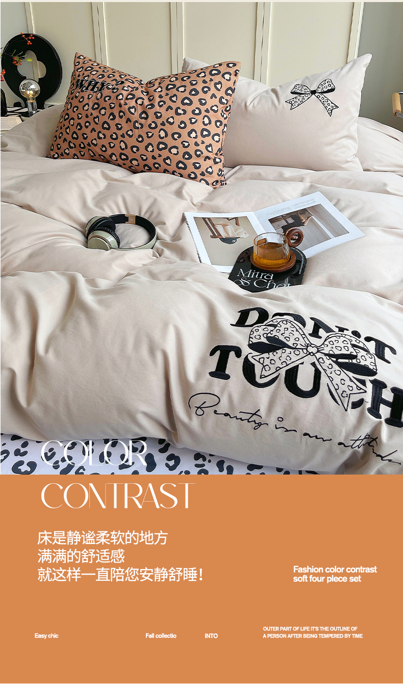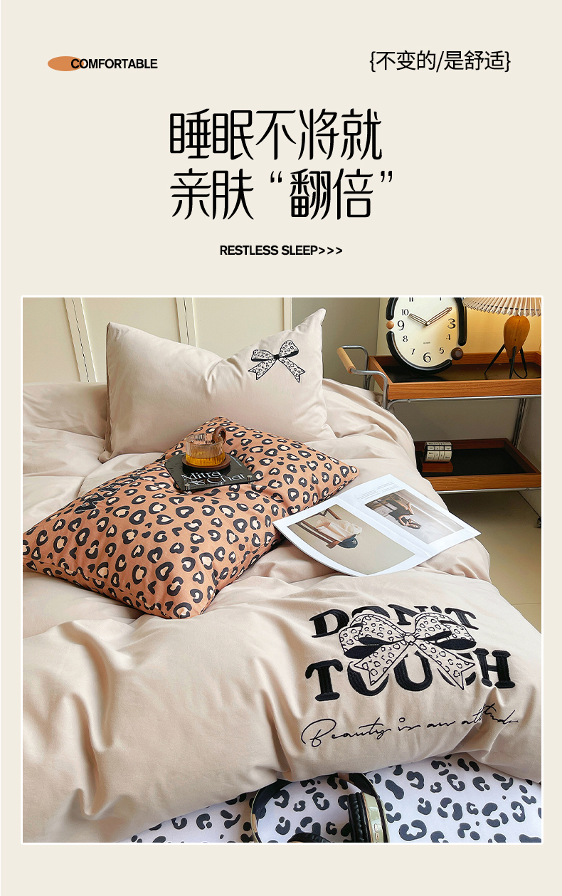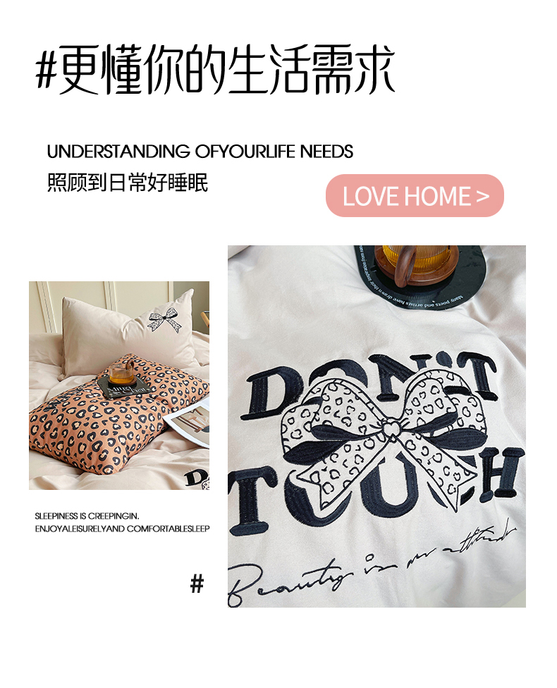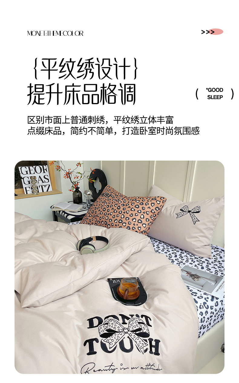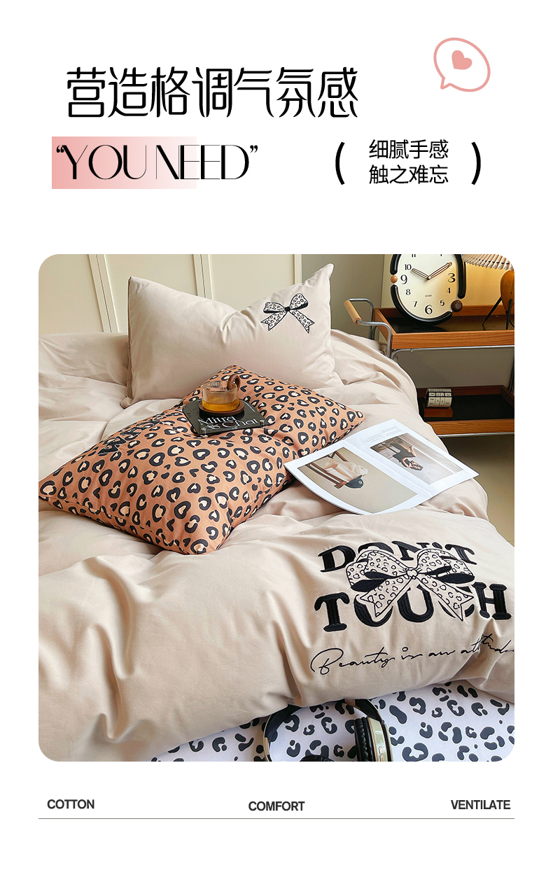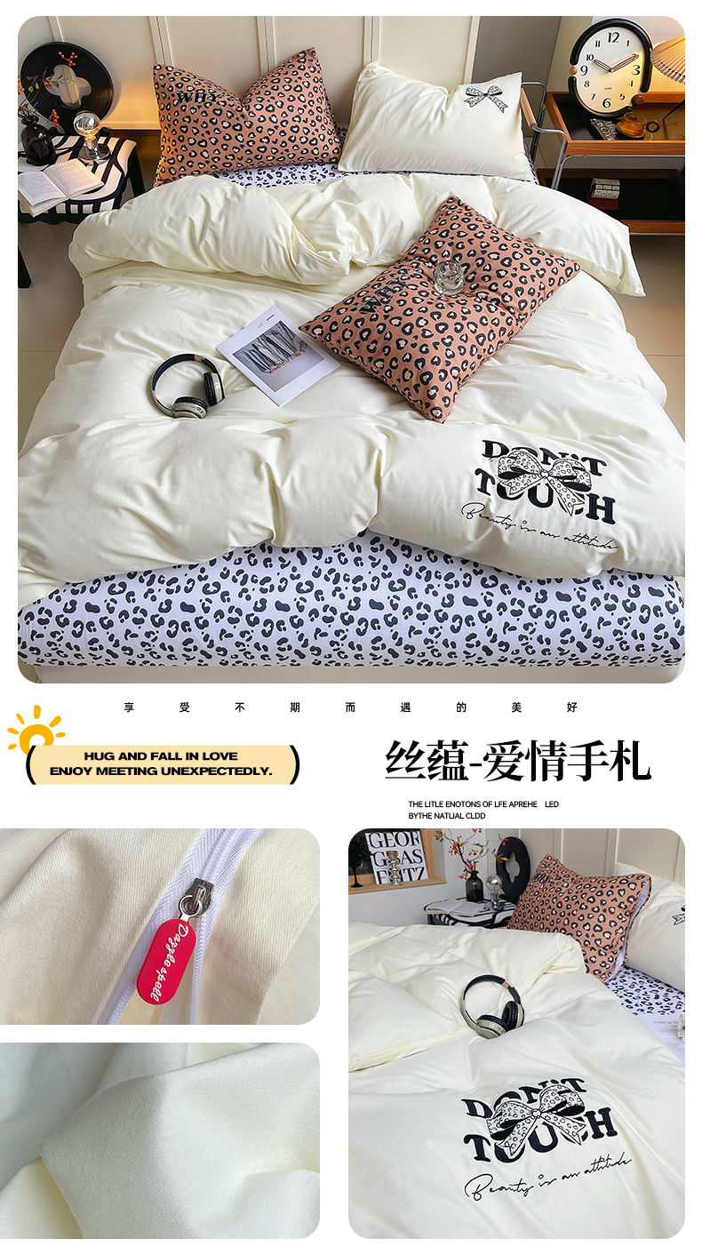 当前位置: 91家纺网 > 商品网购 > 床品套件 > 四件套 > 全棉普通四件套 > 炫拼家纺 2026新款丝蕴系列全棉纯棉磨毛绣花蝴蝶结豹纹纯棉四件套-丝蕴 丝蕴-半糖主义