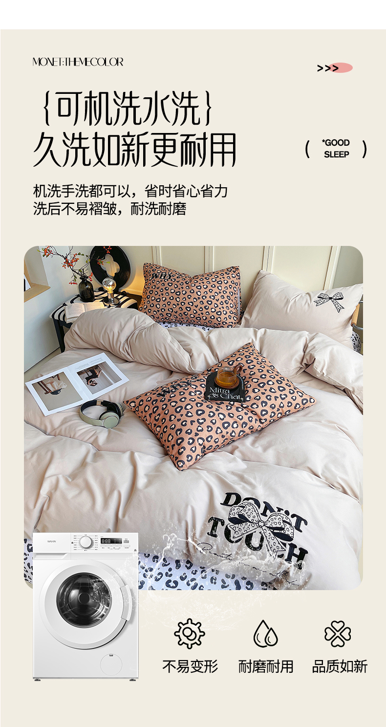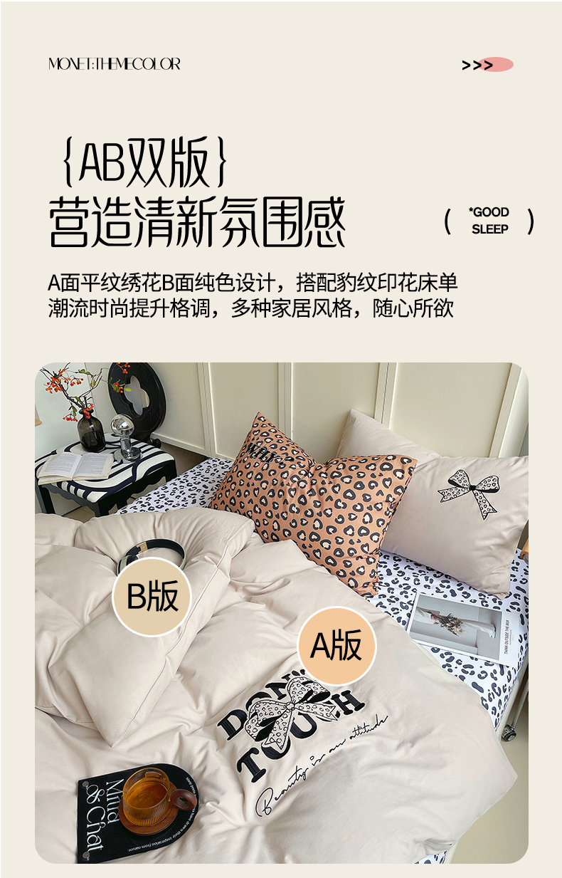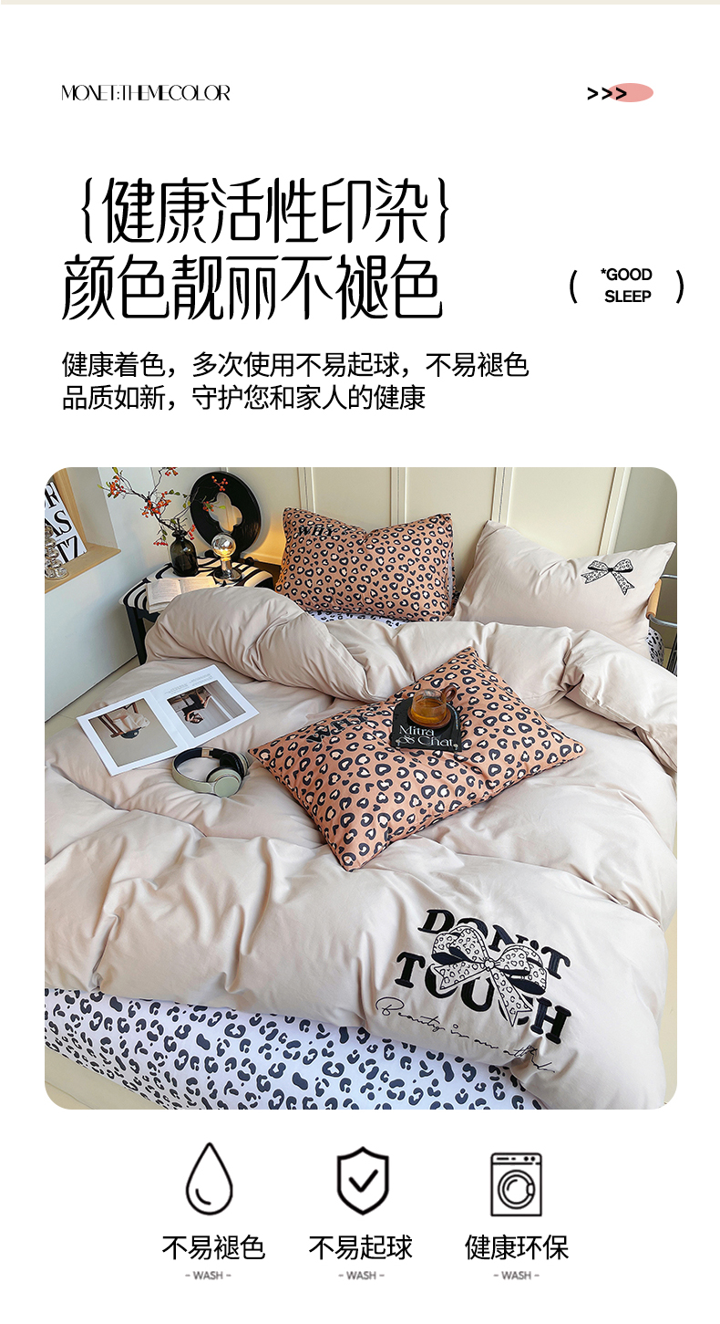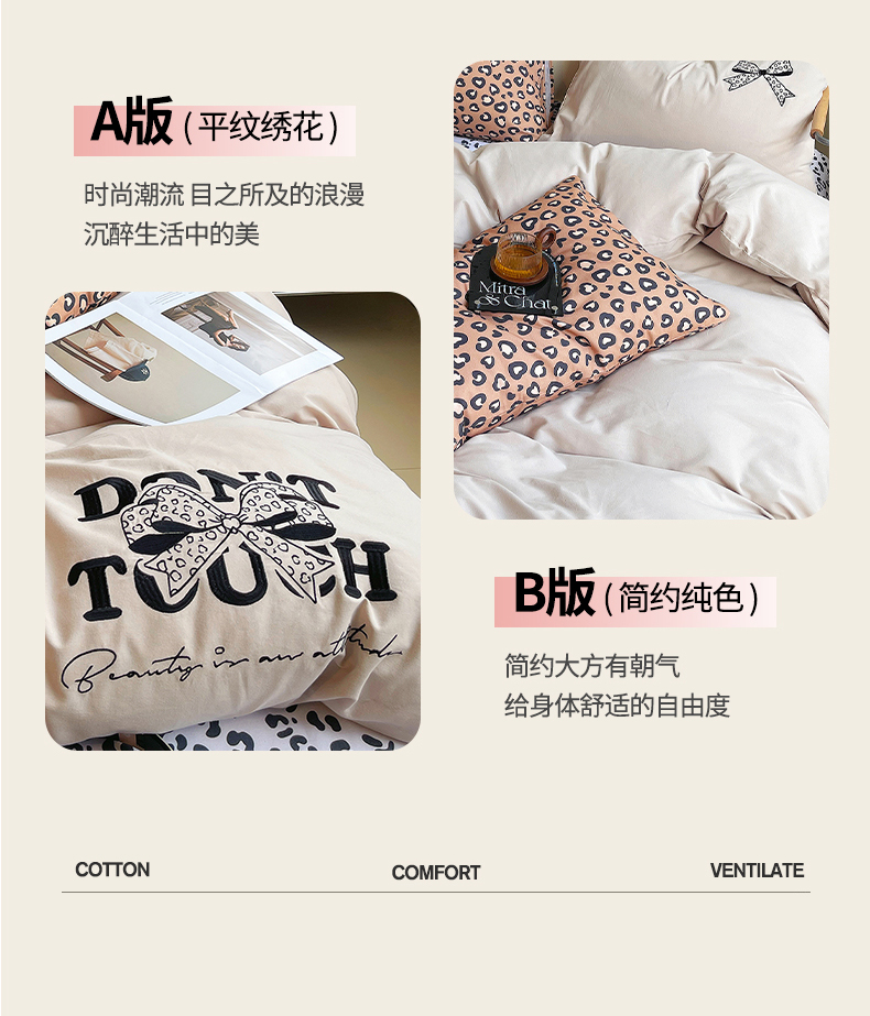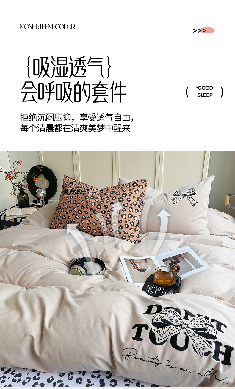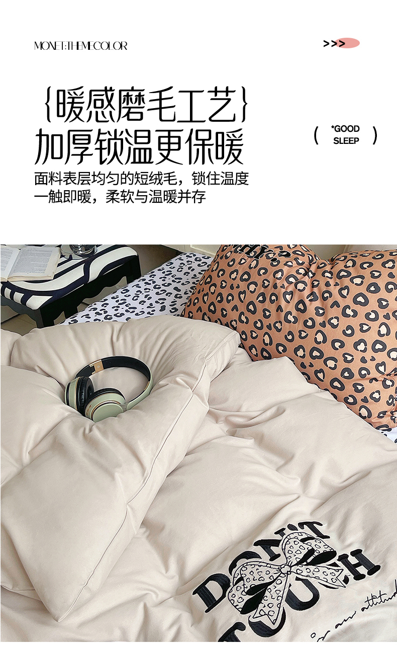 当前位置: 91家纺网 > 商品网购 > 床品套件 > 四件套 > 全棉普通四件套 > 炫拼家纺 2026新款丝蕴系列全棉纯棉磨毛绣花蝴蝶结豹纹纯棉四件套-丝蕴 丝蕴-半糖主义