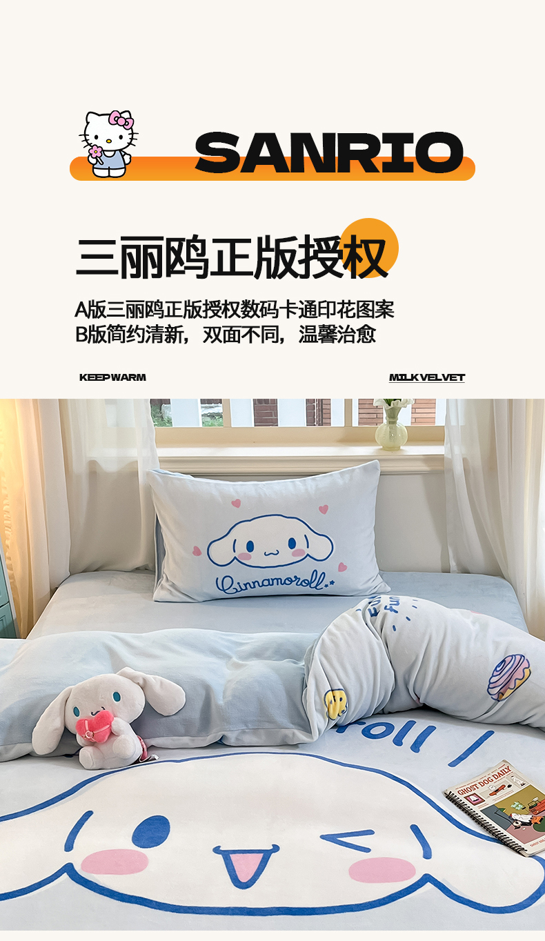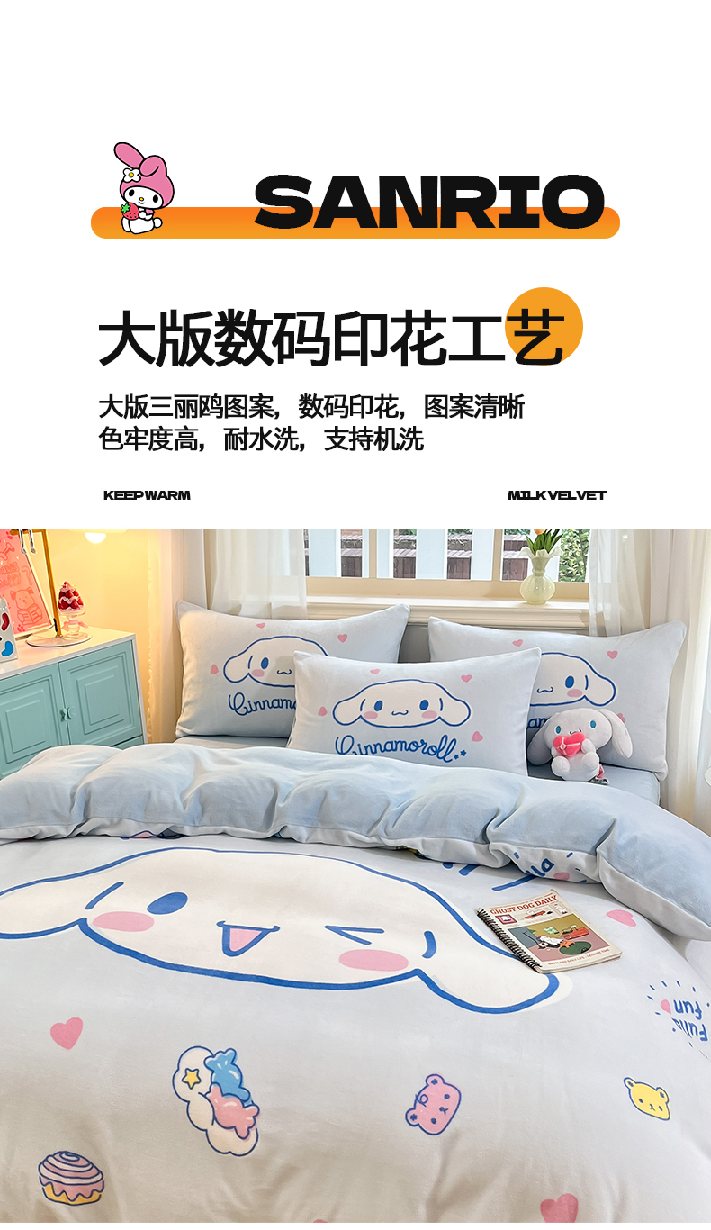 当前位置: 91家纺网 > 商品网购 > 床品套件 > 四件套 > 牛奶绒四件套 > 金爱家 2025新款正版三丽鸥授权大版卡通平网数码印花加厚高克重牛奶绒系列四件套-第一批 绒大版-R开心大耳狗