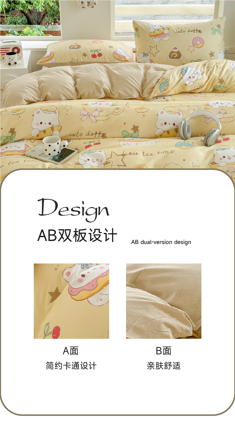 商品名称:可可家纺 2025新款印花卡通芦荟棉被套亲肤被罩单件小清新 下午茶小狗