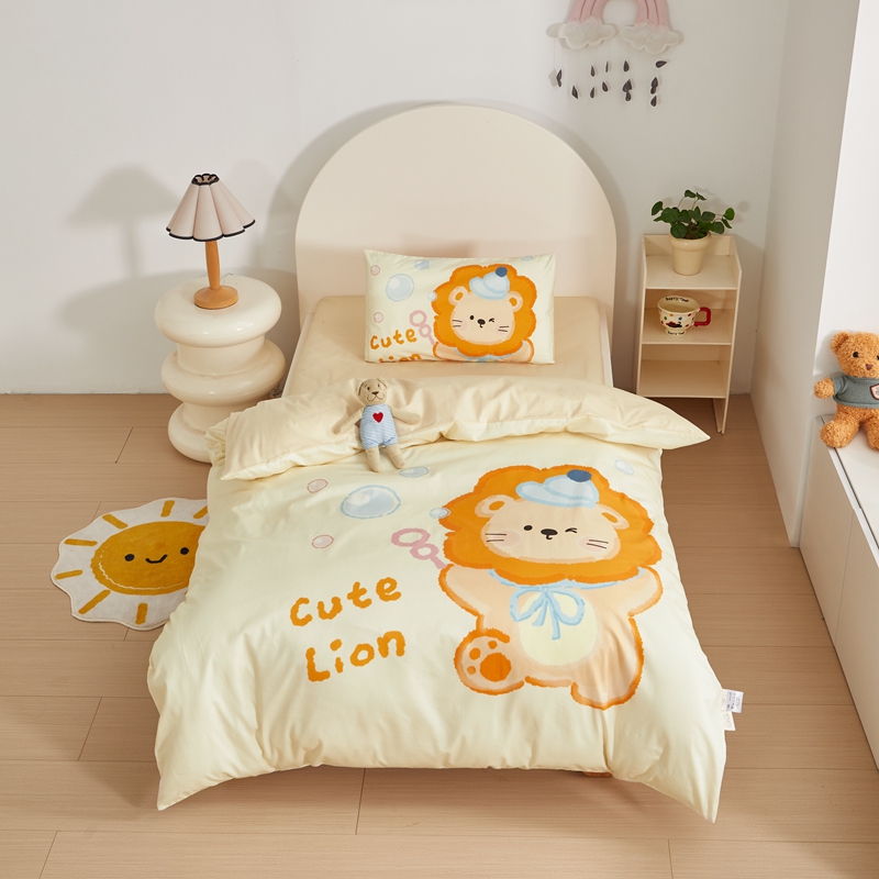 当前位置: 91家纺网 > 商品网购 > 床品套件 > 三件套 > 荷马之梦 2025新款A类全棉40s数码印花手绘风大版卡通儿童幼儿园套件-童画系列 童画-可爱小狮