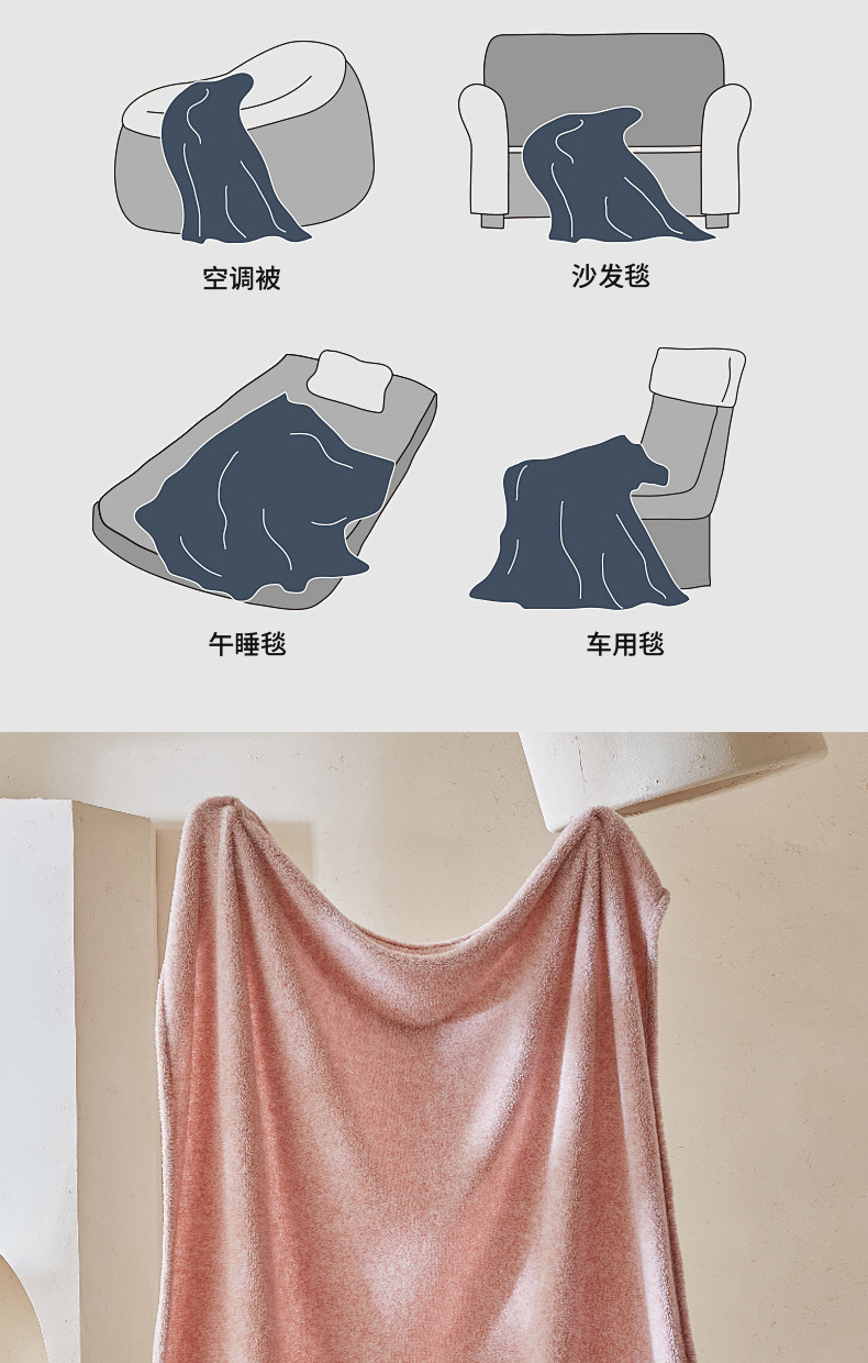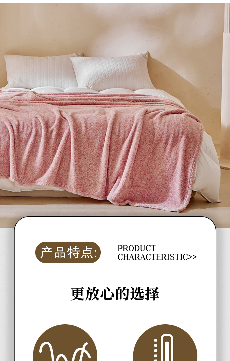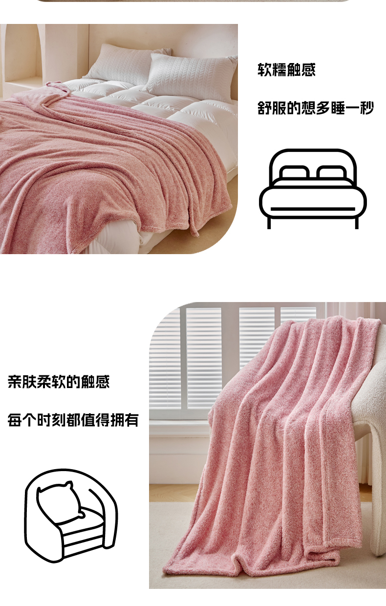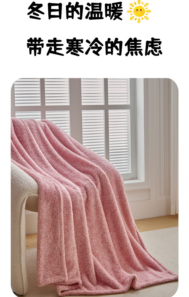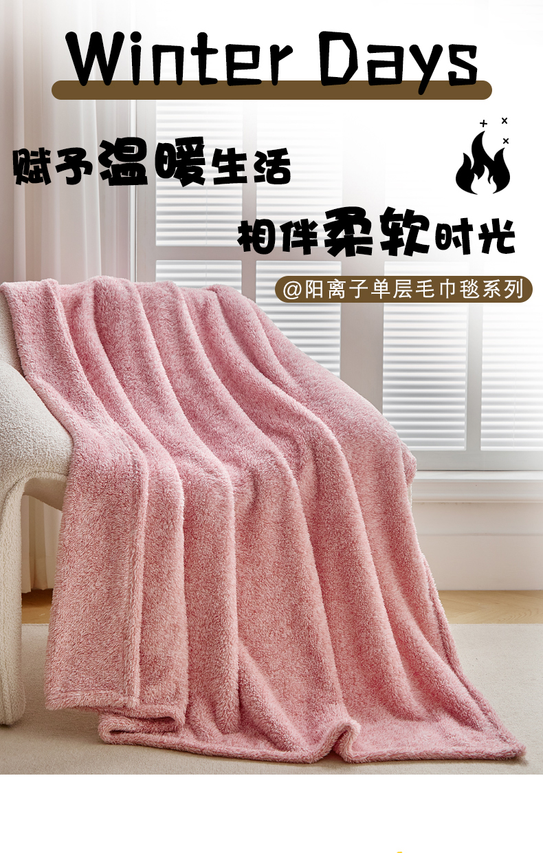 商品名称:缘生活 2025新款阳离子毛巾毯四季通用百搭款毛毯毯子 阳离子毛巾毯粉色