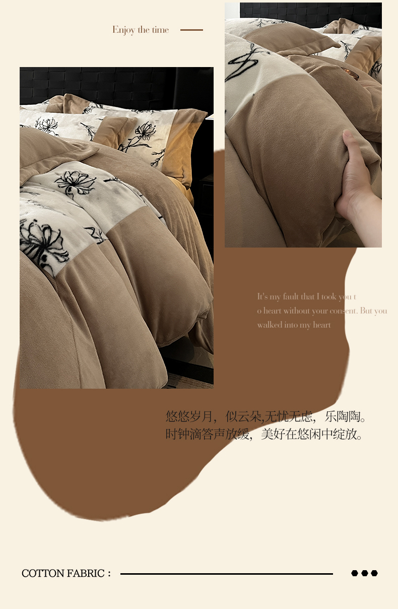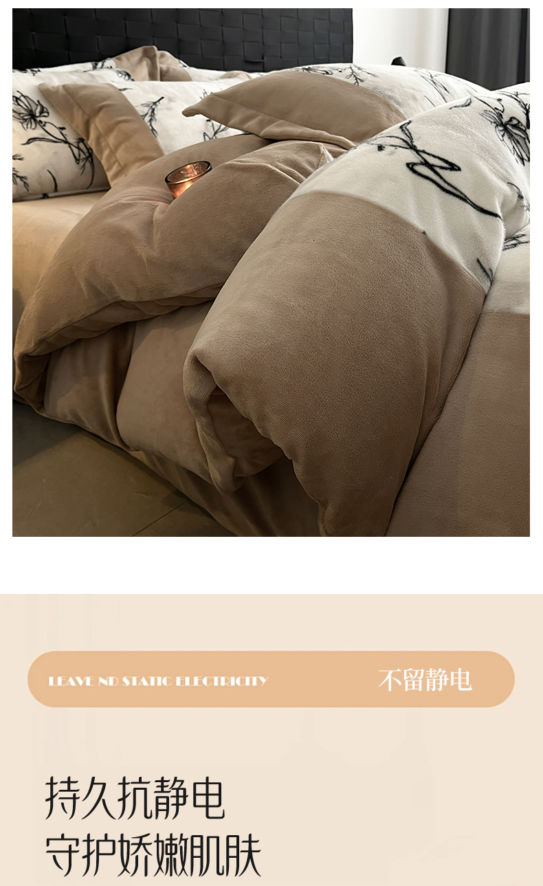 商品名称:羚羊语家纺 2025新款轻奢风雪貂绒牛奶绒四件套大拼角工艺貂毛绒升级款兔毛绒现代简约轻奢风三件套-左岸河畔 雪貂绒-柔疏影