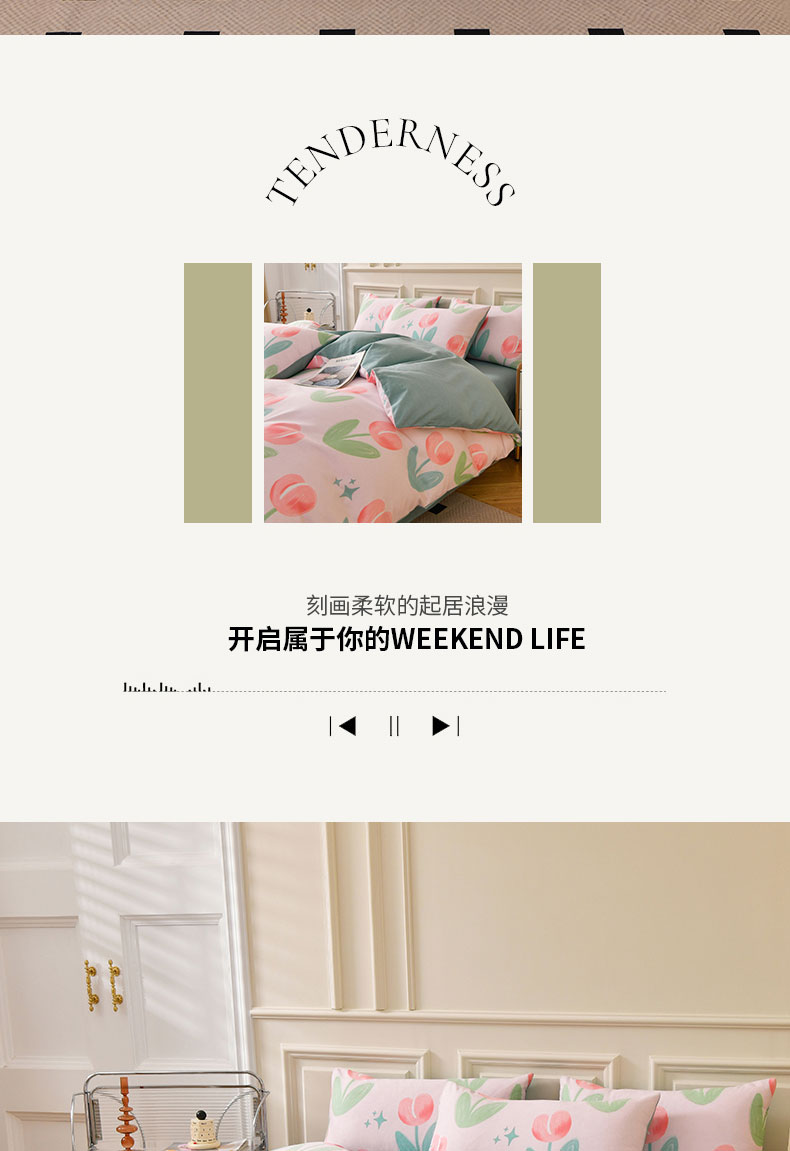 商品名称:宇彬家纺 2025直播热新款秋冬全棉精梳生态原棉印花加厚磨毛轻奢铂金单被套 预谋邂逅(粉)