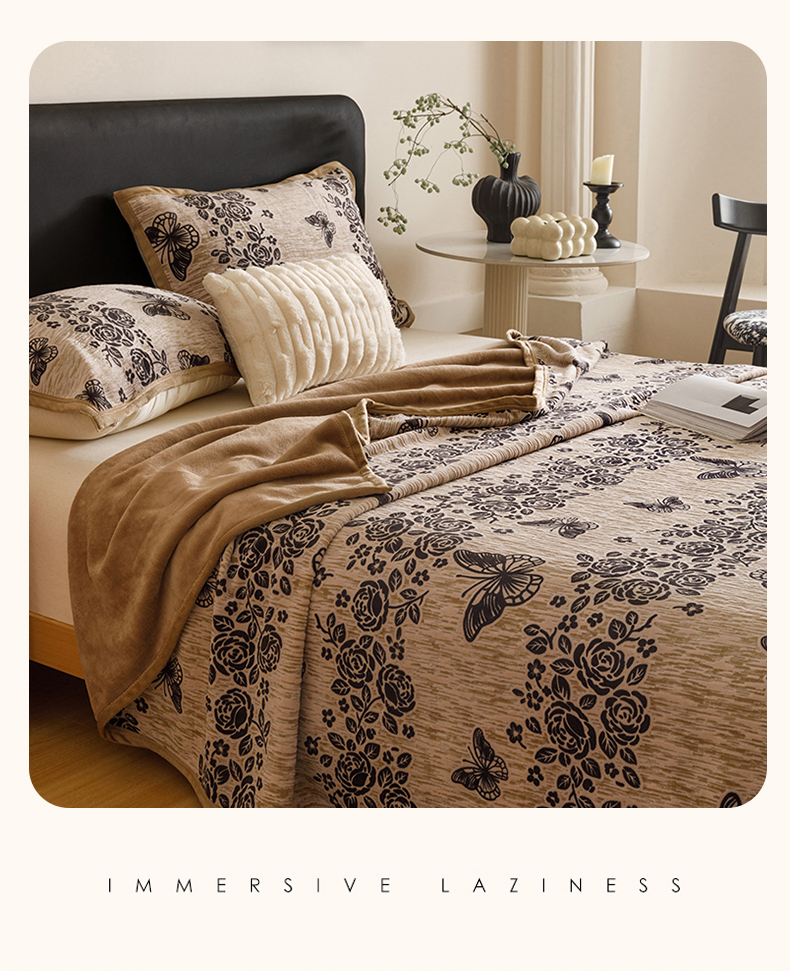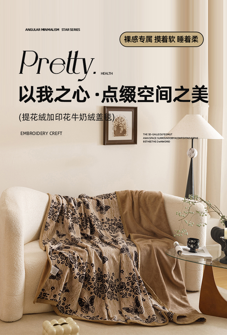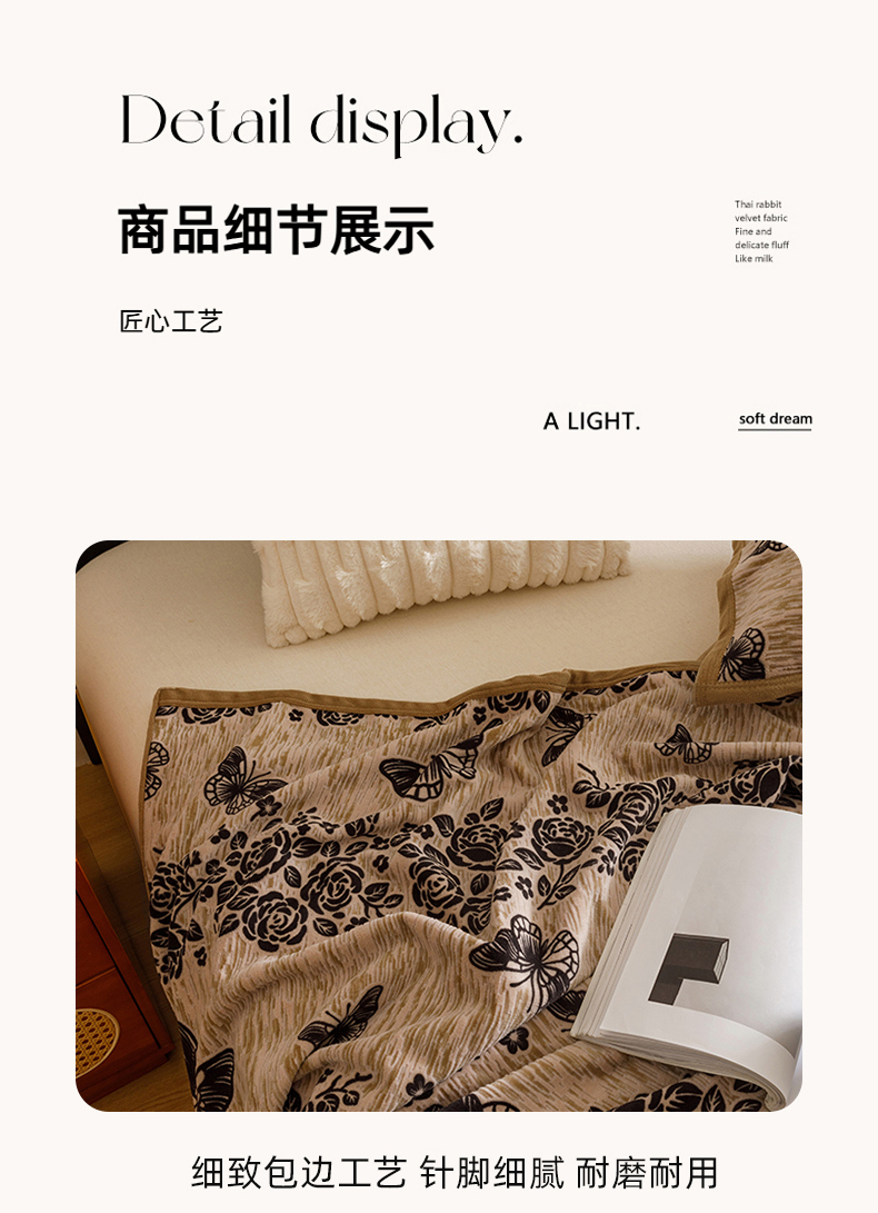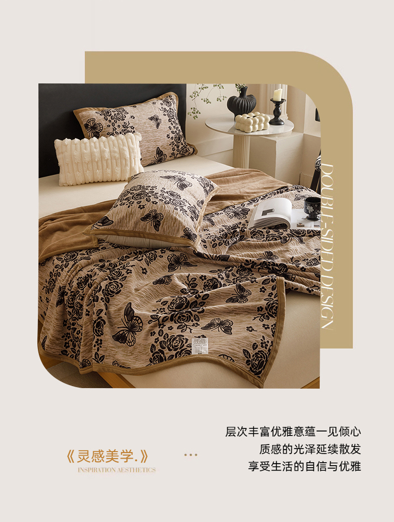 当前位置: 91家纺网 > 商品网购 > 毛毯休闲毯绒毯 > 毛毯 > 悦然毛巾被 2025新款复合毯休闲兔毛绒提花印花工艺盖毯 碟影花语