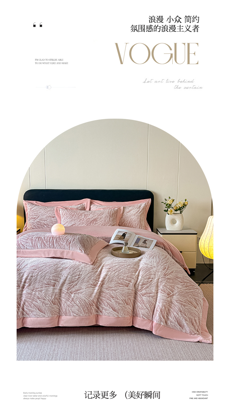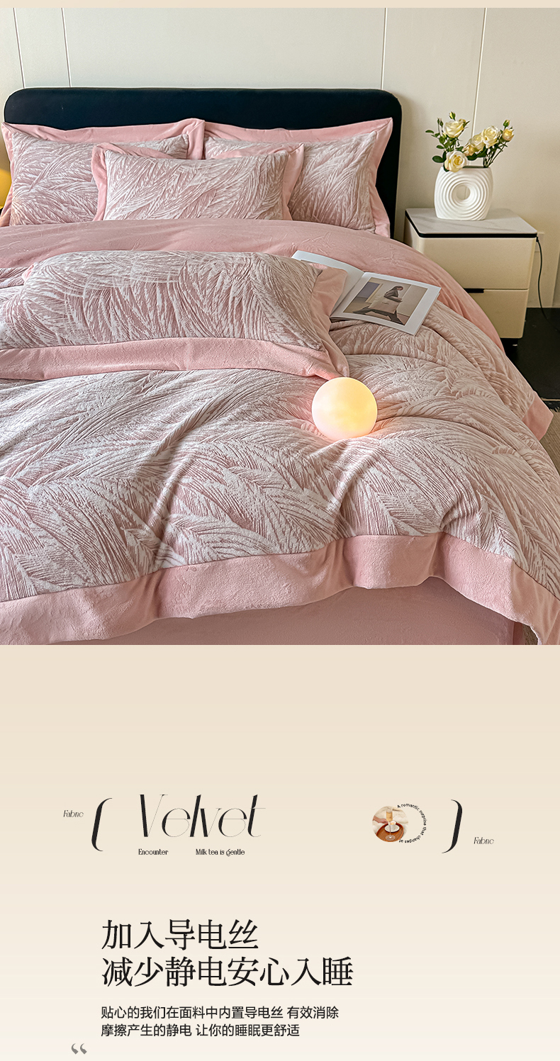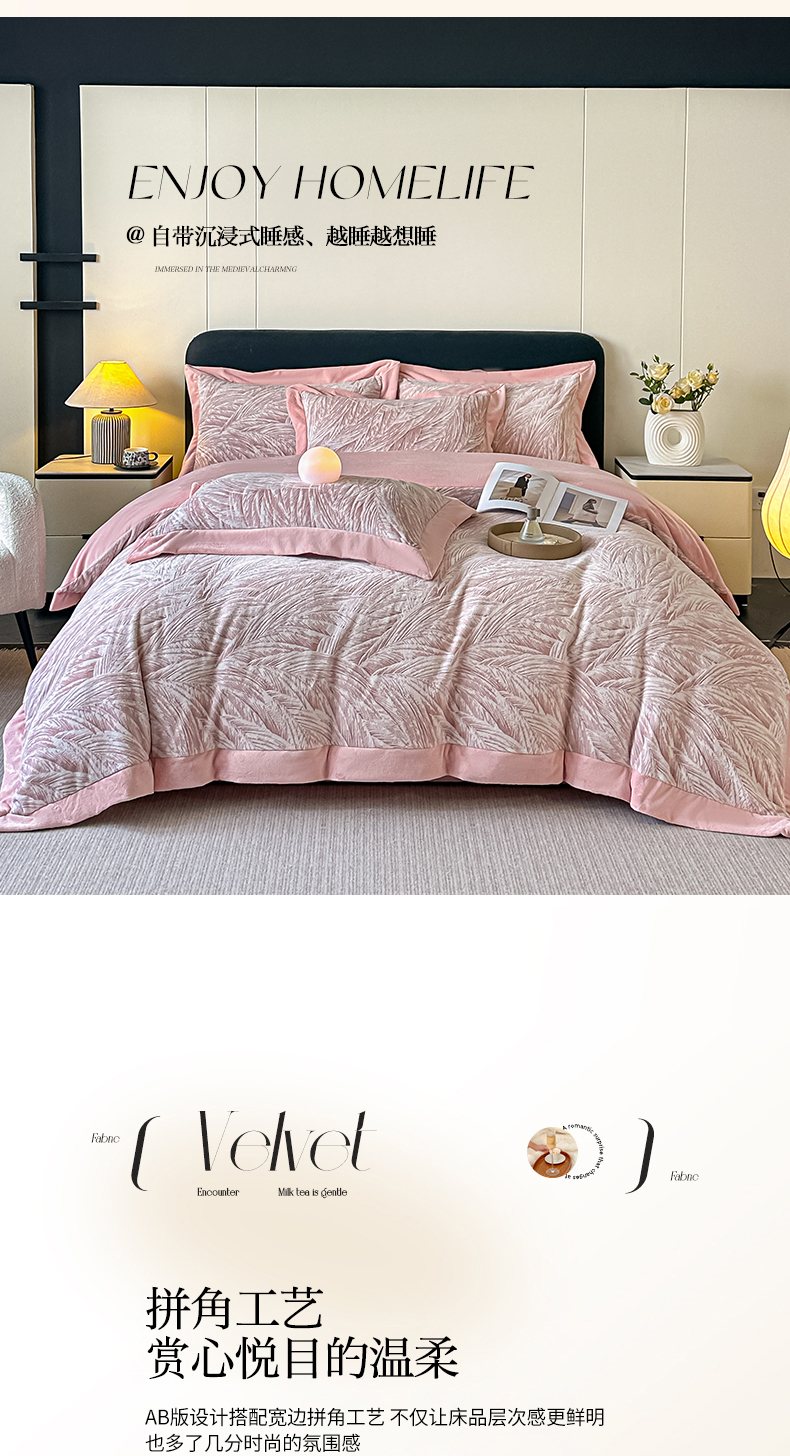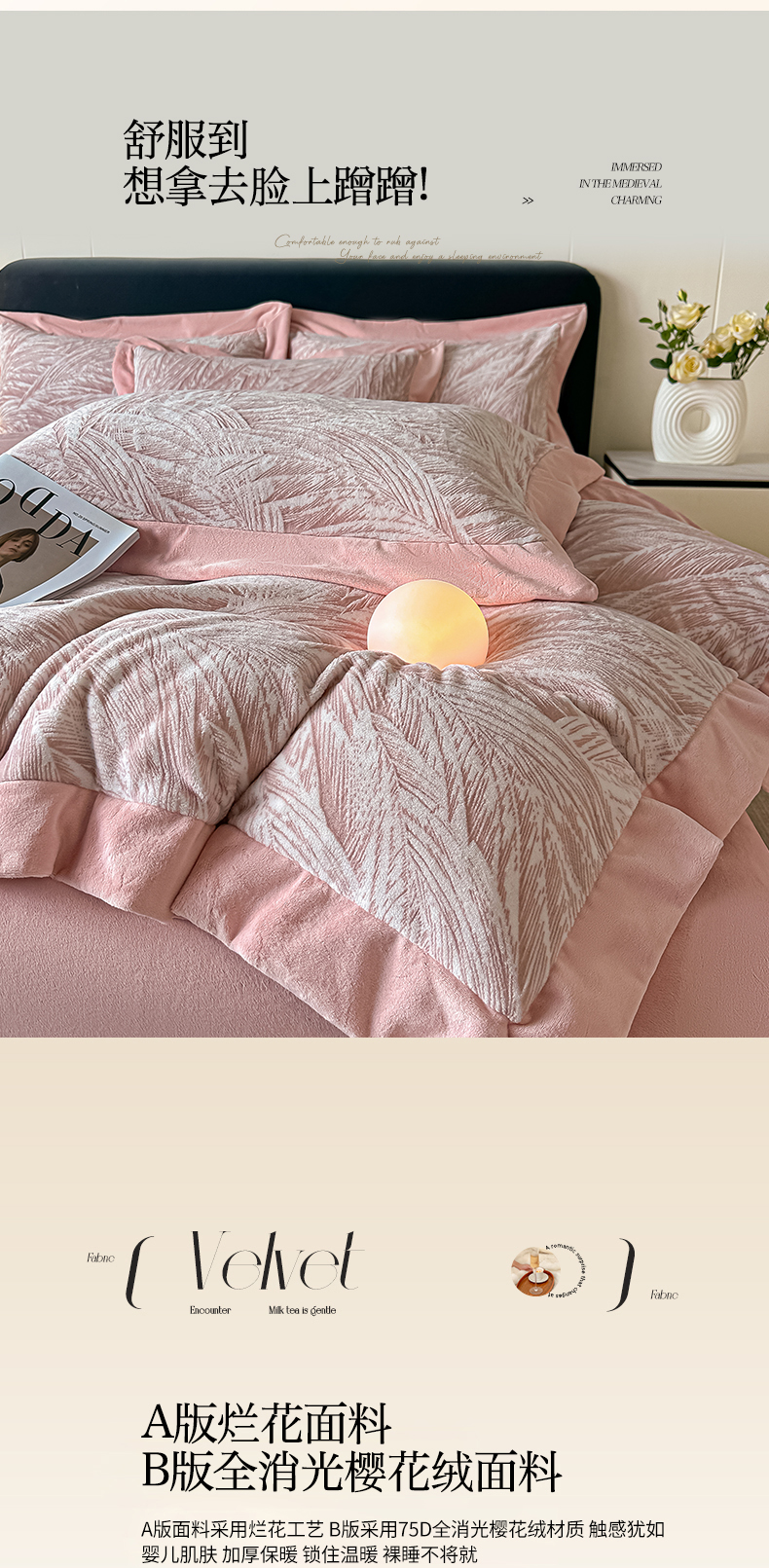 (总)锦铭源家纺 2025新款雪貂绒烂花75D全消光超柔樱花绒双拼角四件套牛奶绒四件套【有买家秀】,轻奢-粉,轻奢-奶白,轻奢-浅绿,轻奢-雅灰