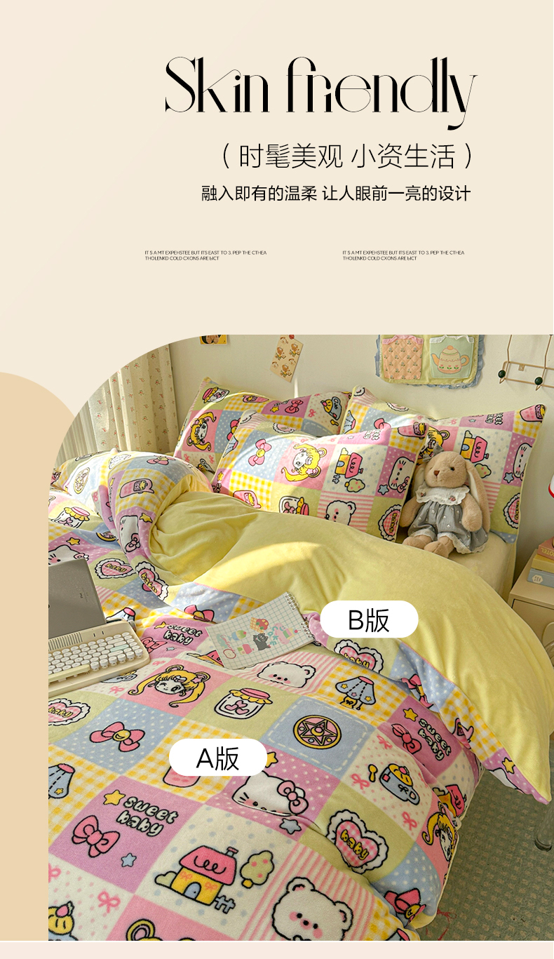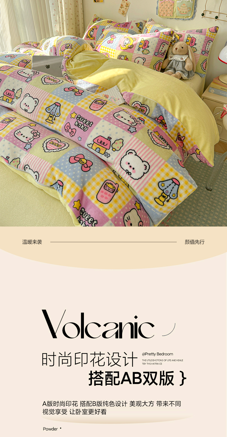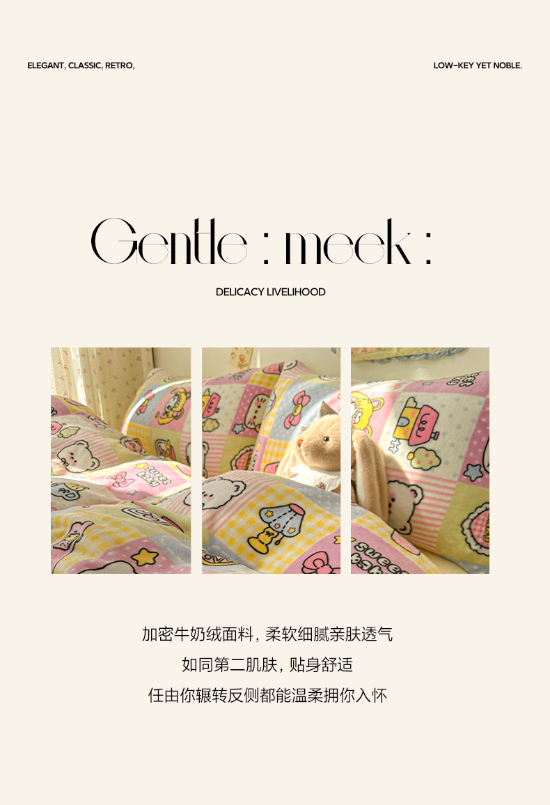 当前位置: 91家纺网 > 商品网购 > 床品套件 > 四件套 > 牛奶绒四件套 > 韩巢家纺 2025新款高克重牛奶绒四件套冬季绒床品被套床单三件套 少女心