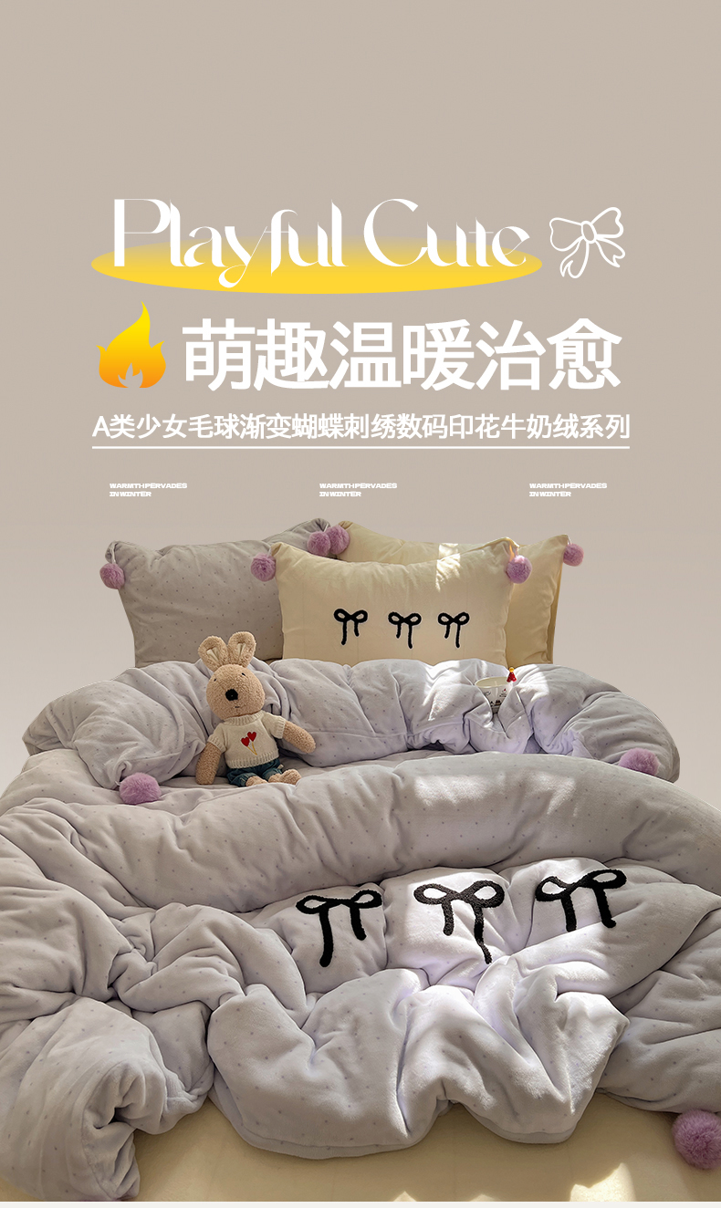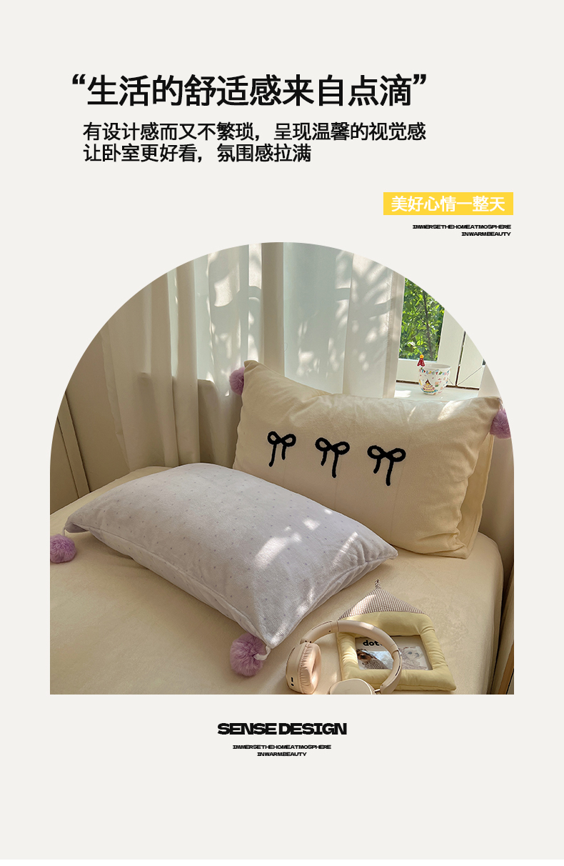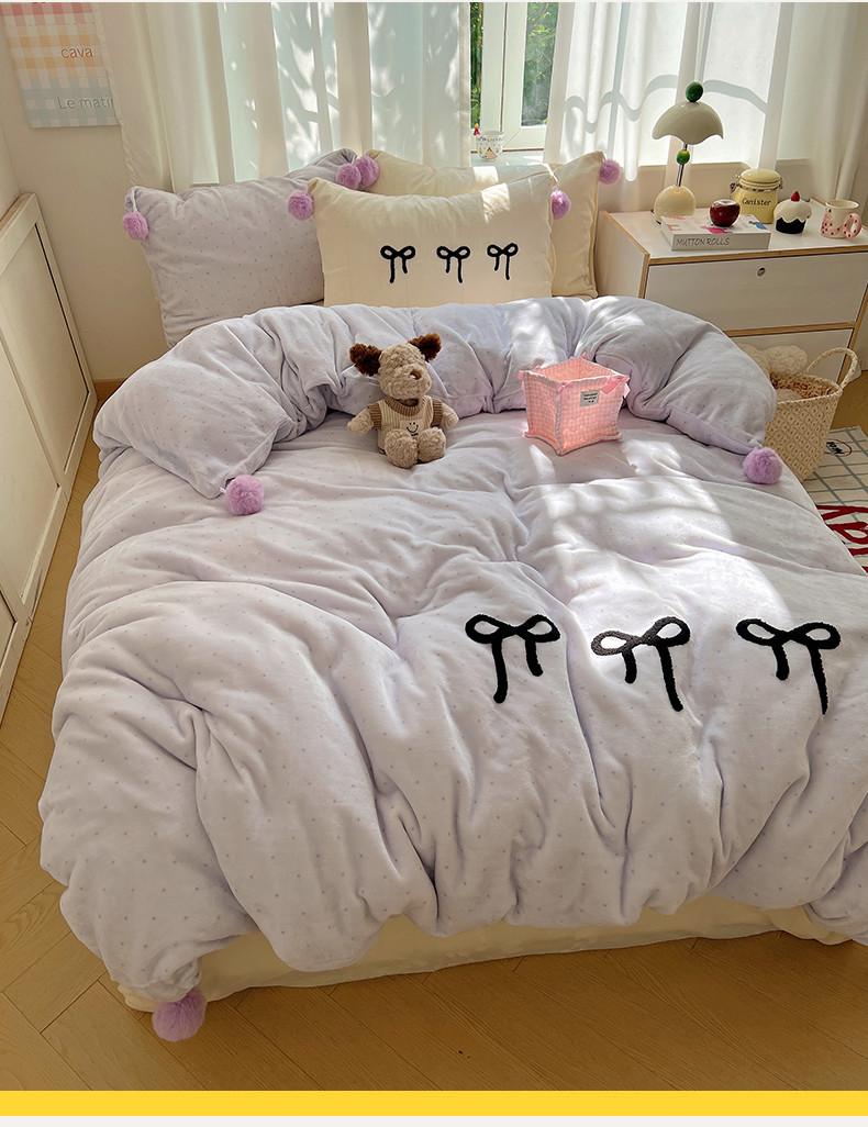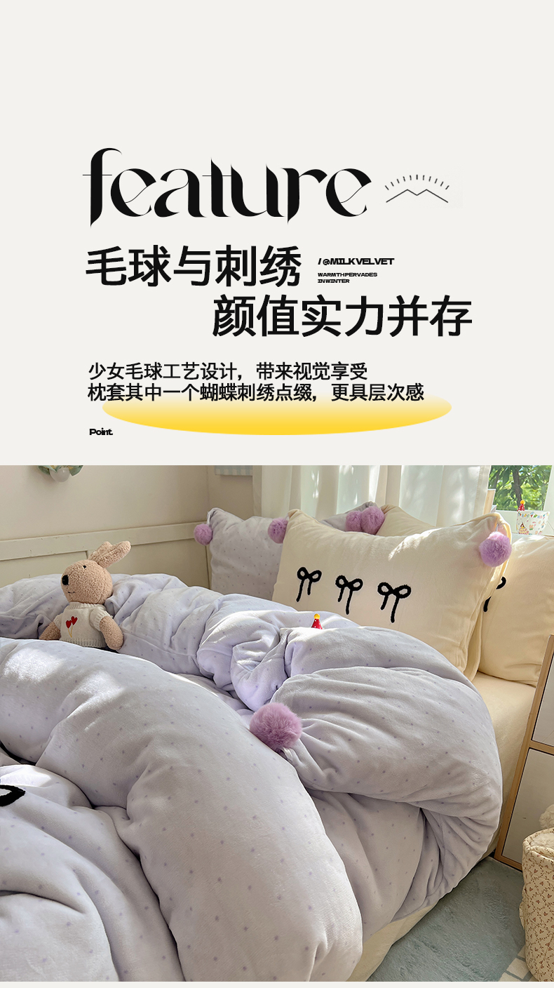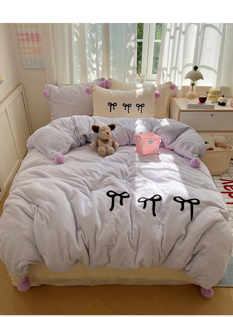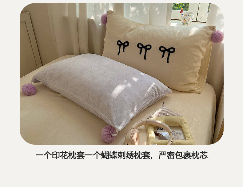 当前位置: 91家纺网 > 商品网购 > 床品套件 > 四件套 > 牛奶绒四件套 > 桃子家居 2025新款insA类少女甜心毛球混搭工艺蝴蝶结刺绣毛巾绣印花加厚牛奶绒四件套 绒毛球-蝴蝶结香芋奶昔