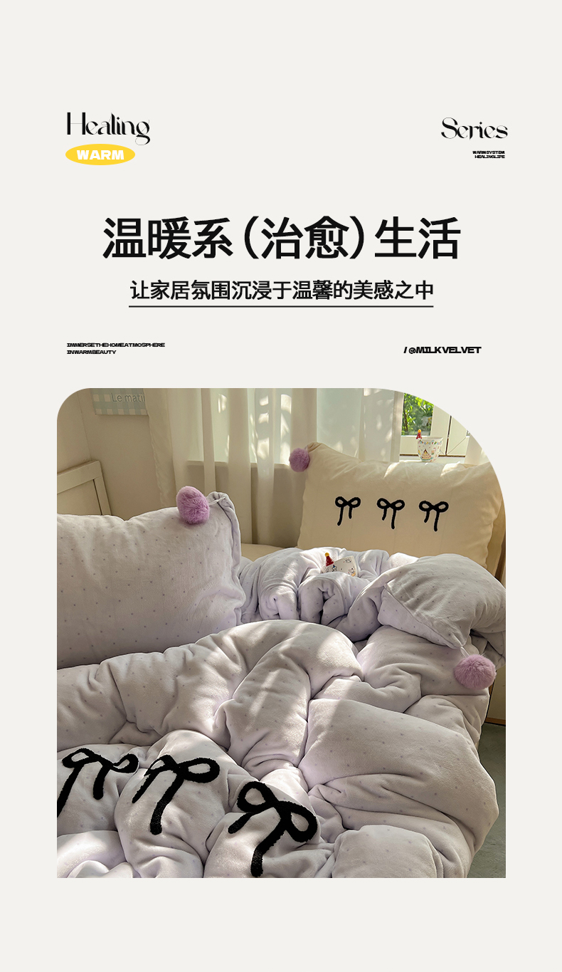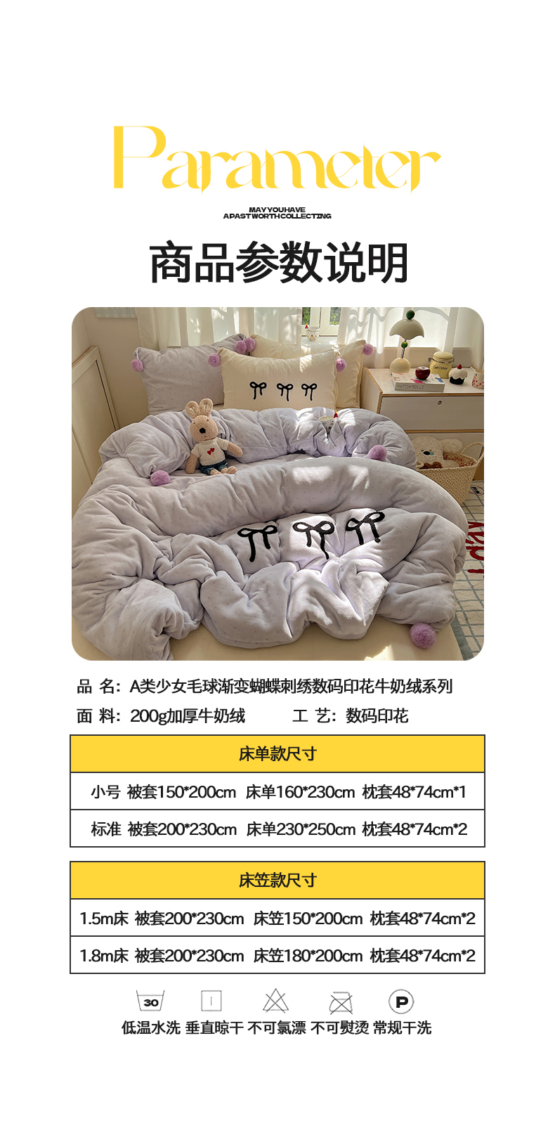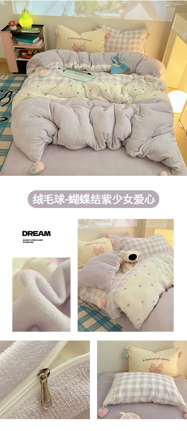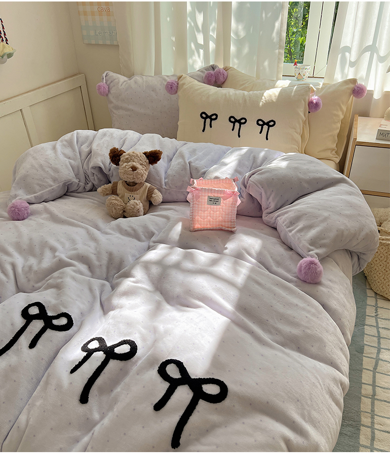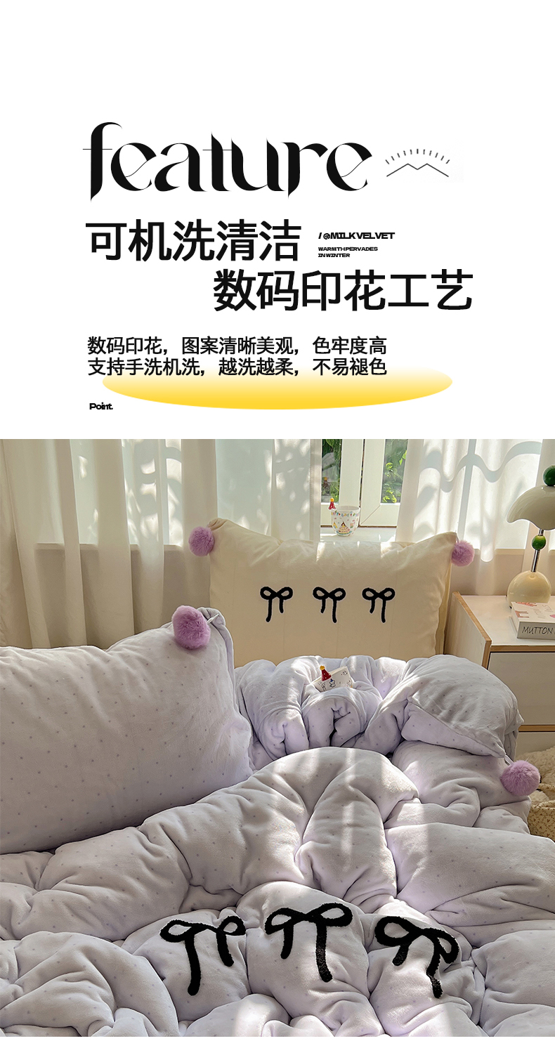 当前位置: 91家纺网 > 商品网购 > 床品套件 > 四件套 > 牛奶绒四件套 > 桃子家居 2025新款insA类少女甜心毛球混搭工艺蝴蝶结刺绣毛巾绣印花加厚牛奶绒四件套 绒毛球-蝴蝶结香芋奶昔