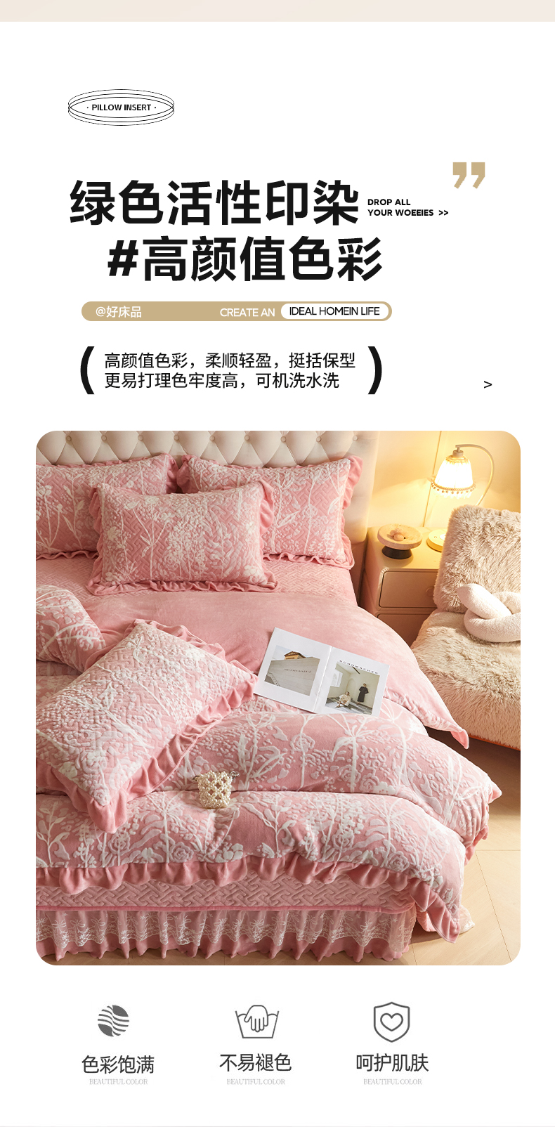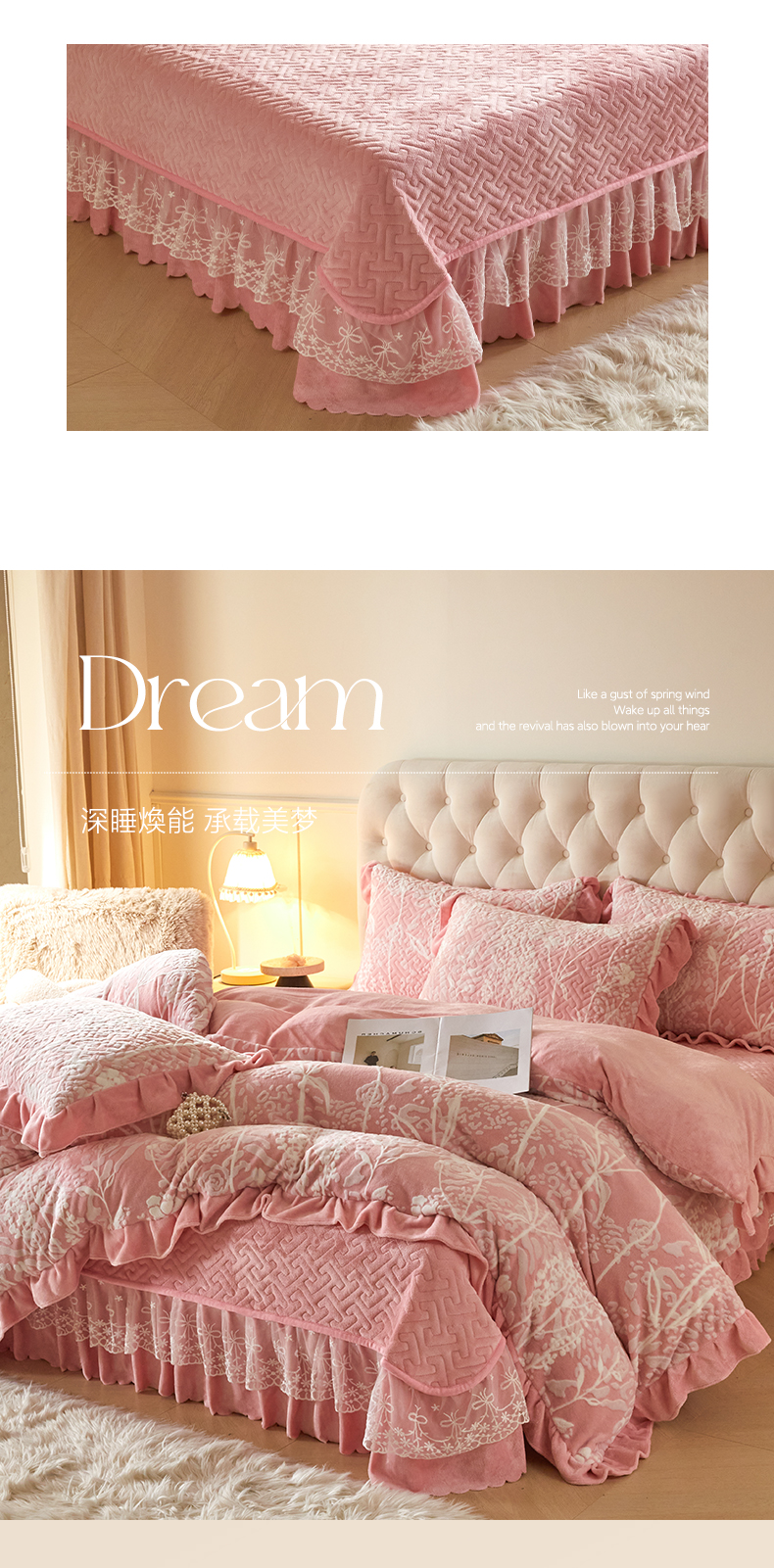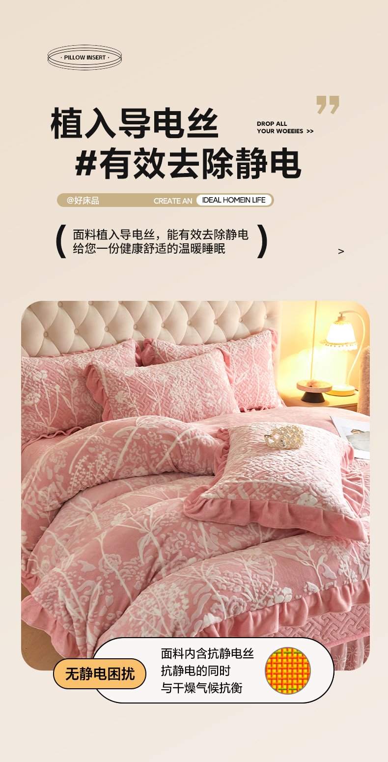 商品名称:畅畅家纺 2025新款11斤高克重新款韩版烂花牛奶绒冬季加厚床盖四件套系列 雾里看花-桃粉