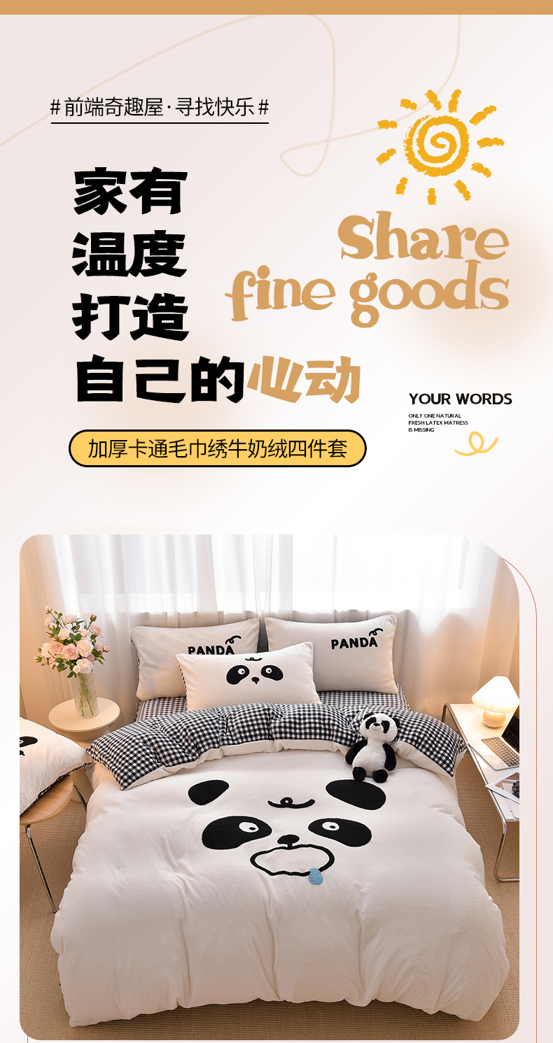 当前位置: 91家纺网 > 商品网购 > 床品套件 > 四件套 > 牛奶绒四件套 > (总)炫拼家纺 2025新款大眼卡通大版毛巾绣加厚牛奶绒四件套