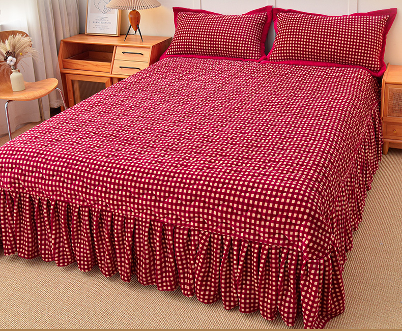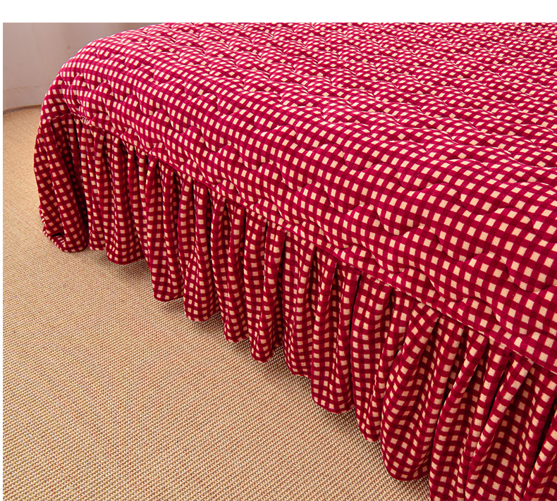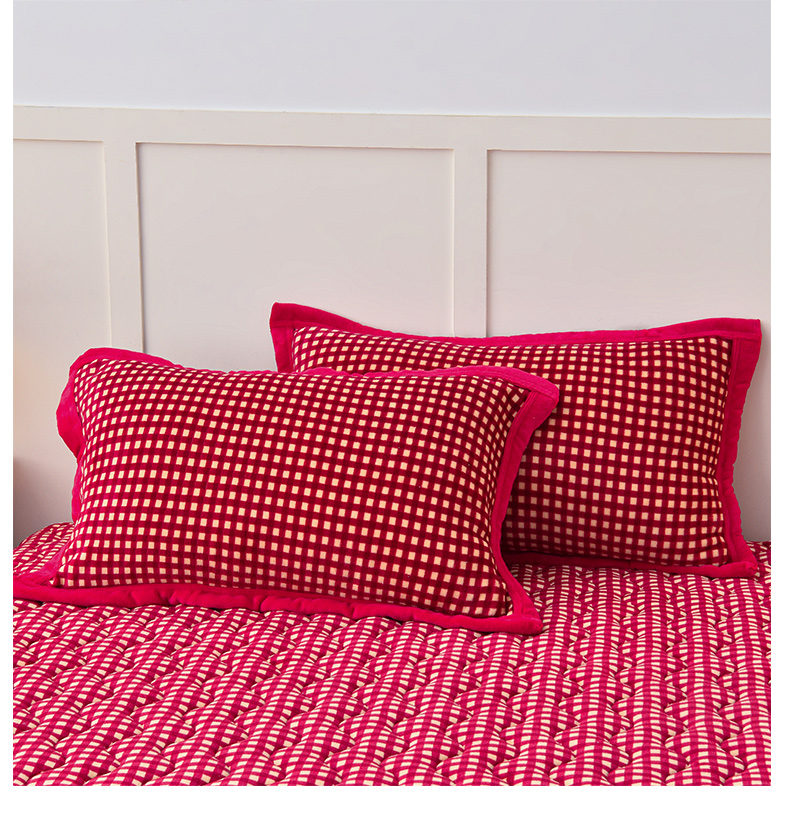 茉保家纺 2024新款无印风款牛奶绒床盖 红小格