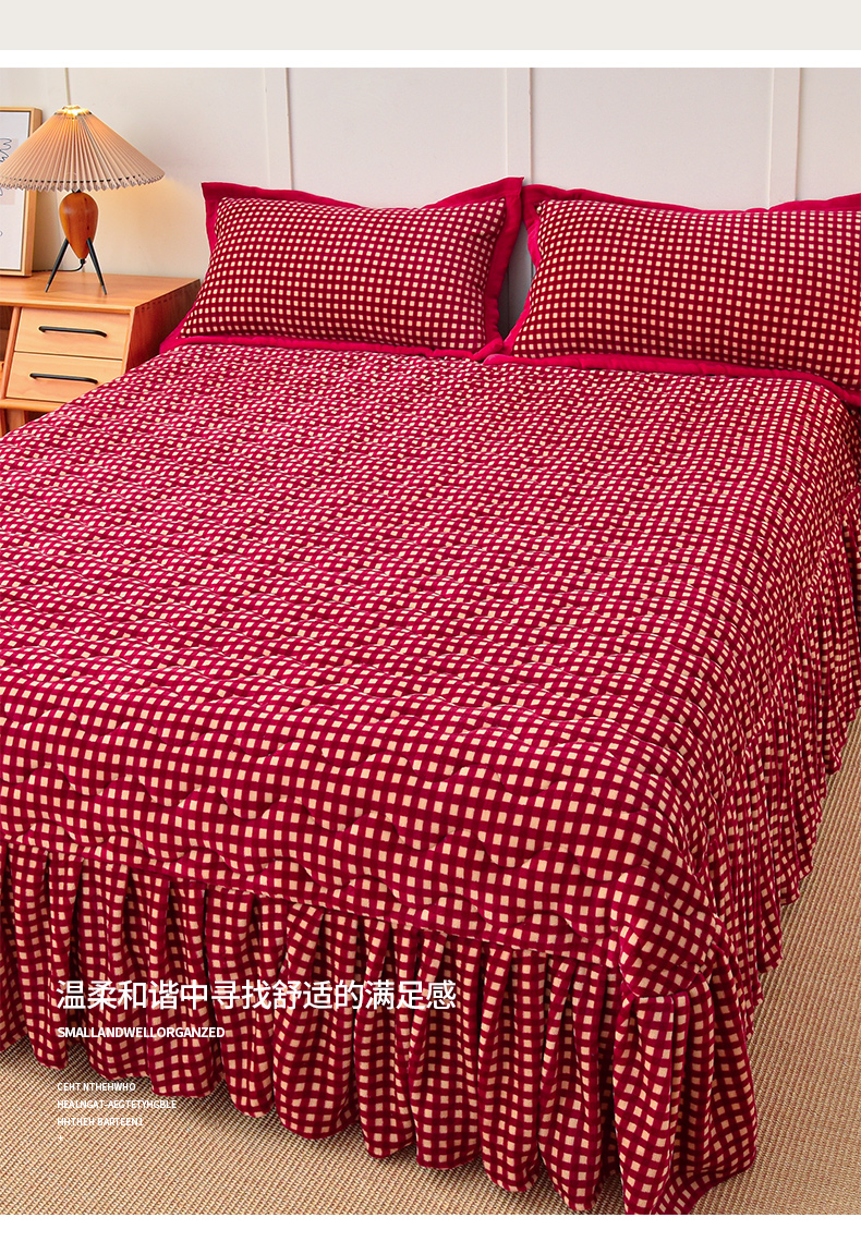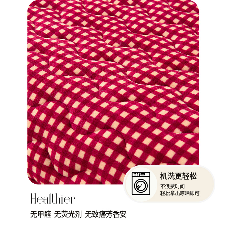 商品名称: 茉保家纺 2024新款无印风款牛奶绒床盖 红小格