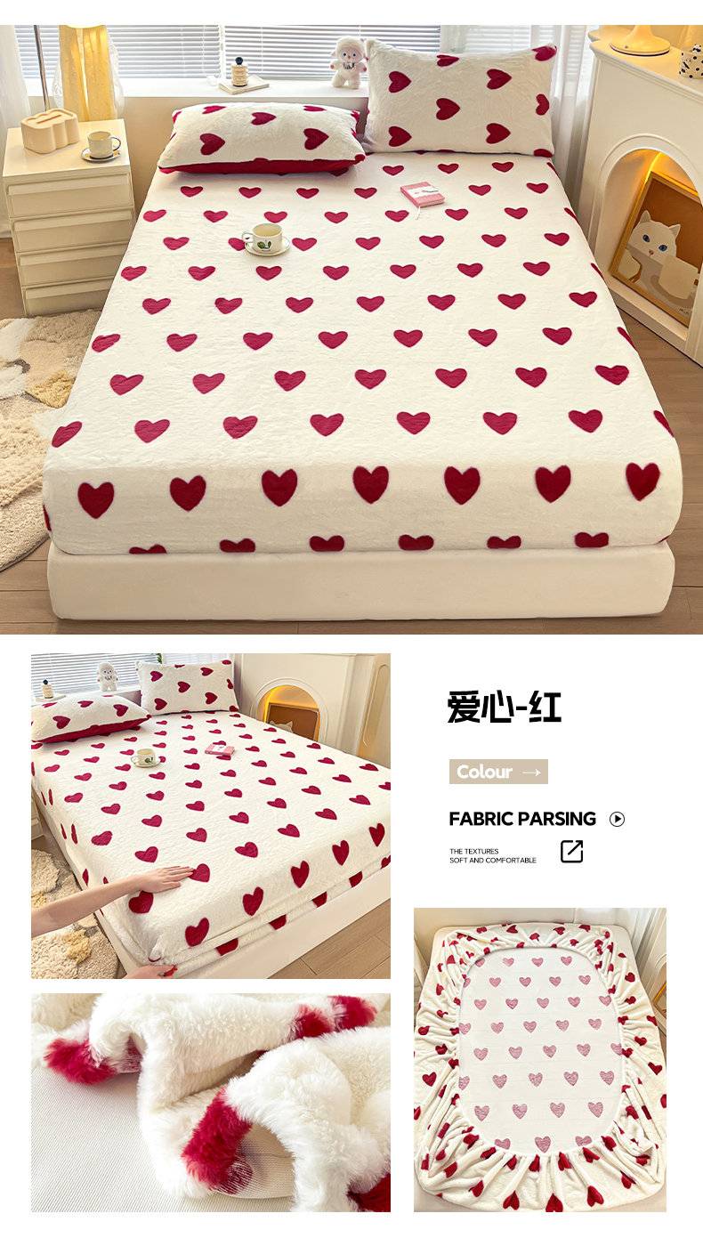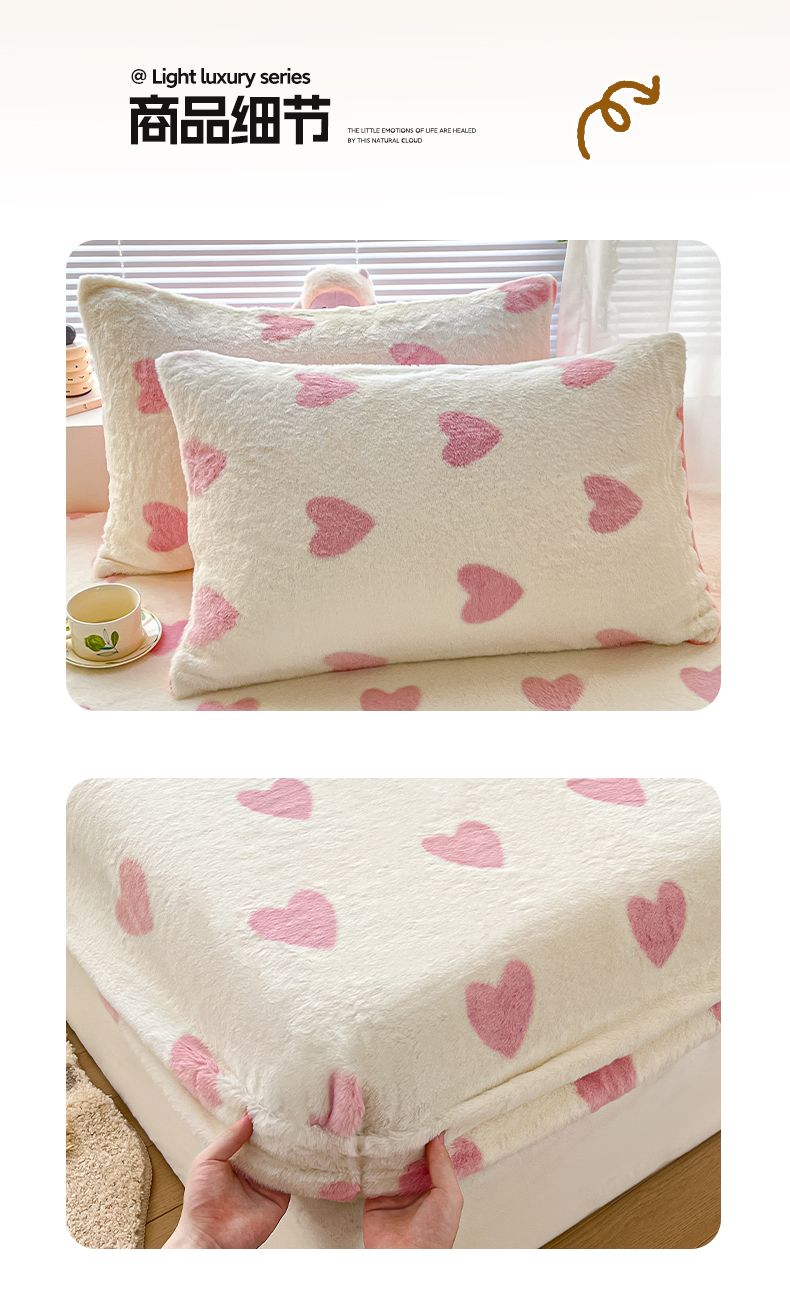 商品名称:雅居纺家纺 2025新款高克重兔绒印花单枕套-爱心 爱心-粉