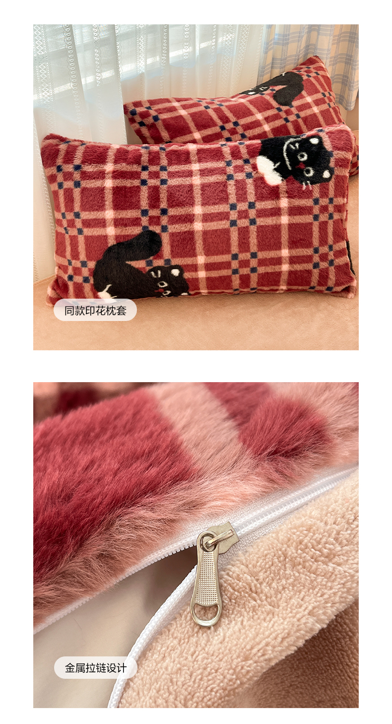 商品名称:雅居纺家纺 2025新款保暖舒适兔绒印花四件套 幸福小黑猫