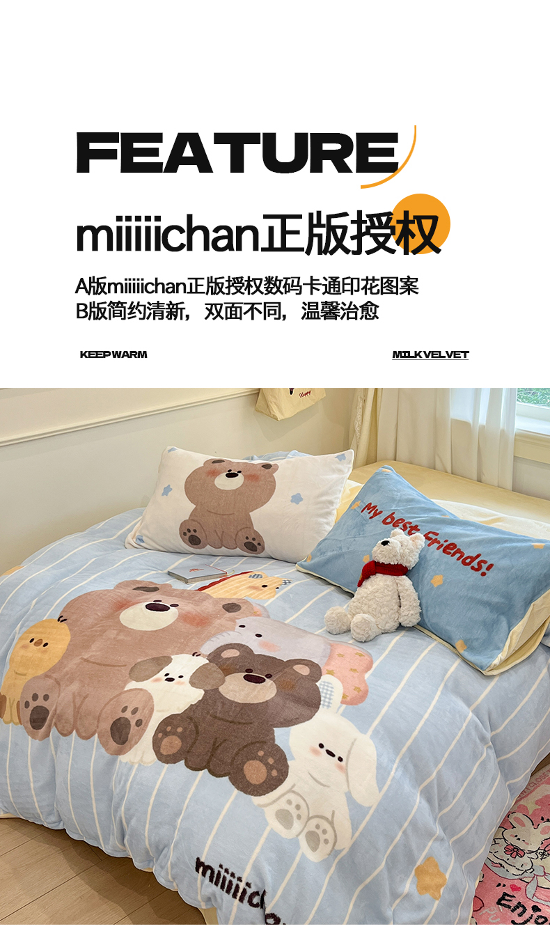 当前位置: 91家纺网 > 商品网购 > 床品套件 > 四件套 > 牛奶绒四件套 > 桃子家居 2025新品A类正版授权miiiiichan咪酱大版卡通数码印花加厚牛奶绒系列四件套 绒大版-咪酱奶油伙伴