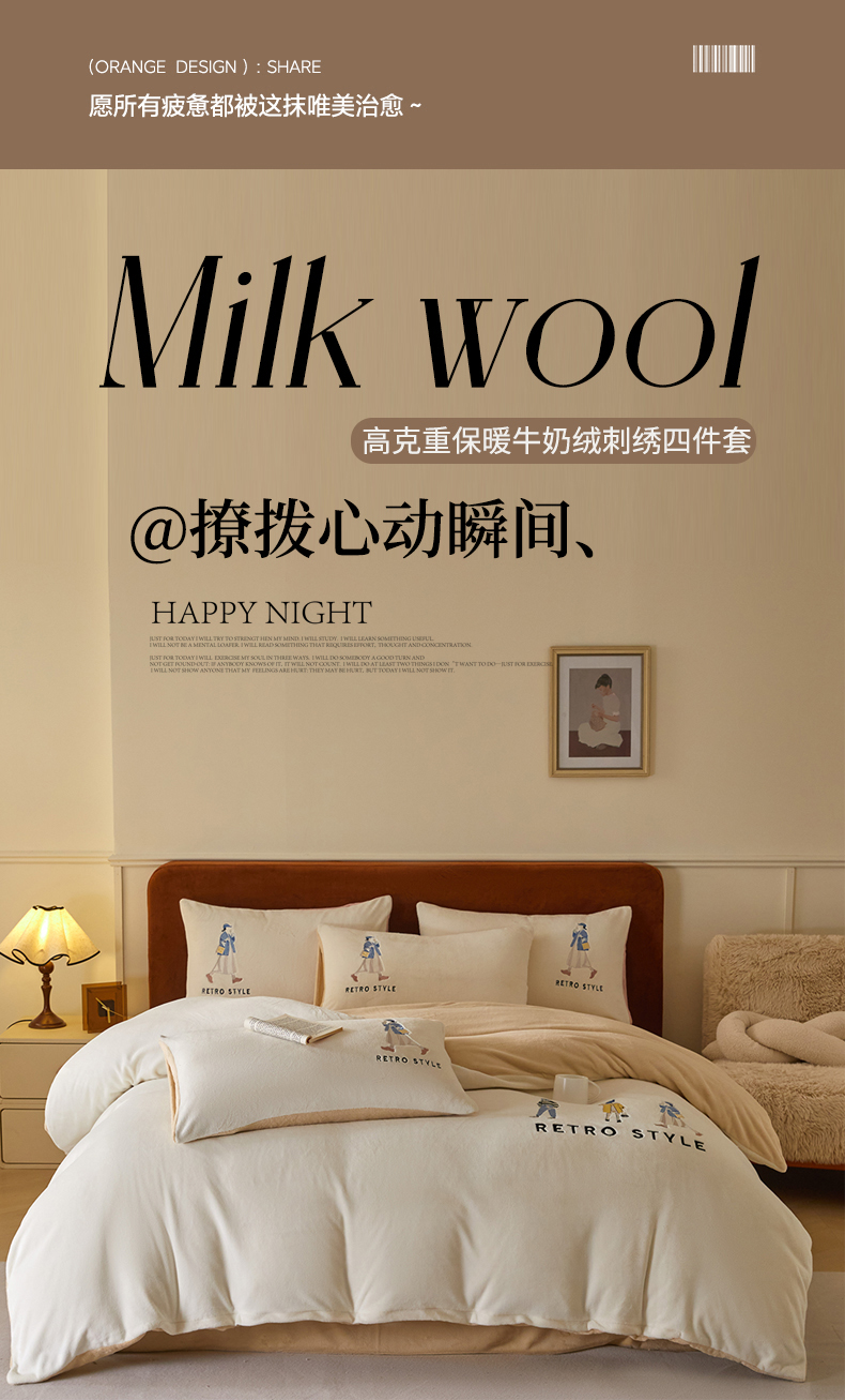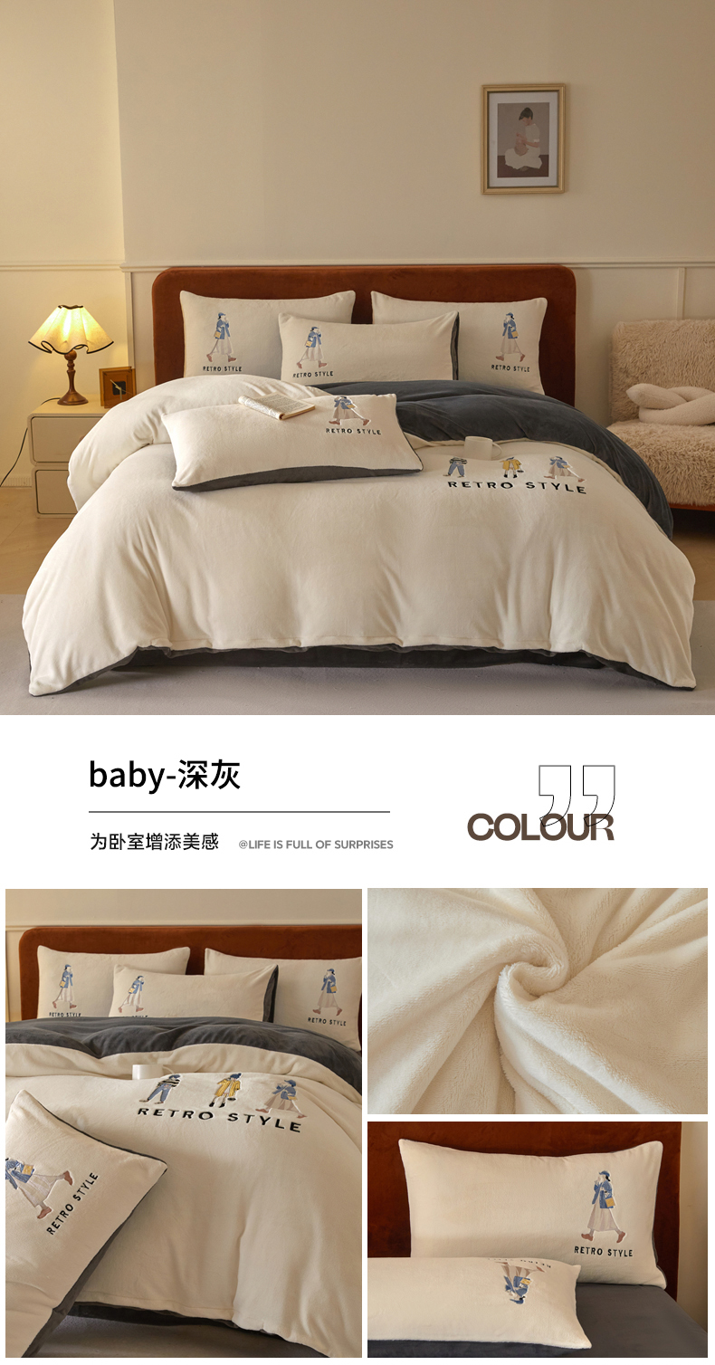 当前位置: 91家纺网 > 商品网购 > 床品套件 > 四件套 > 牛奶绒四件套 > ONE TWO ONE 121 新品【牛奶绒刺绣四件套】2025毛毯被子四件套单件床单被套床笠珊瑚绒牛奶绒冬被法兰绒兔毛绒 baby-深灰
