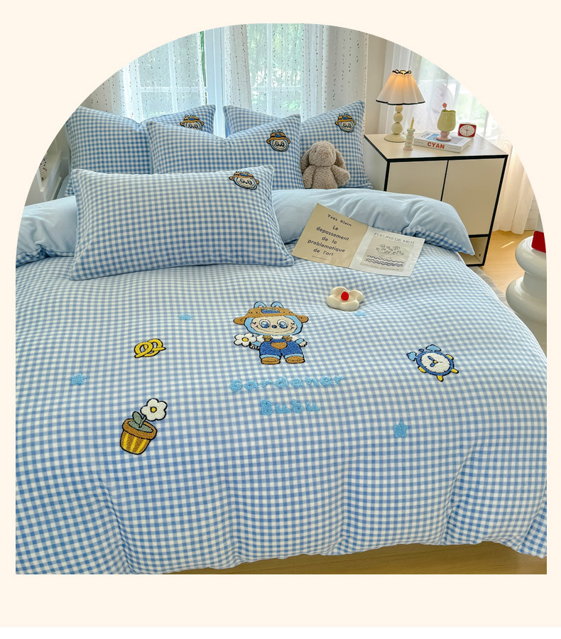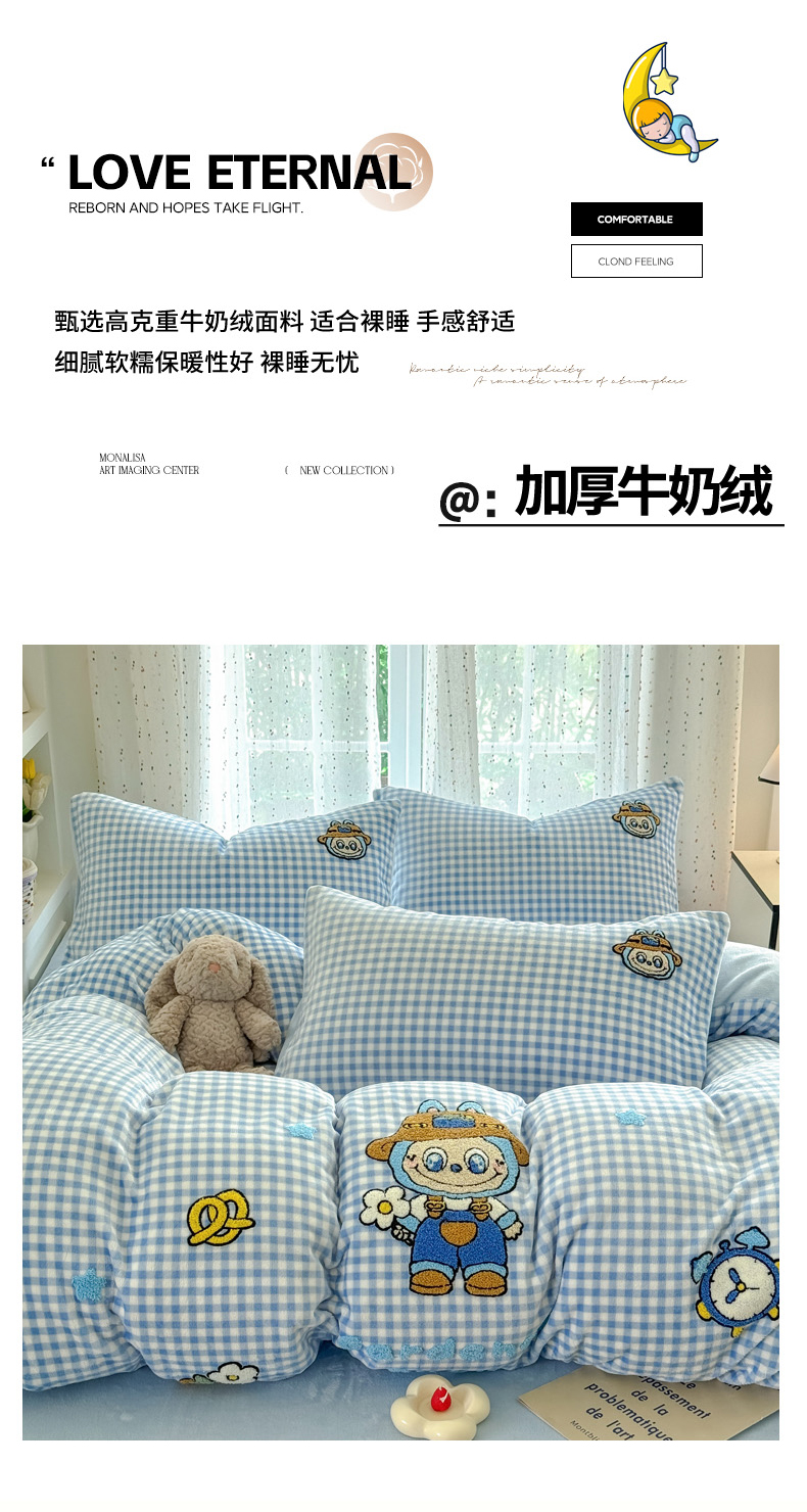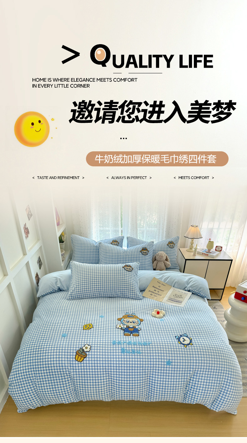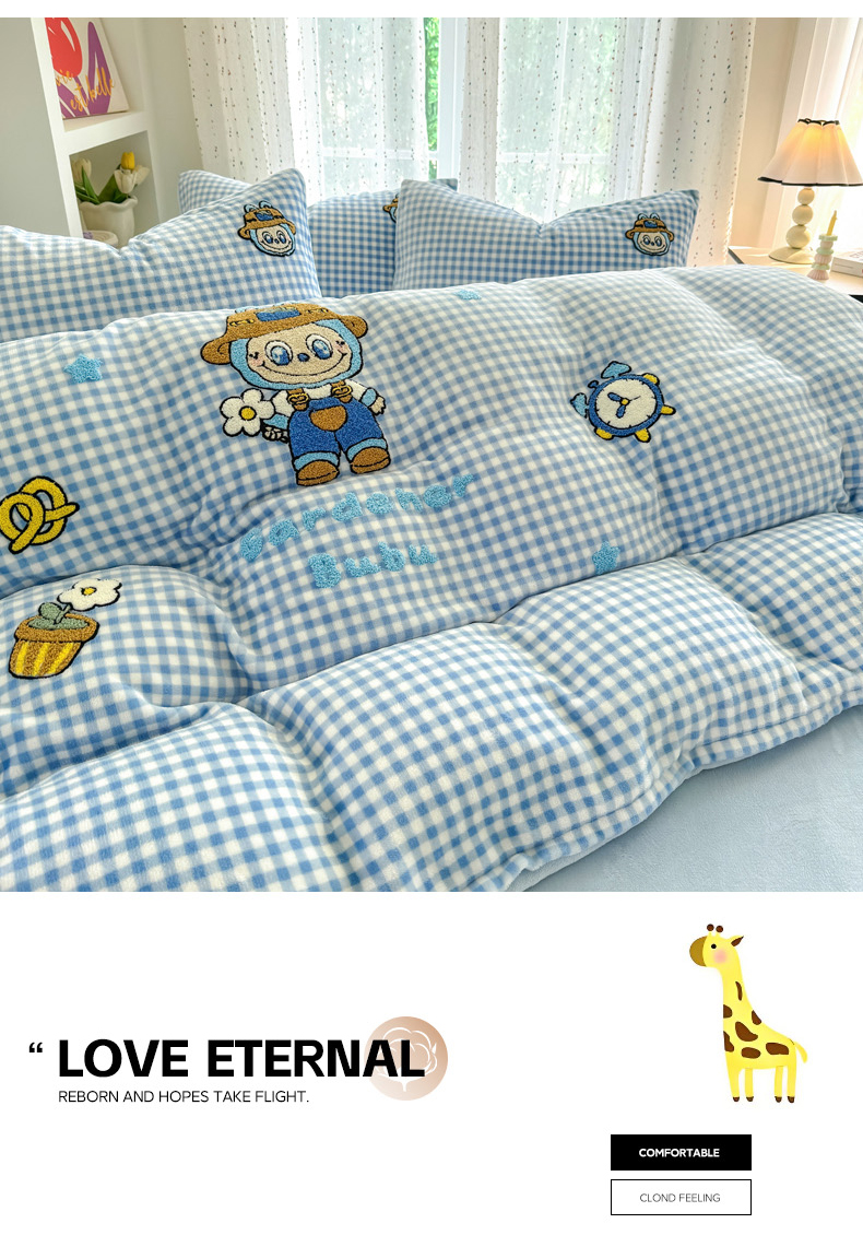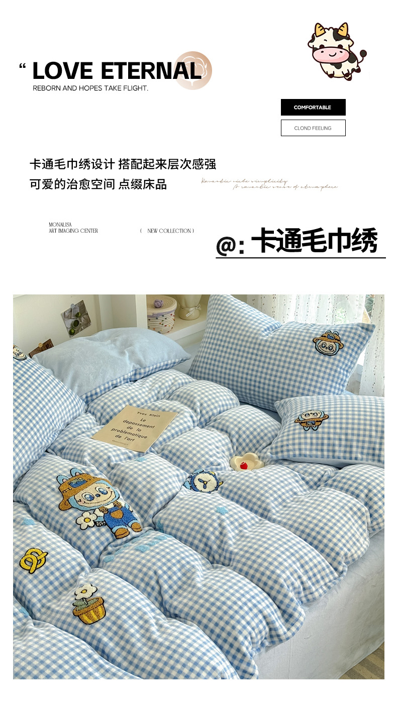 恋佳居 2025新款卡通毛巾绣牛奶绒绣花四件套 花匠布布