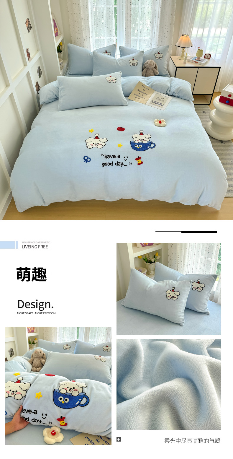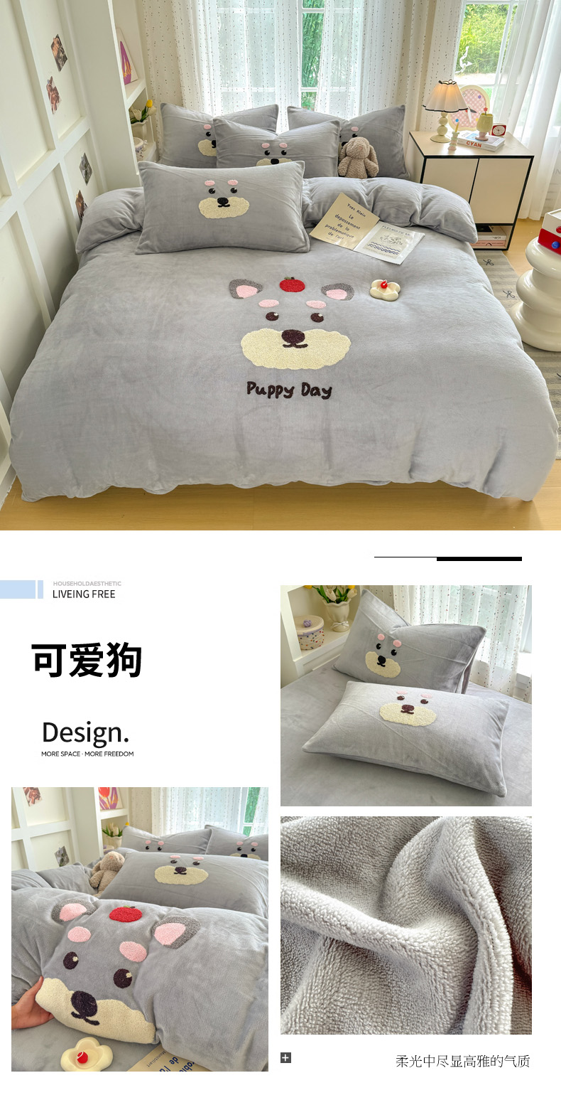 (总)恋佳居 2025新款卡通毛巾绣牛奶绒绣花四件套,花匠布布,可爱狗,萌趣,蘑菇与狗-粉,蘑菇与狗-紫,太空小恐龙,甜品时光,音乐派对,月亮天使
