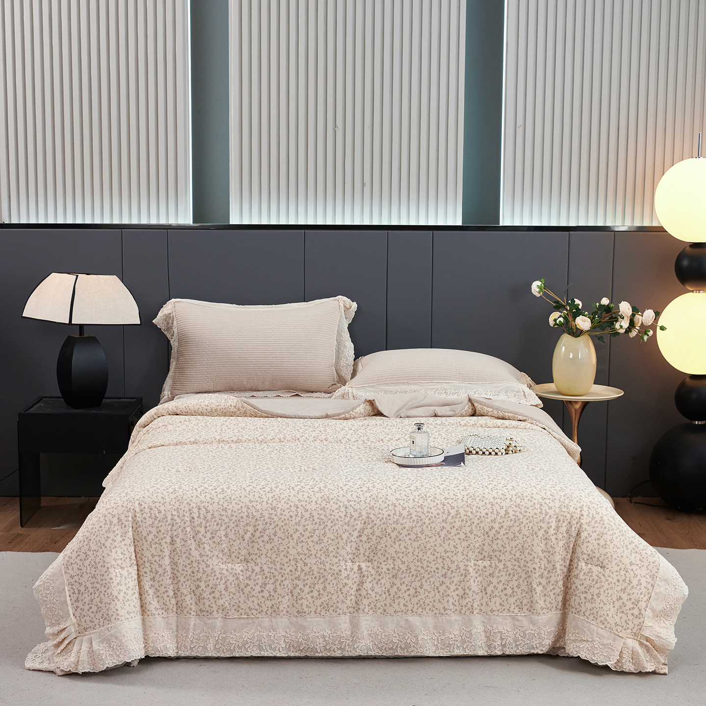 (总)优希家纺 2025新款米娅千金多功能春秋被四件套,米白色,粉色,卡其,绿色
