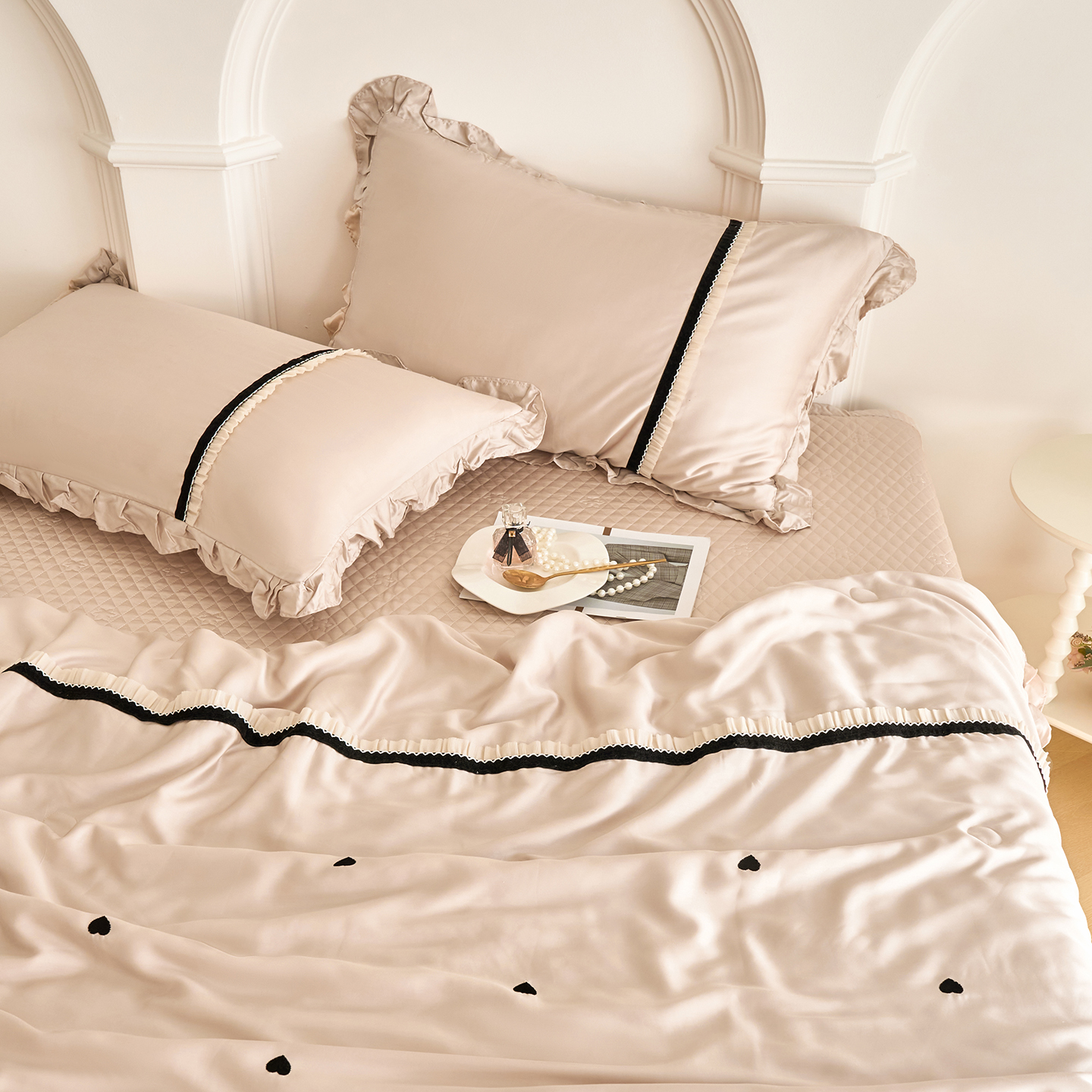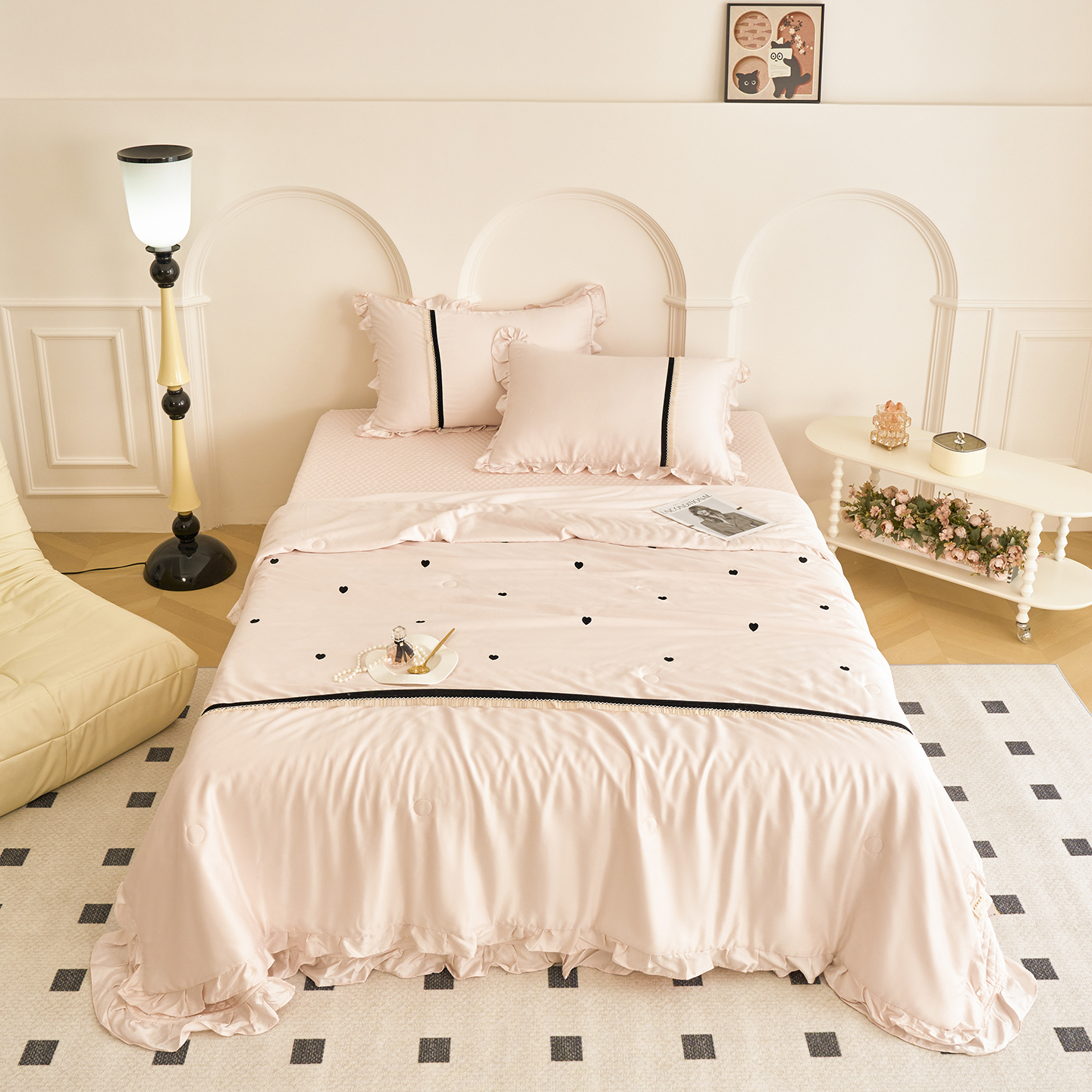(总)优希家纺 2025新款安雅夏被床盖四件套,粉色,黄色,灰色,卡其