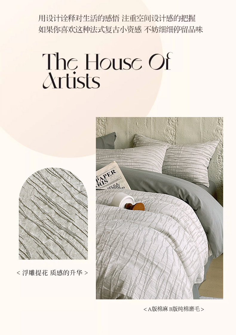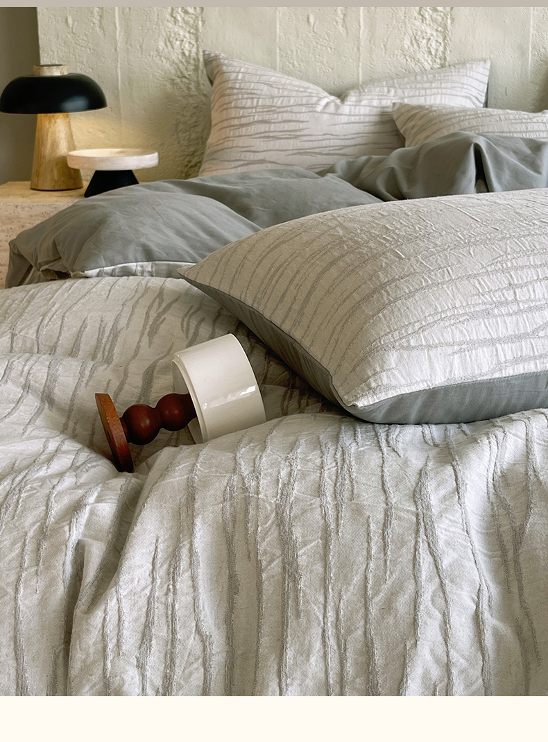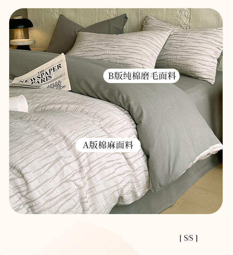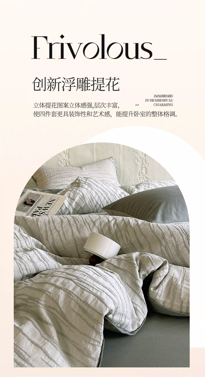 商品名称:琪格格纺织 2025新款复古简约棉麻轻奢大提花全棉加厚磨毛四件套 纳斯-灰
