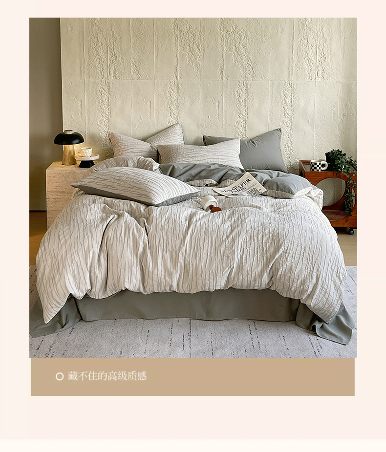 (总)琪格格纺织 2026新款纯棉色织肌理纹提花华夫格纯棉轻奢简约款四件套,莫诺克,华夫格-本白,简奢-浅灰,简奢-可可棕,华夫格-月光灰,华夫格-黄绿色,华夫格-橄榄绿,华夫格-奶昔黄,泡泡纱米白奶咖,泡泡纱米白奶绿,圣托梵绅-乌木,圣托梵绅-云咖,时光里-高级蓝黑,星岛-可可棕,A速写 提花黑条,A速写 提花棕条