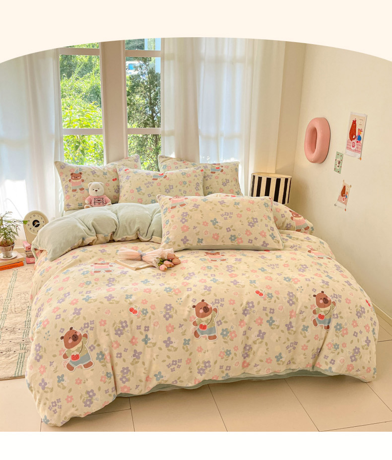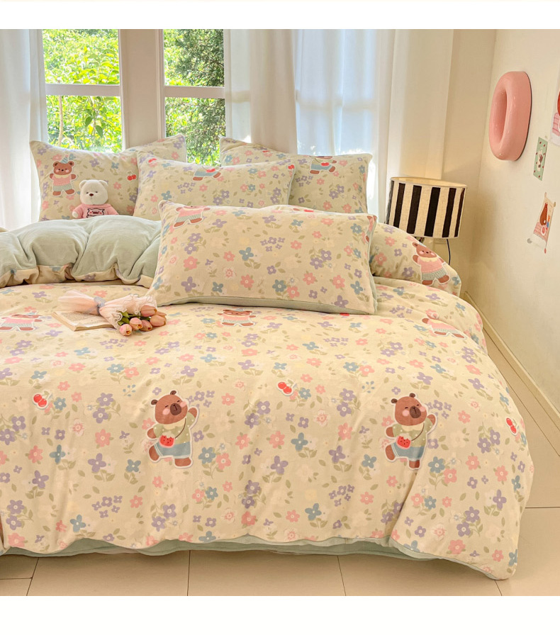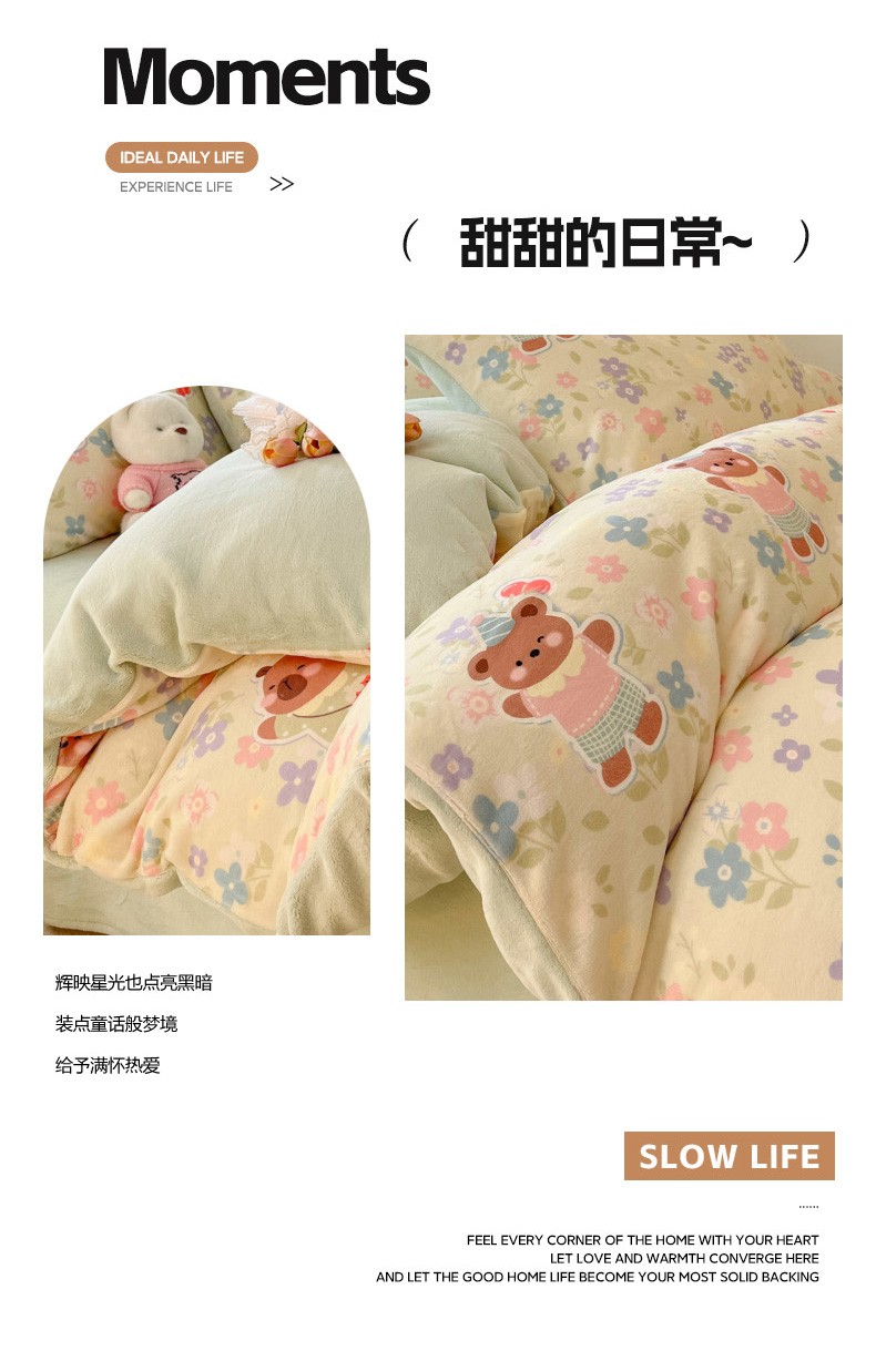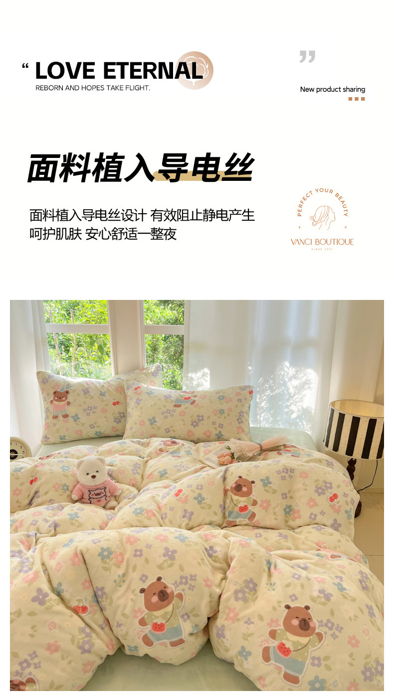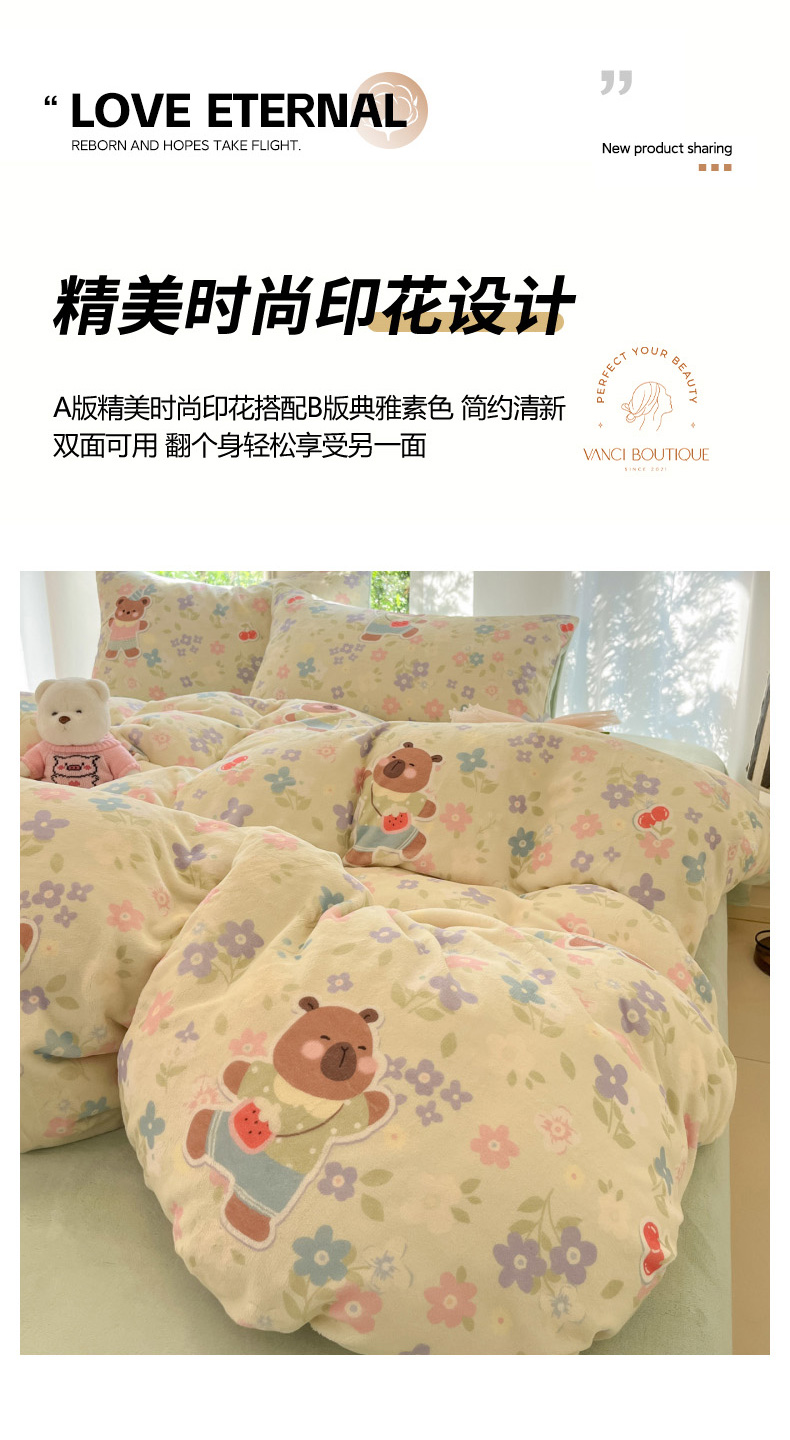 当前位置: 91家纺网 > 商品网购 > 床品套件 > 四件套 > 牛奶绒四件套 > 慕澄家纺 2025新款小清新牛奶绒印花四件套 快乐卡皮