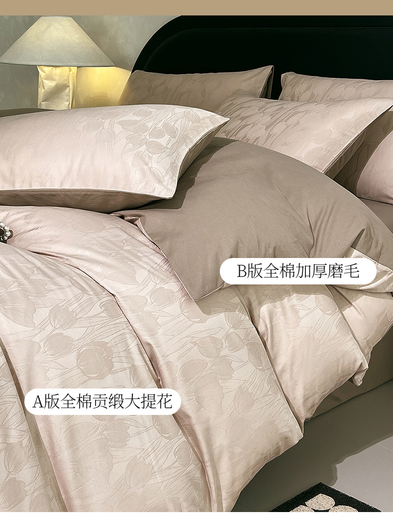 (总)琪格格纺织 2025新款50S贡缎大提花加厚全棉磨毛四件套,罗拉之梦-可可棕,理查德-咖,流光蝶影-粉紫,罗拉之梦-粉紫,如梦花涧-雨棕,随意-咖,心愿-粉紫,一蔓千花-羽棕,永恒韵律-灰,永恒韵律-咖
