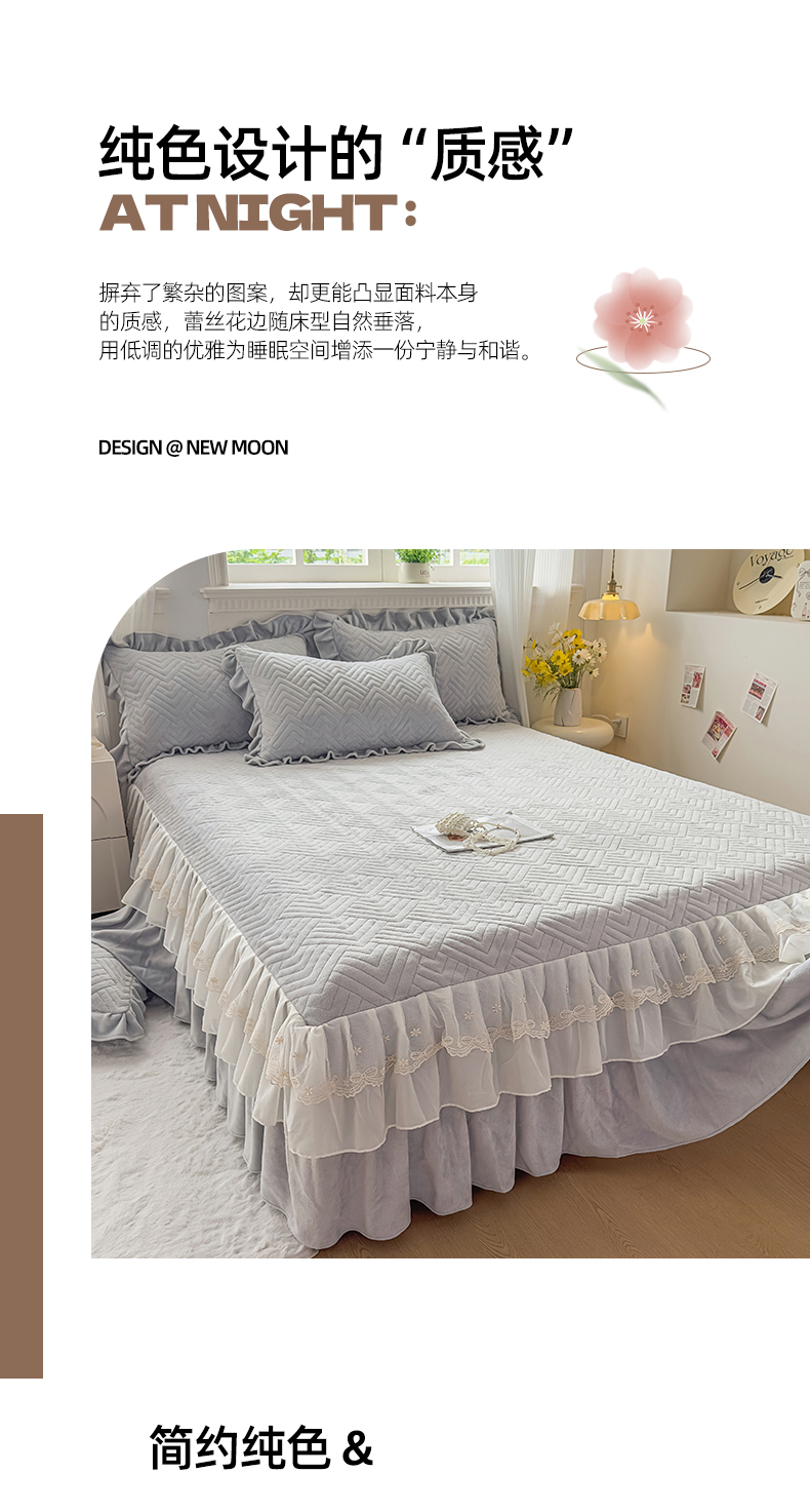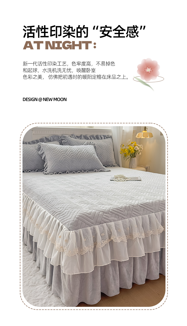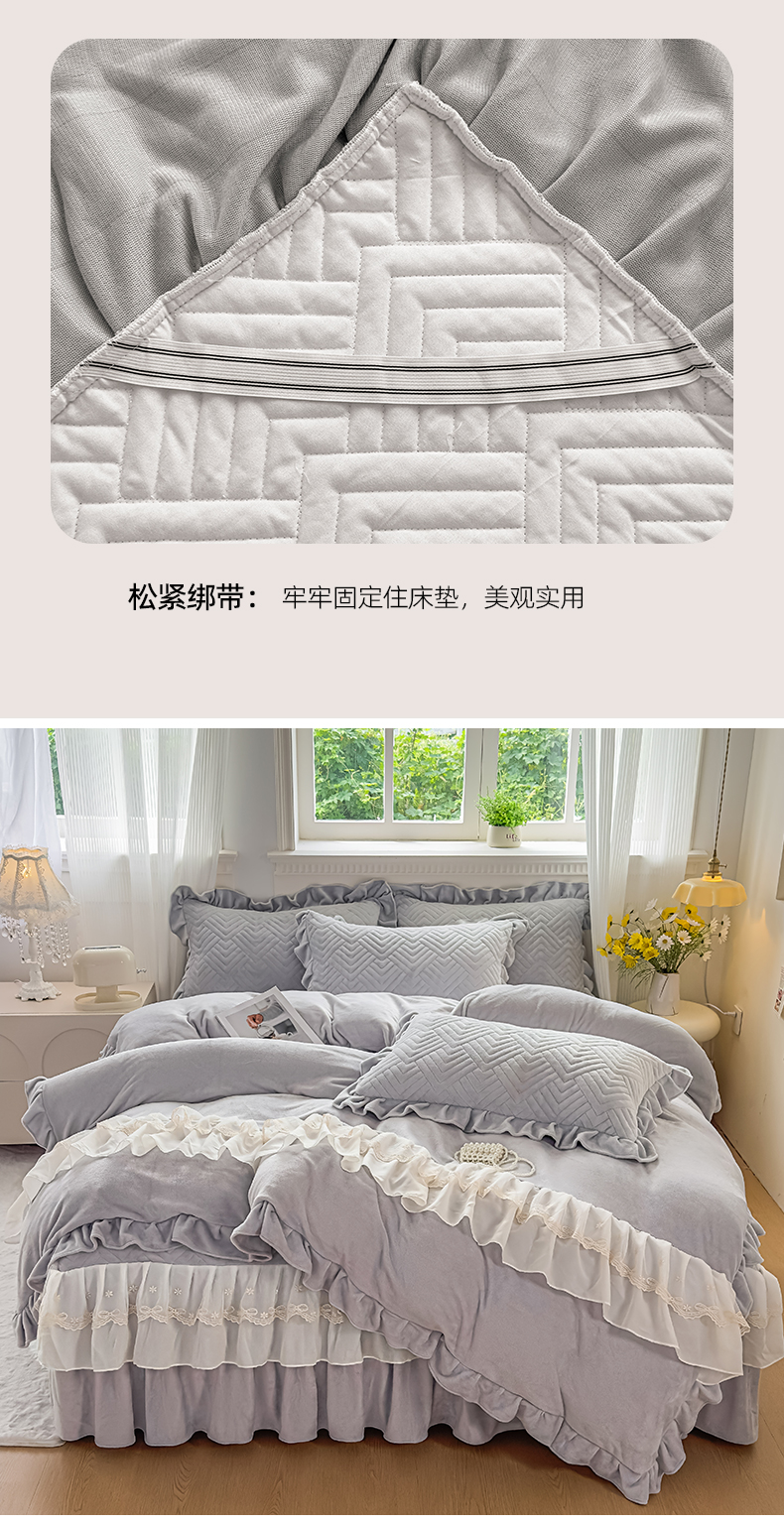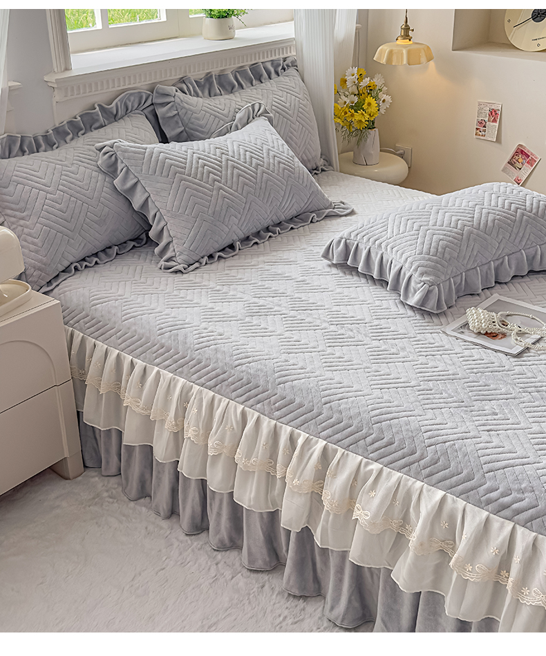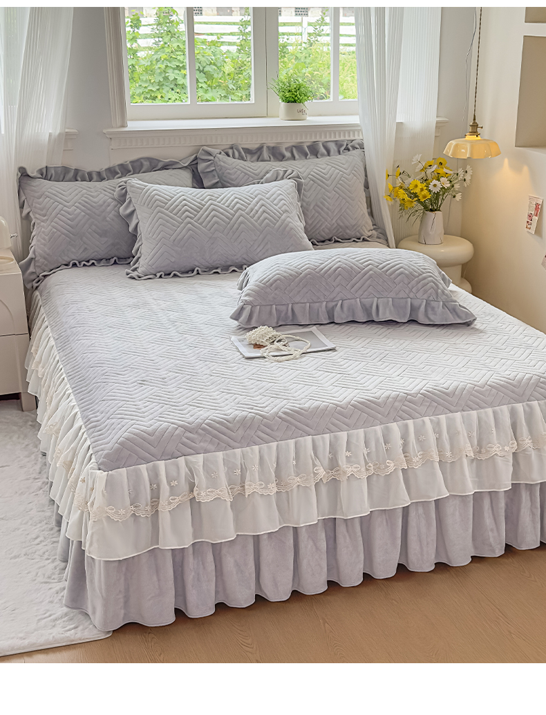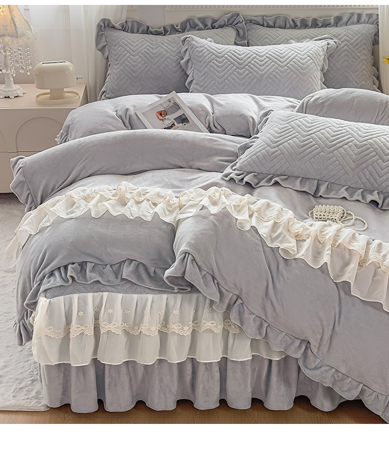 商品名称:家之硕家纺 2025冬款高克重牛奶绒床裙四件套--暖阳系列 暖阳系列--灰