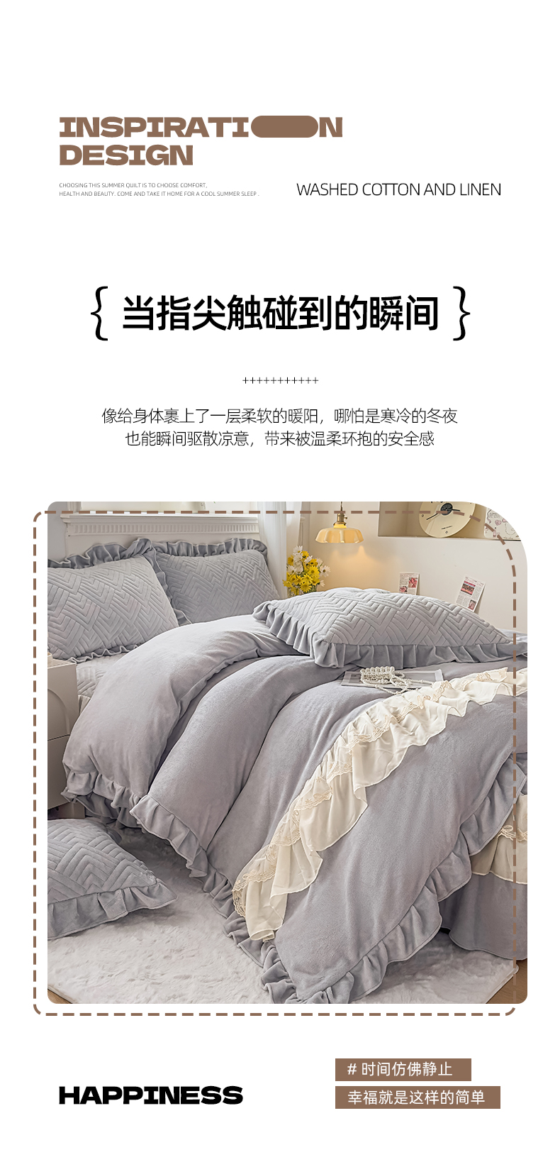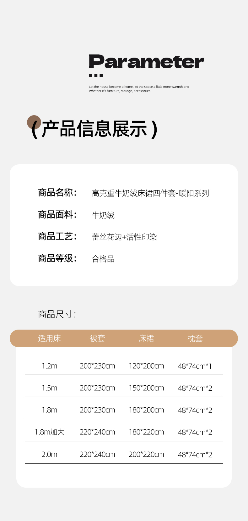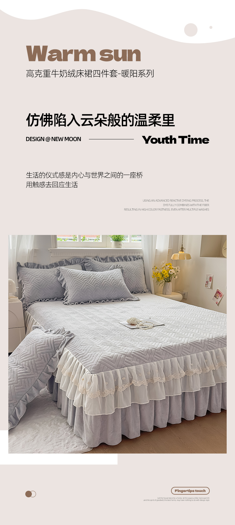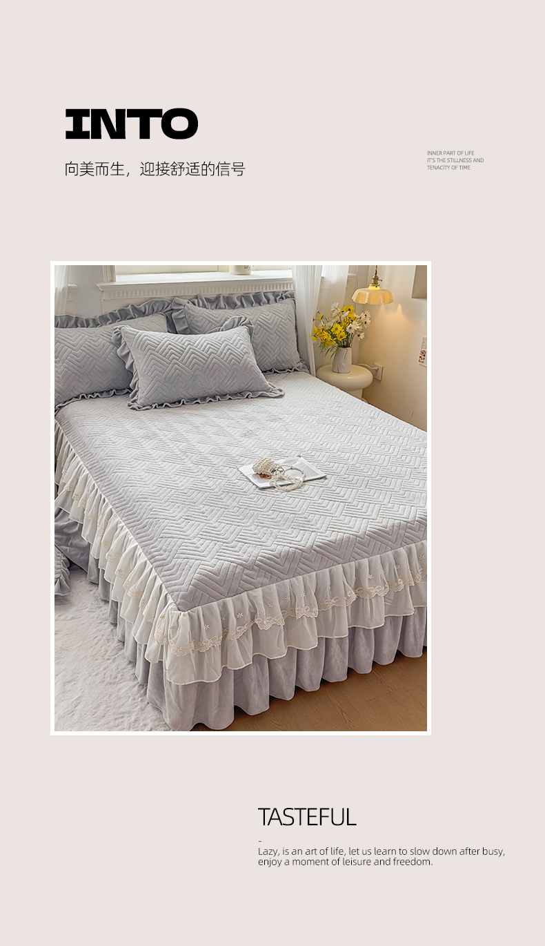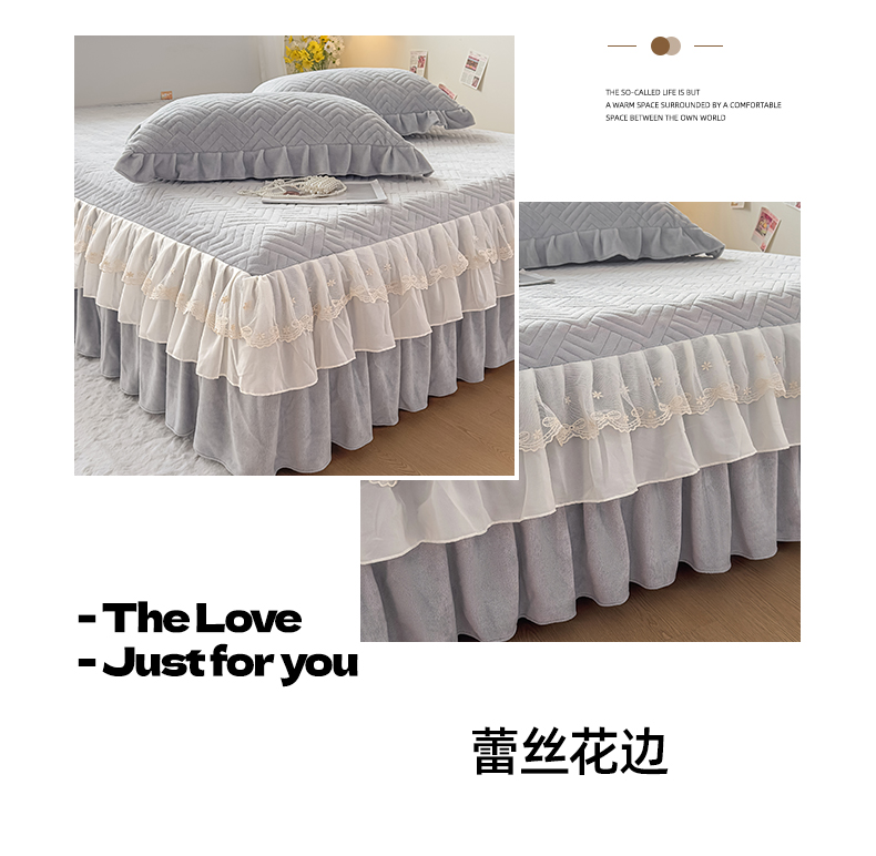商品名称:家之硕家纺 2025冬款高克重牛奶绒床裙四件套--暖阳系列 暖阳系列--灰