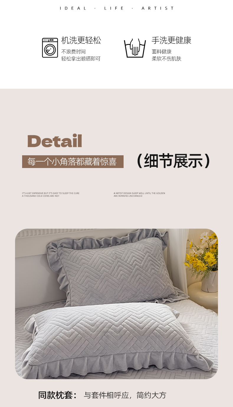 (总)家之硕家纺 2025新款立体雕花可拆洗牛奶绒枕套系列,爱莎粉,安妮绿,彩虹糖-浅蓝,花韵,秘密花园,田园生活